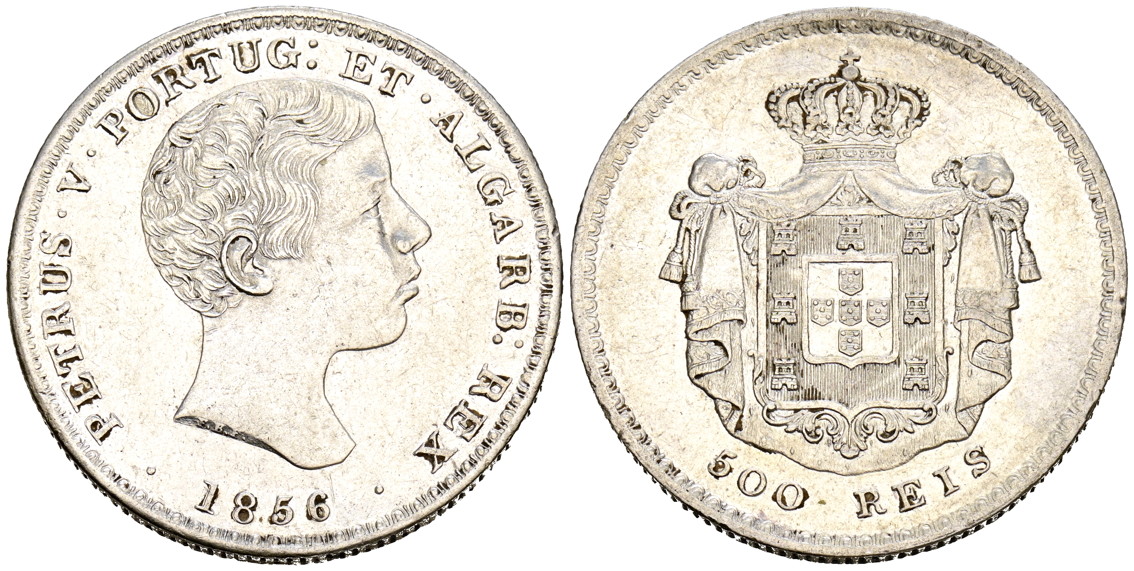 PORTUGAL, Pedro V. 500 Reis. (Ar. 14,52g/30mm). 1856. (Gomes 07.02). EBC. Escasa así.