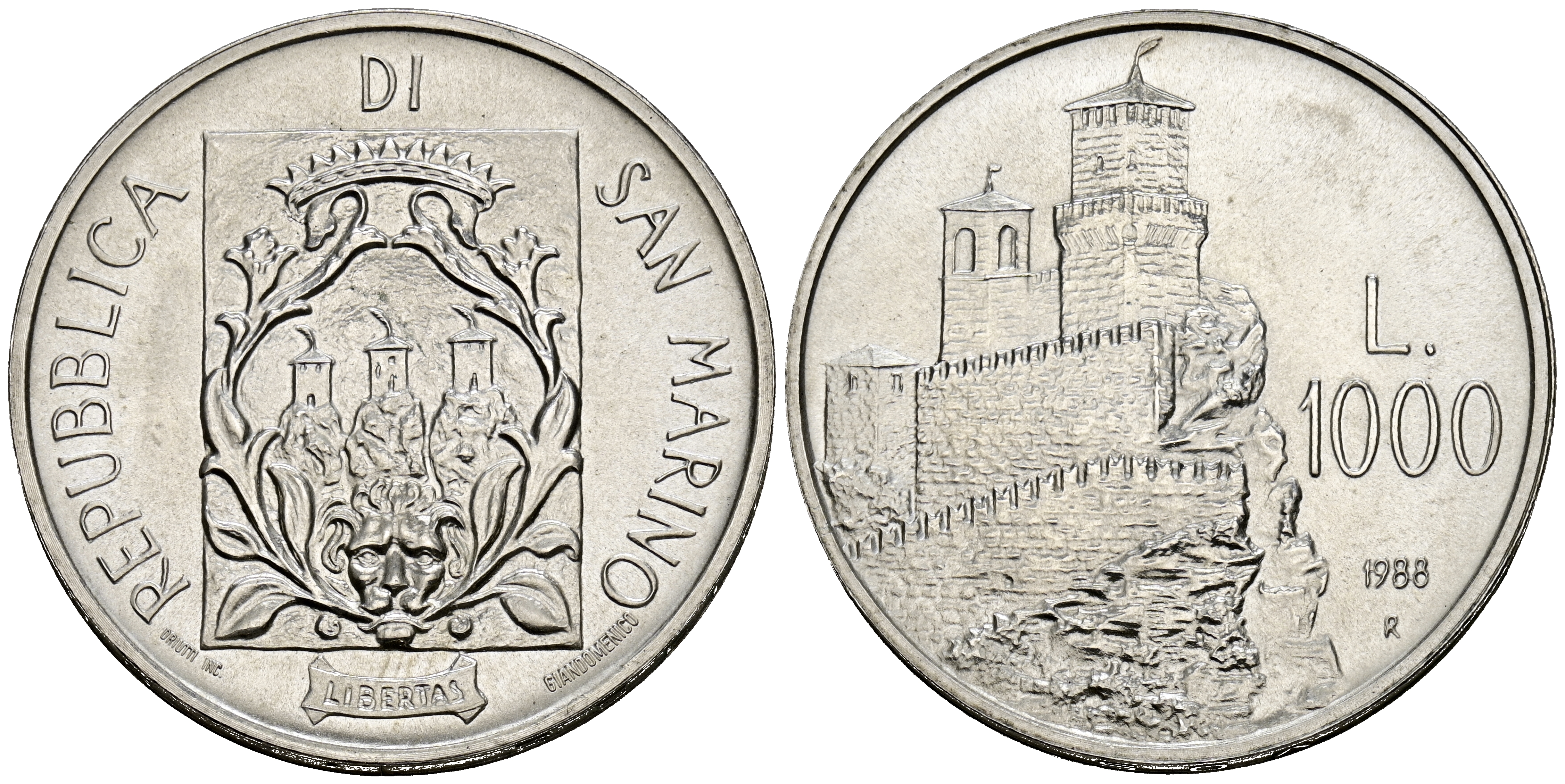SAN MARINO. 1000 Liras. (Ar. 14,61g/26mm). 1988. Roma. Fortificaciones de San Marino. (Km#227). SC.