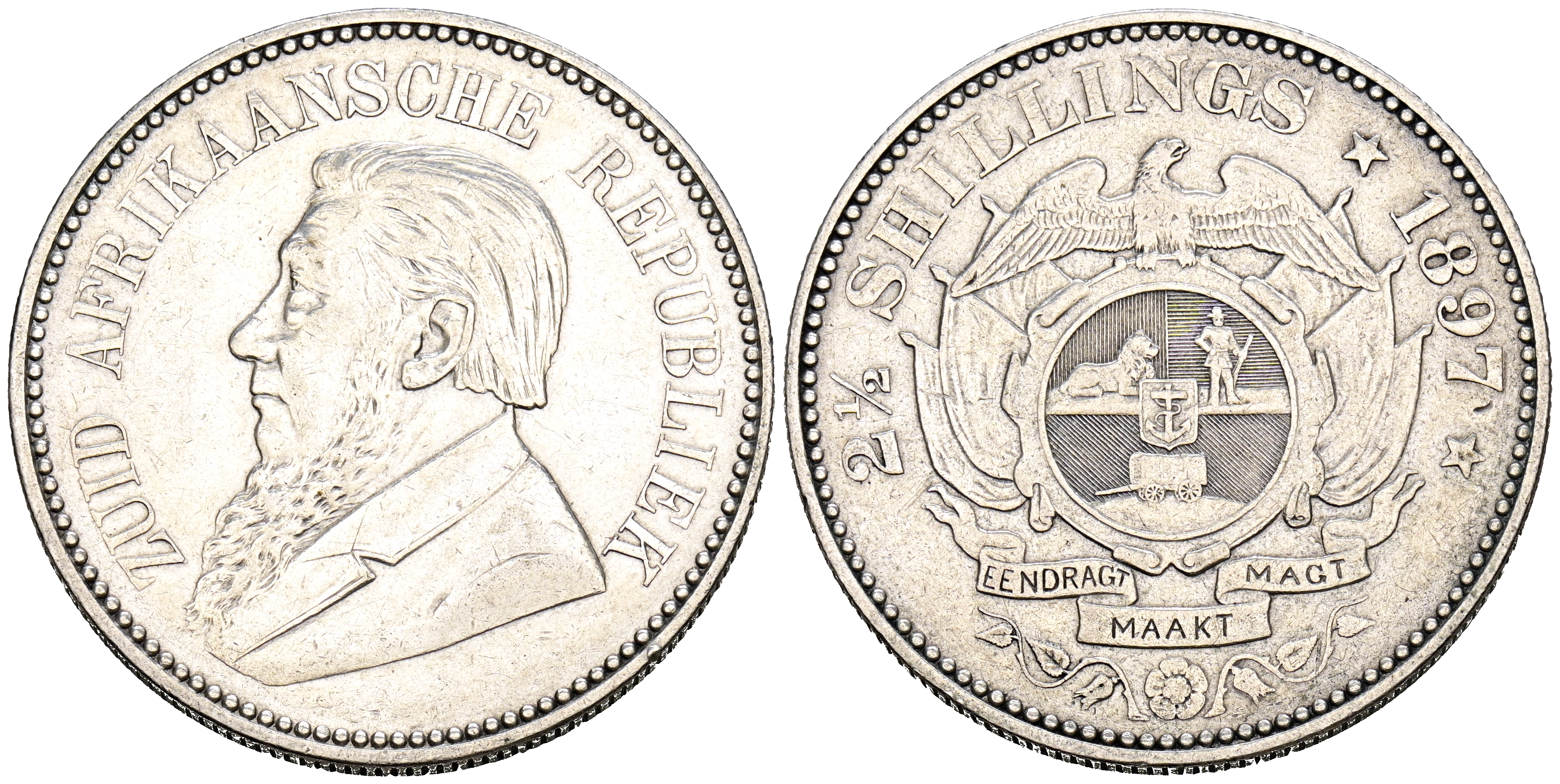 SUDÁFRICA. 2 1/2 Shillings. (Ar. 14.10g /32mm). 1897. (Km#7). MBC+.