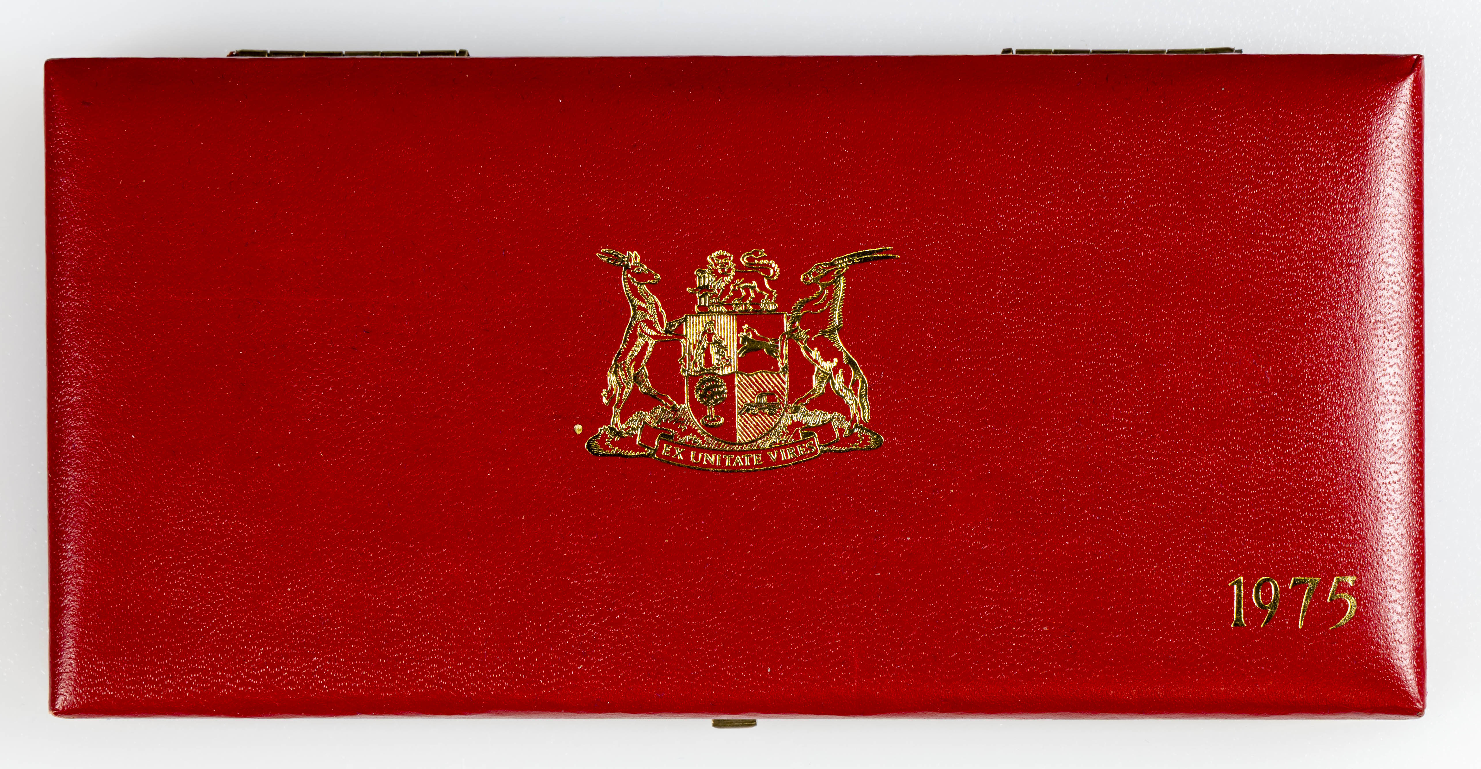 SUDÁFRICA. Serie completa con 10 valores. 1975. Valores comprendidos entre 1/2 Cent y 1 Rand. Presentado en estuche oficial.