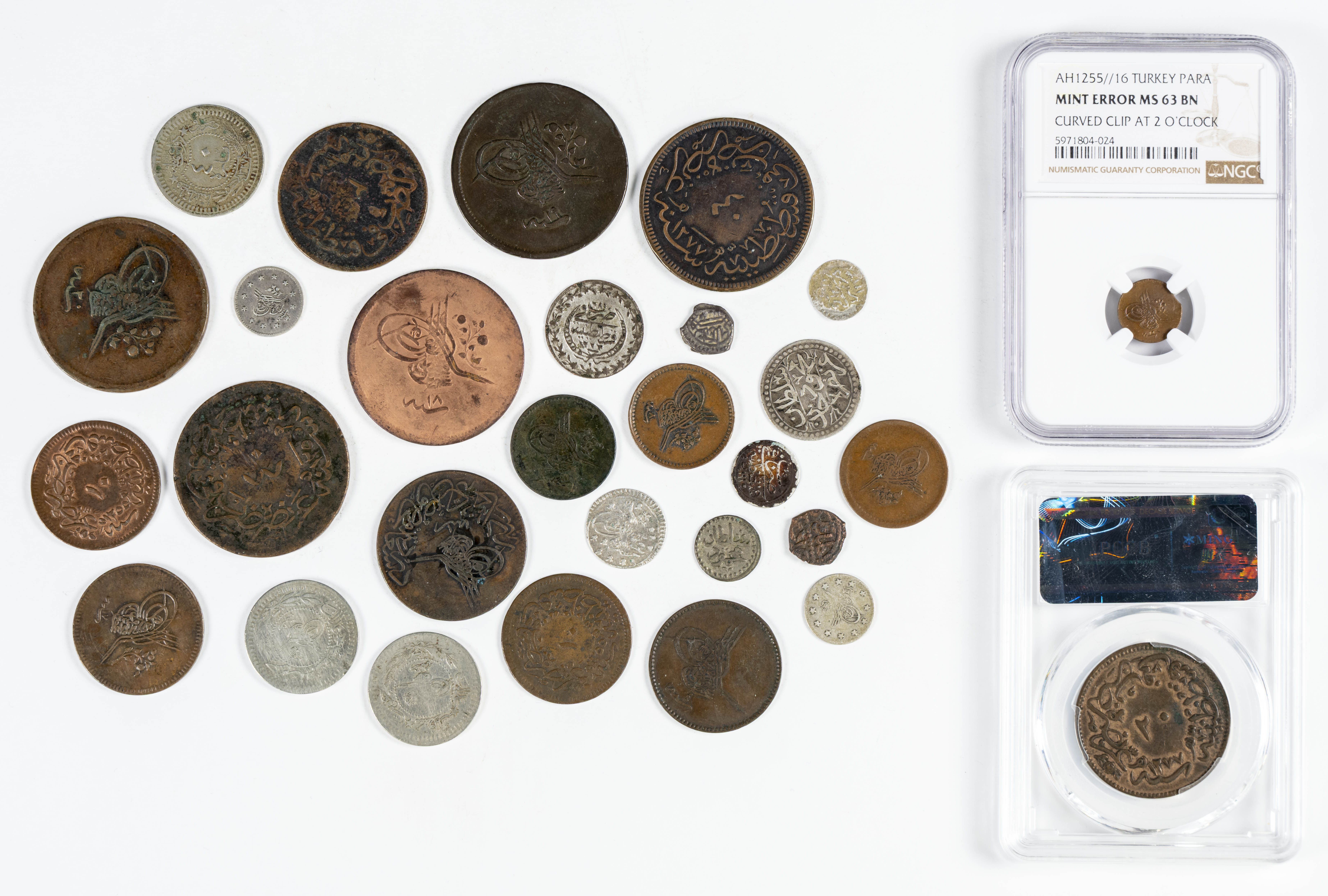 TURQUÍA. Interesante y variada colección compuesta por 29 monedas del Imperio Otomano con una gran variedad de módulos, principalmente de Paras, acuñadas durante el S. XIX. Incluye una pieza certificada por NGC. Diferentes estados de conservación. A EXAMINAR.
