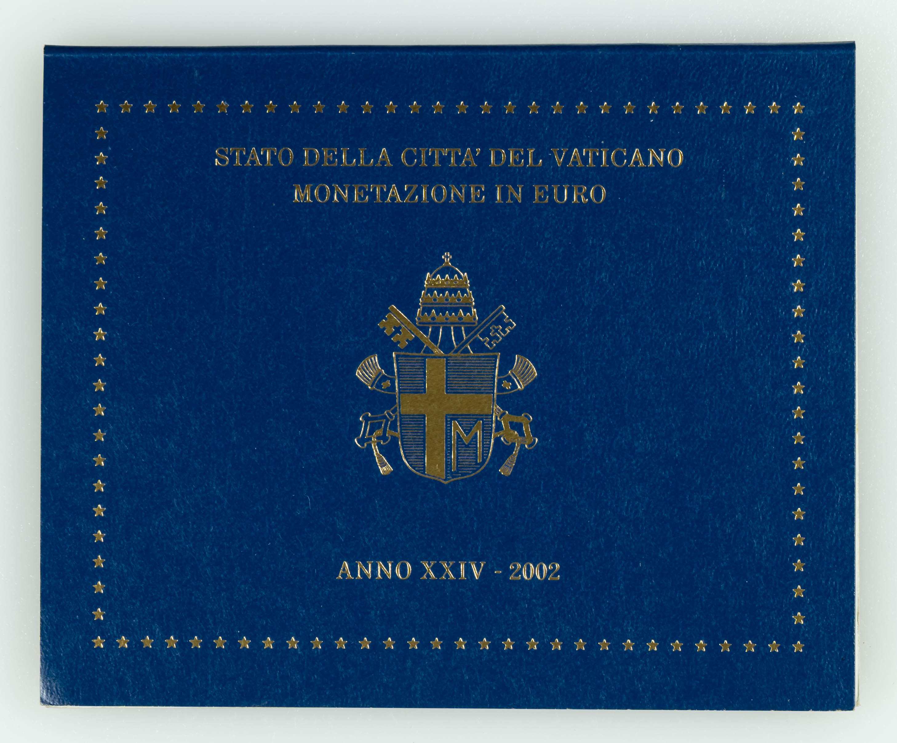 VATICANO. Set oficial completo con 8 valores comprendidos entre 1 Céntimo y 2 Euros. 2002. Juan Pablo II. SC.