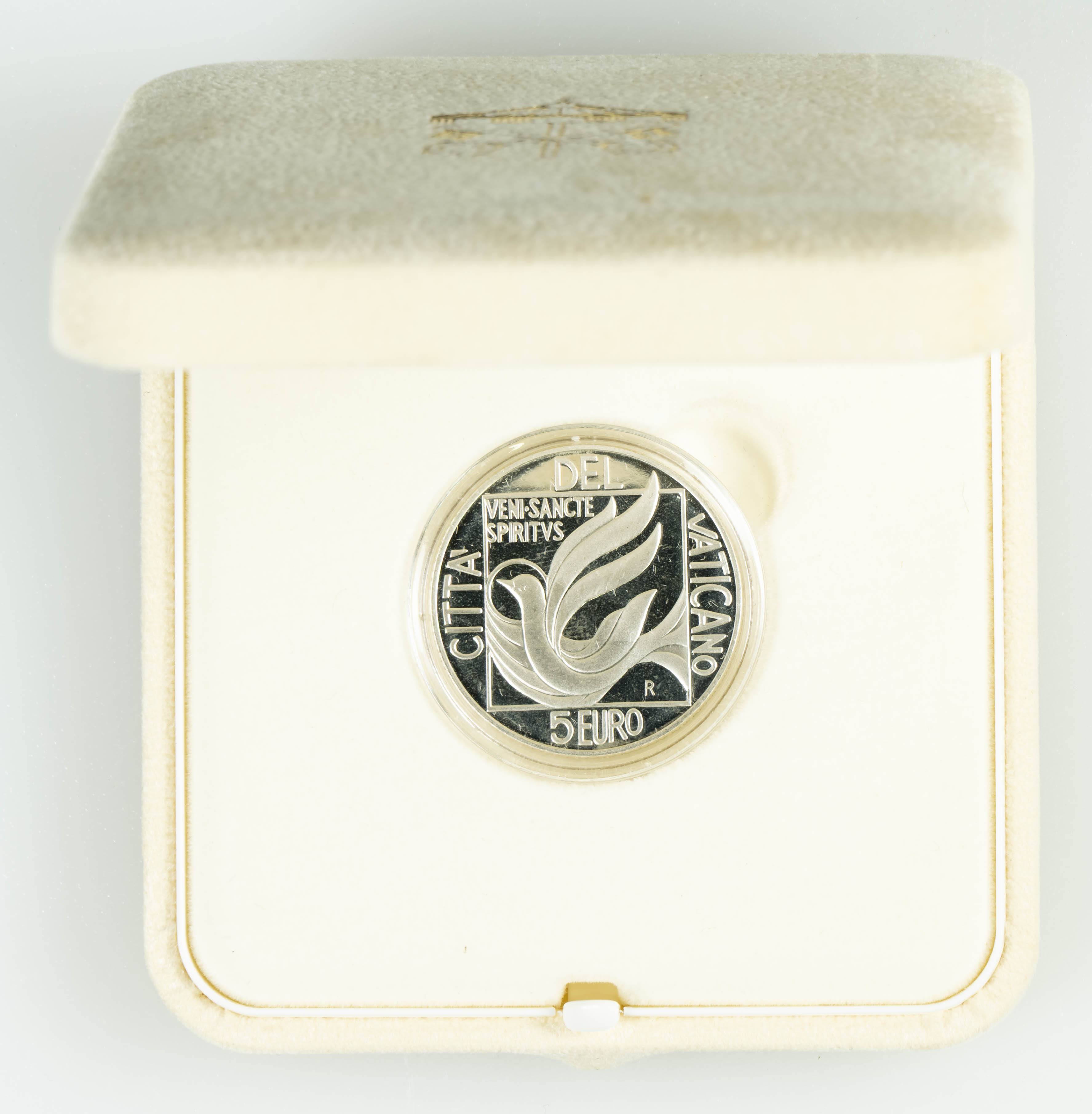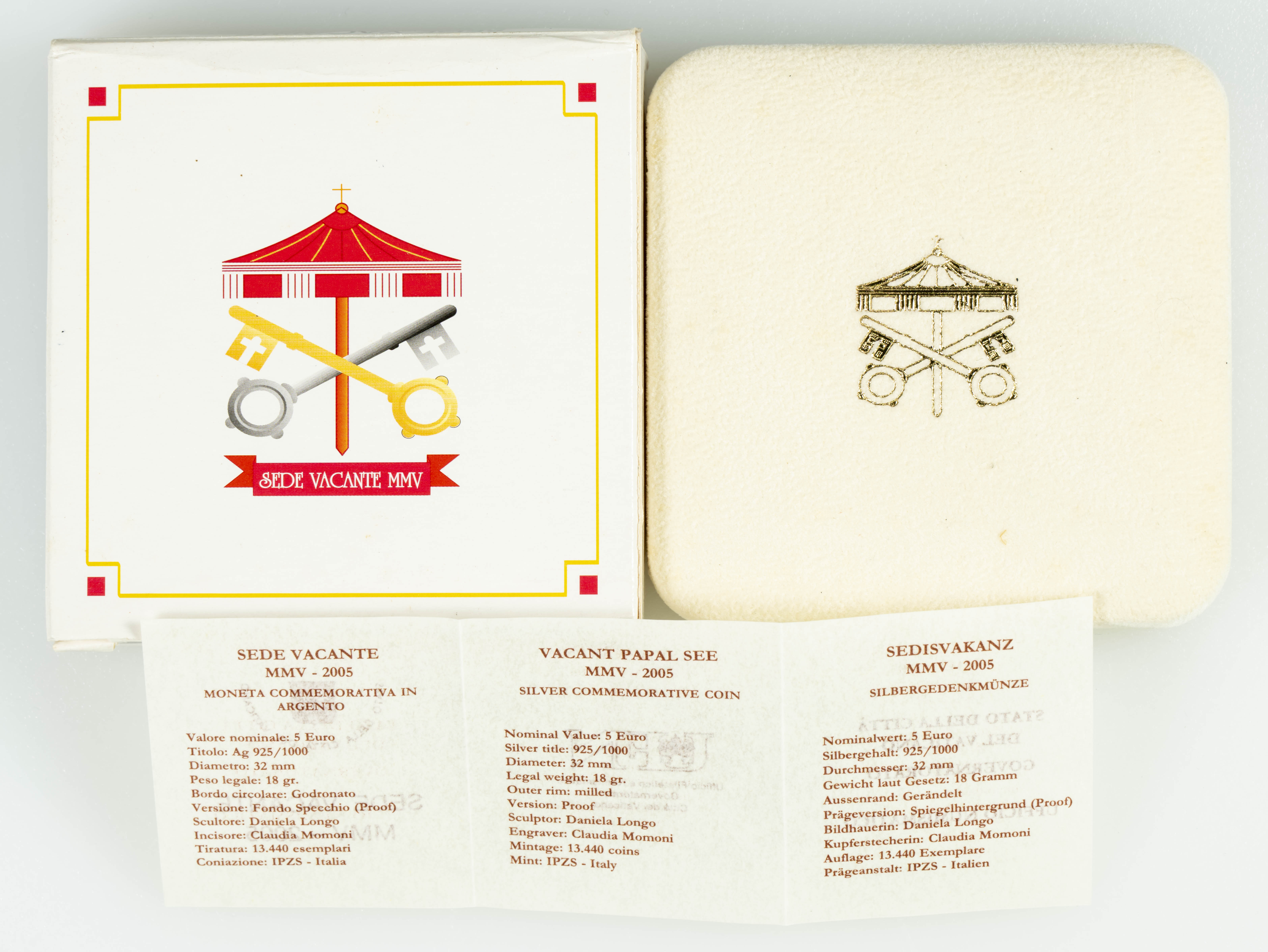 VATICANO. 5 Euro (Ar. 18,00g/32mm). 2005. Sede Vacante. Roma R. (Km#373). PROOF. Incluye estuche completo y certificado de autenticidad.