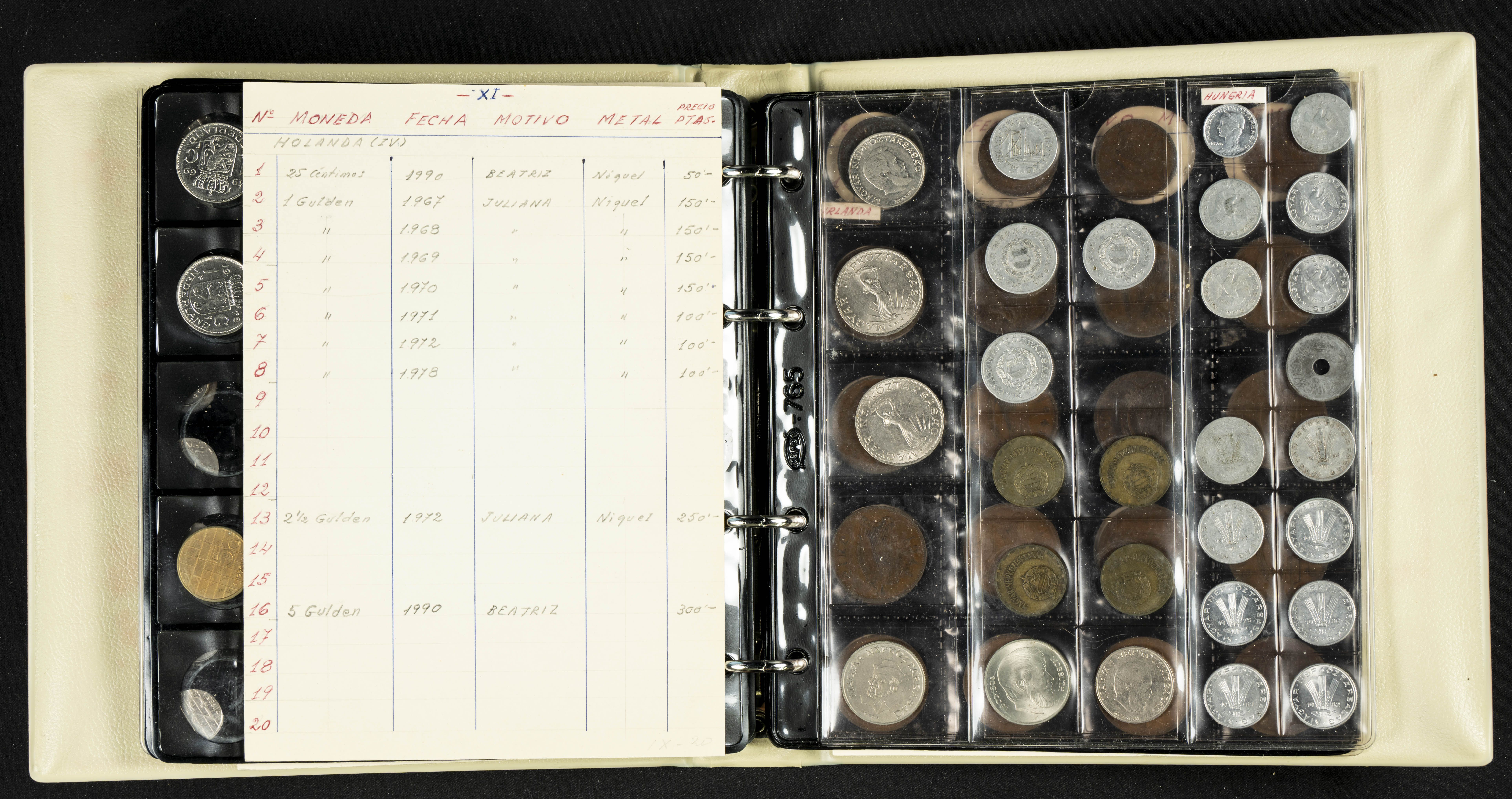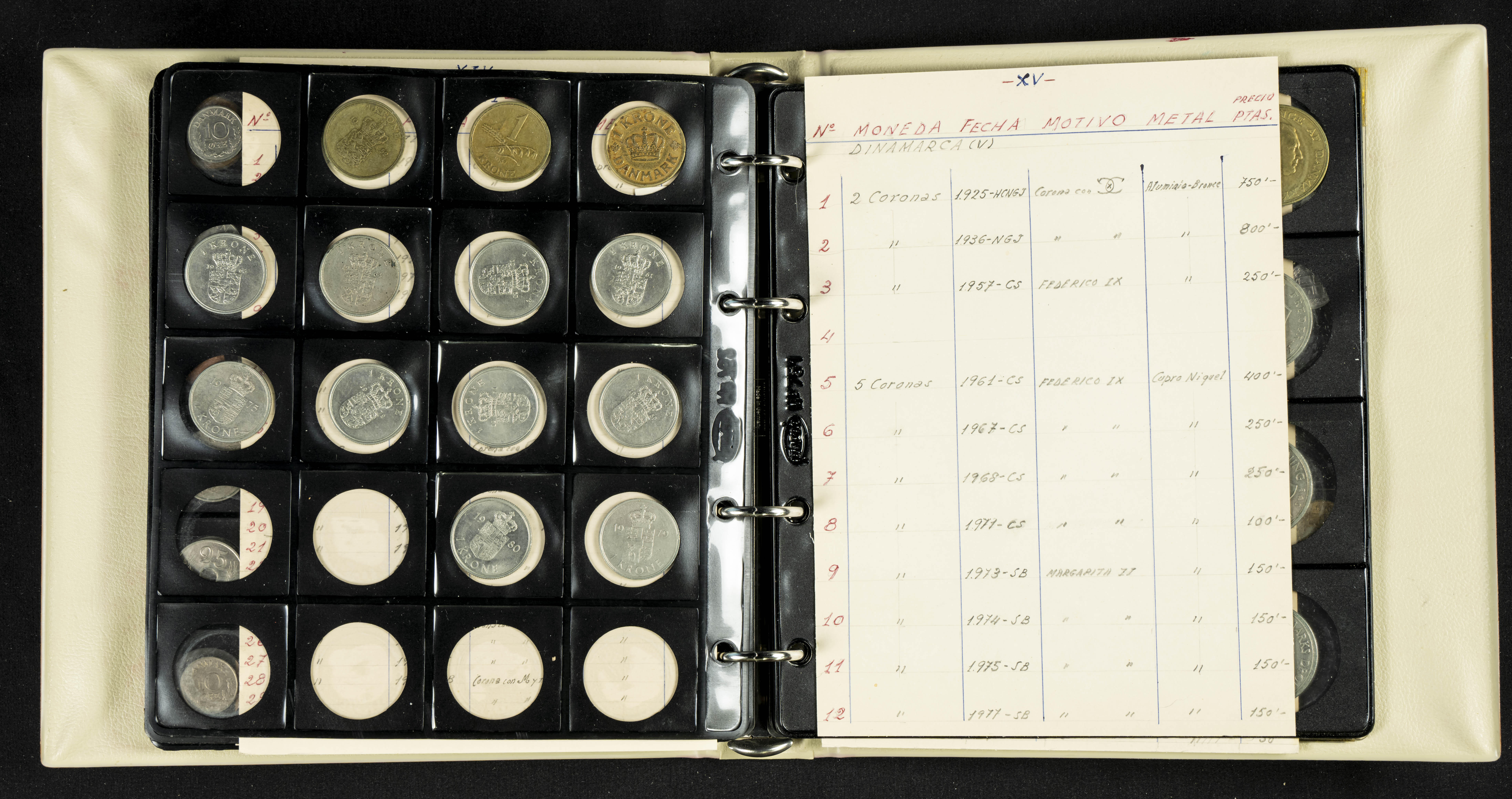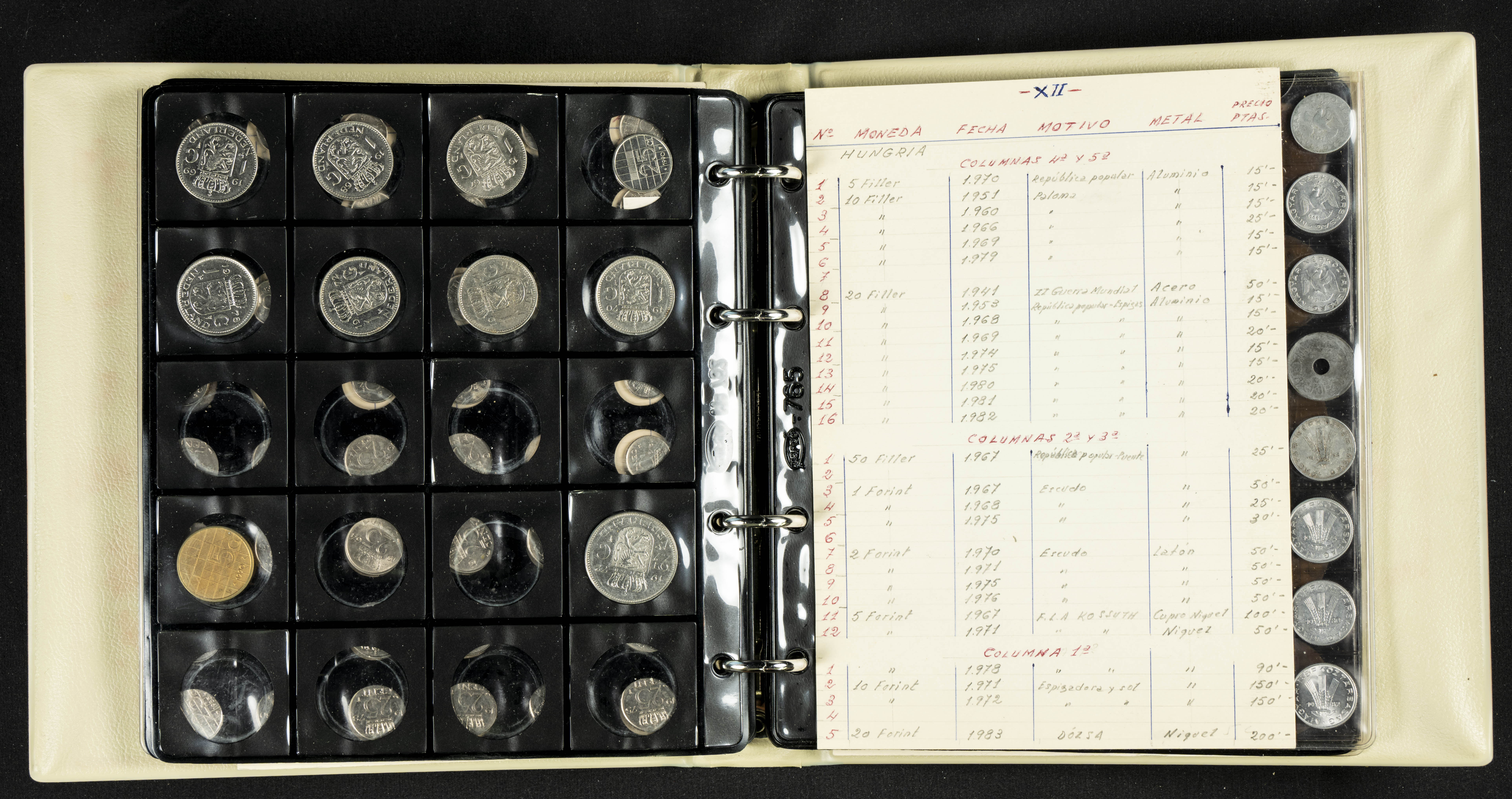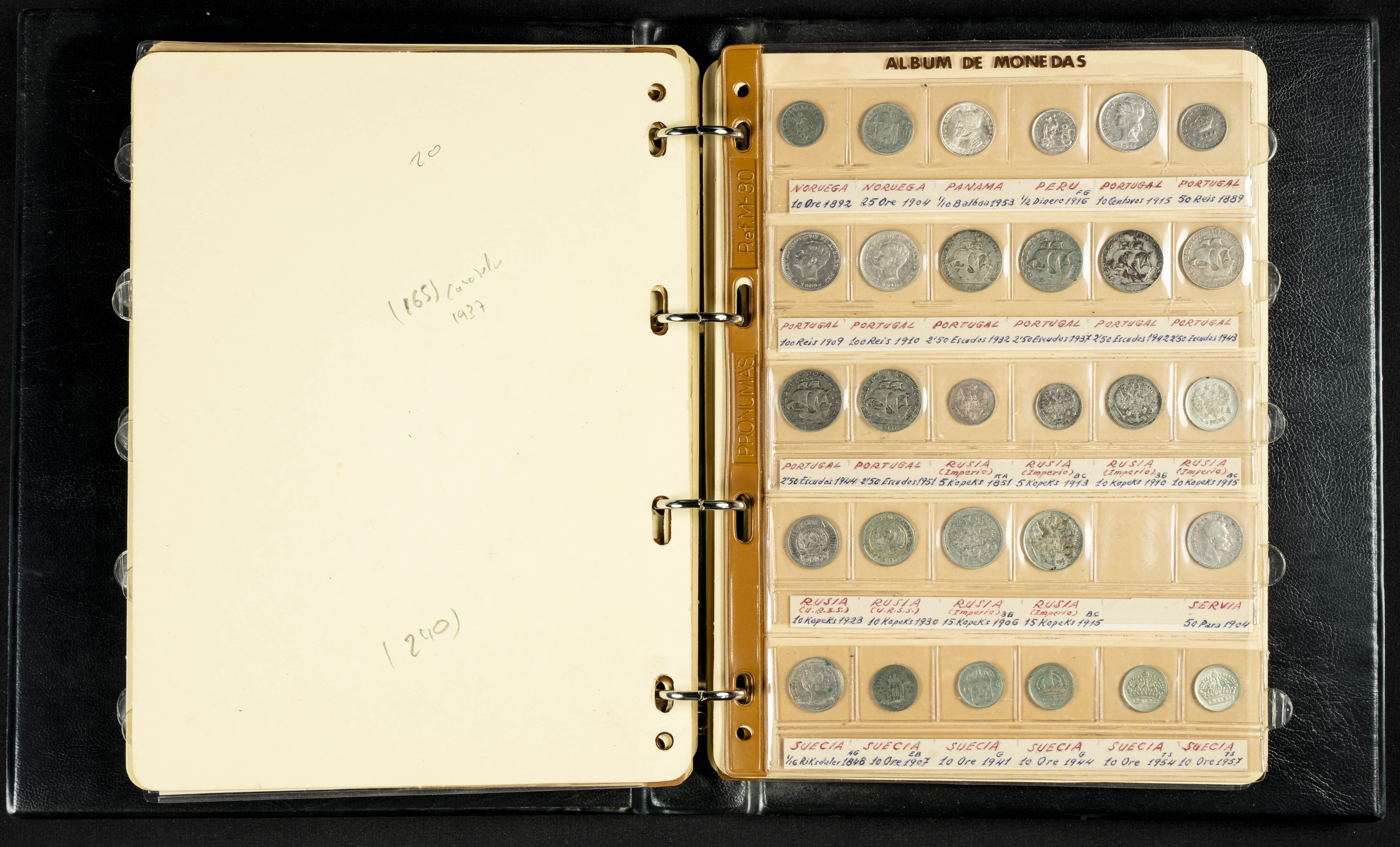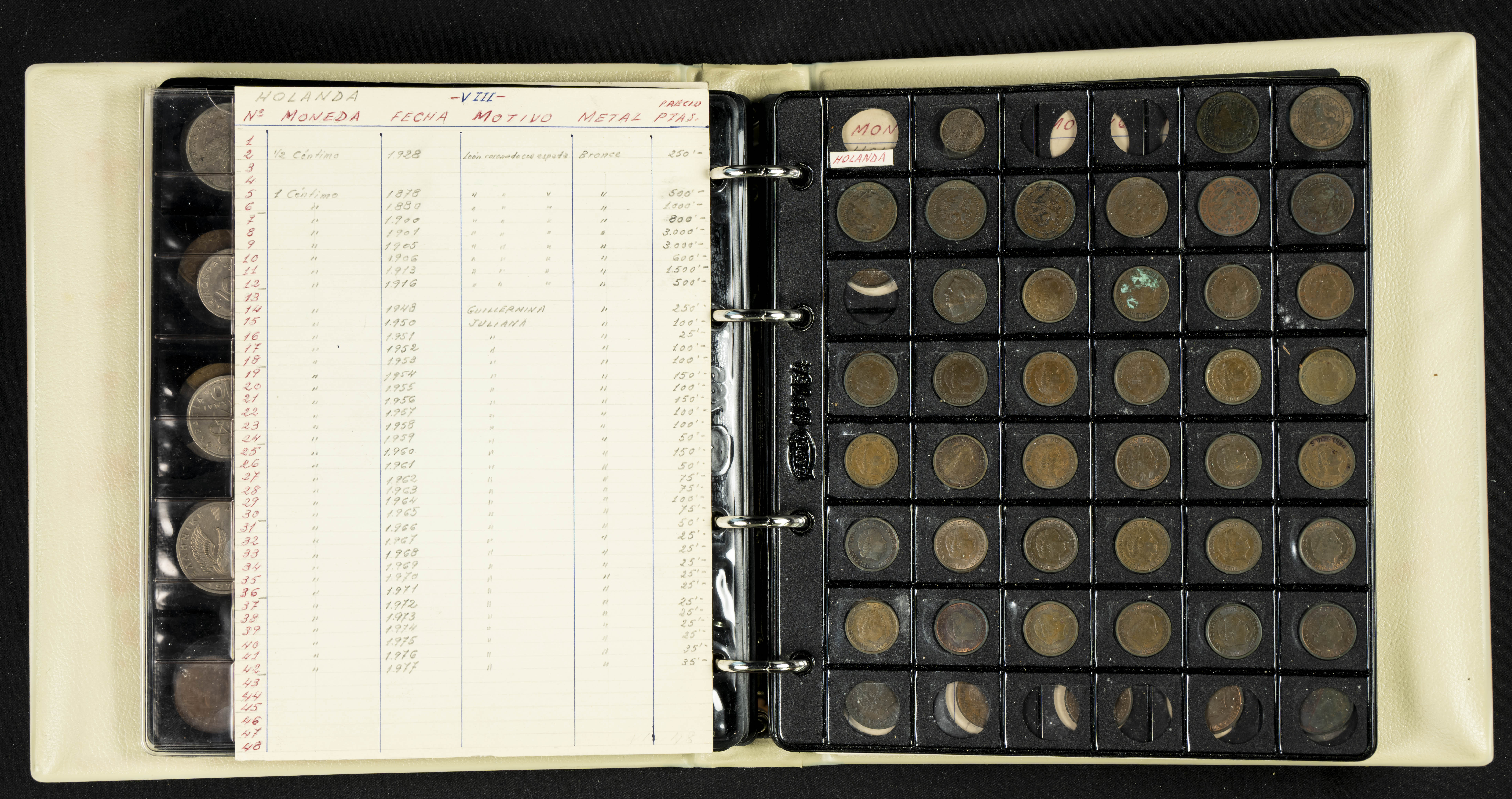MONEDA MUNDIAL. Extraordinaria colección de moneda extranjera con un un número elevadísimo de piezas y expuestas en 16 álbumes. La colección está centrada, fundamentalmente, en el siglo XX, pero tiene también una interesante representación de moneda del siglo XIX. Gran cantidad de países, fechas, módulos, materiales (incluye un buen número de ejemplares en plata) representados y alguna reproducción. Diferentes estados de conservación. A EXAMINAR.