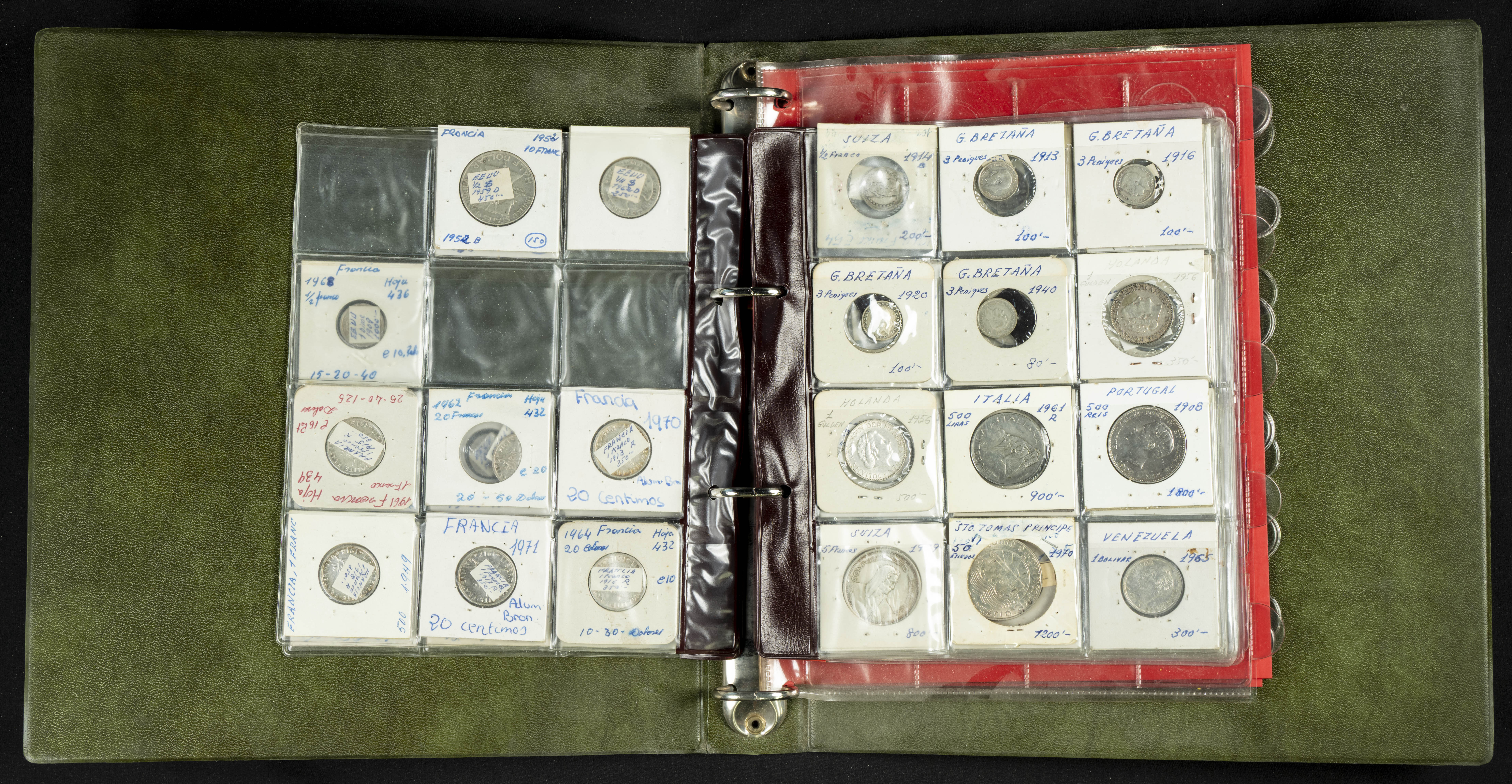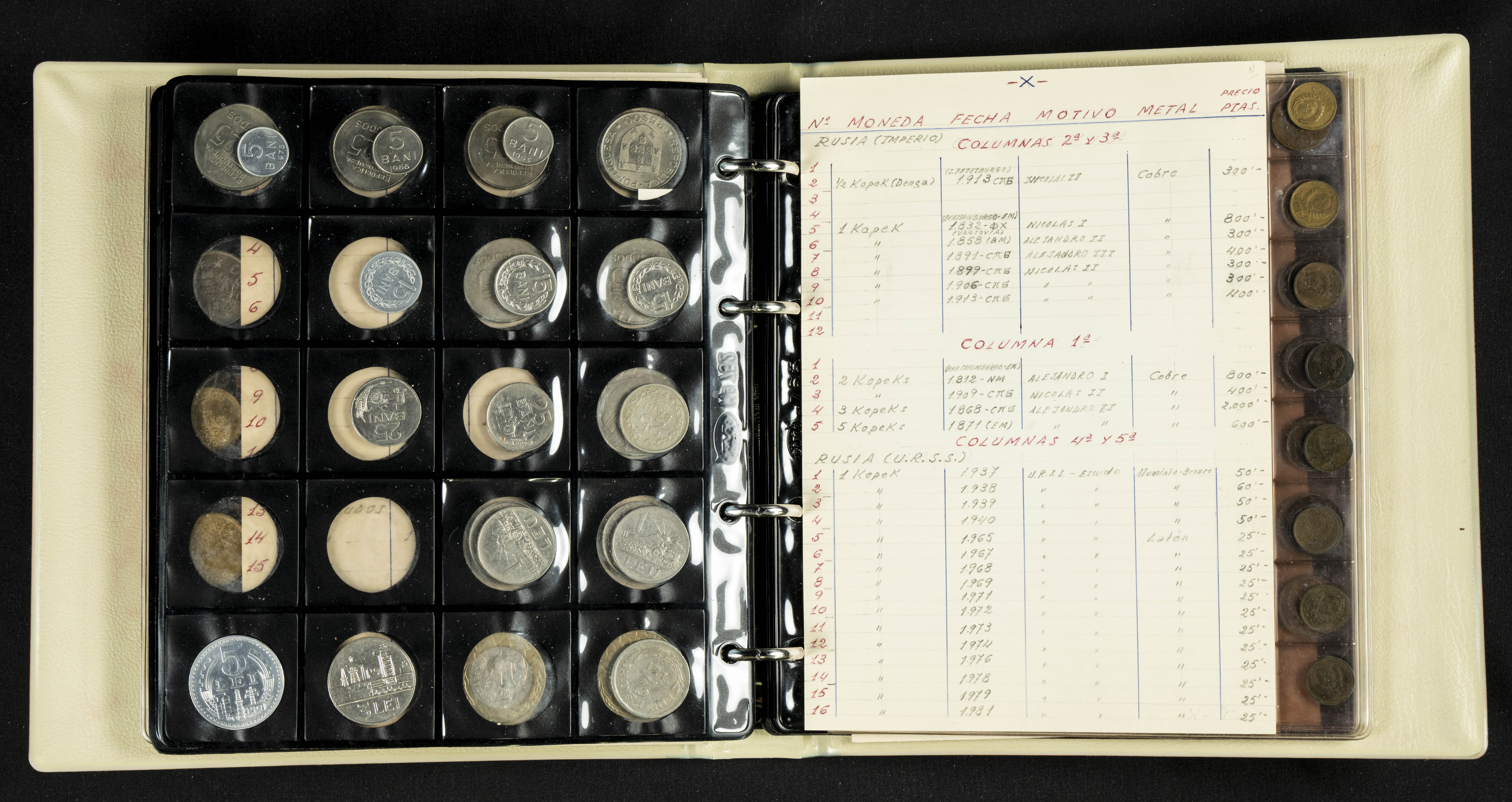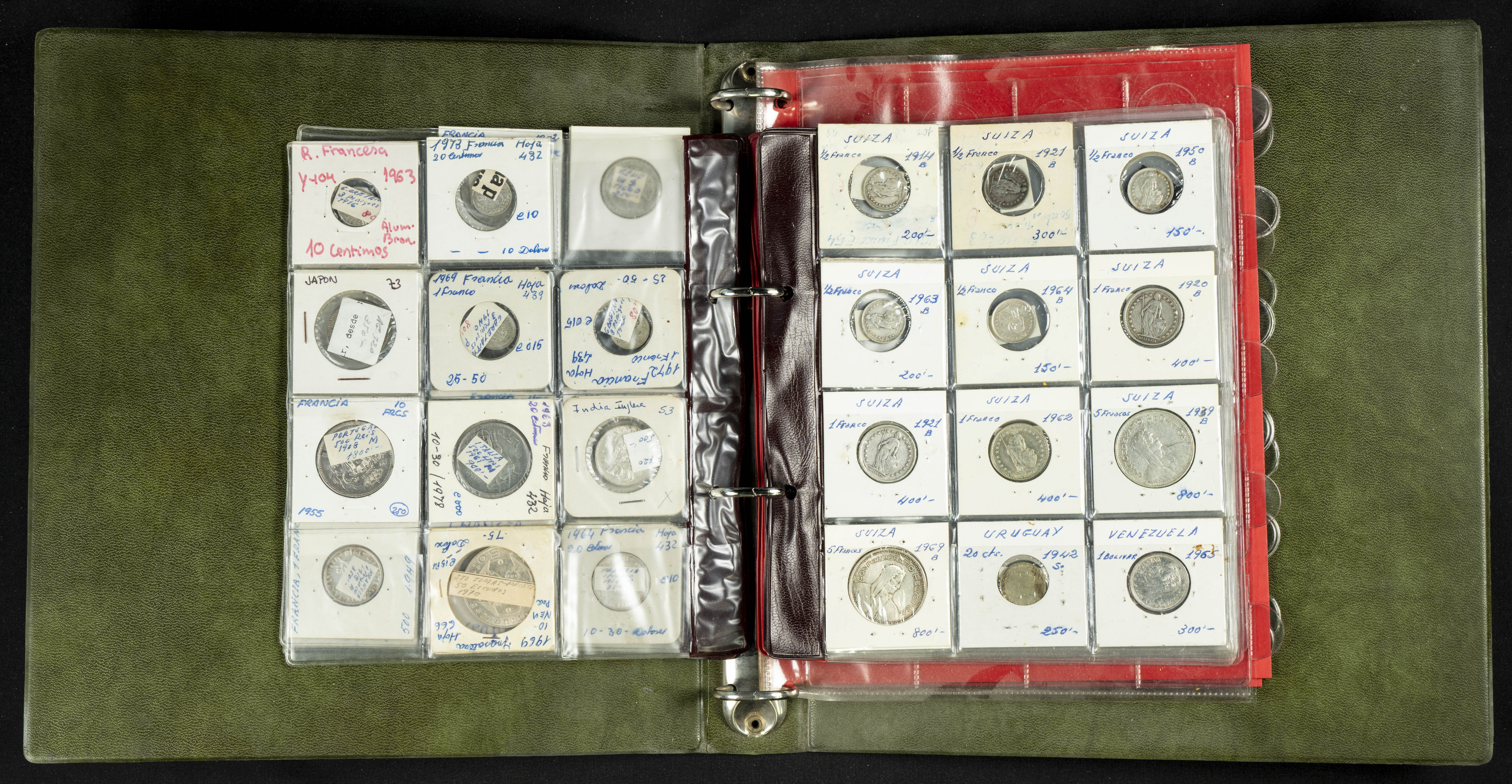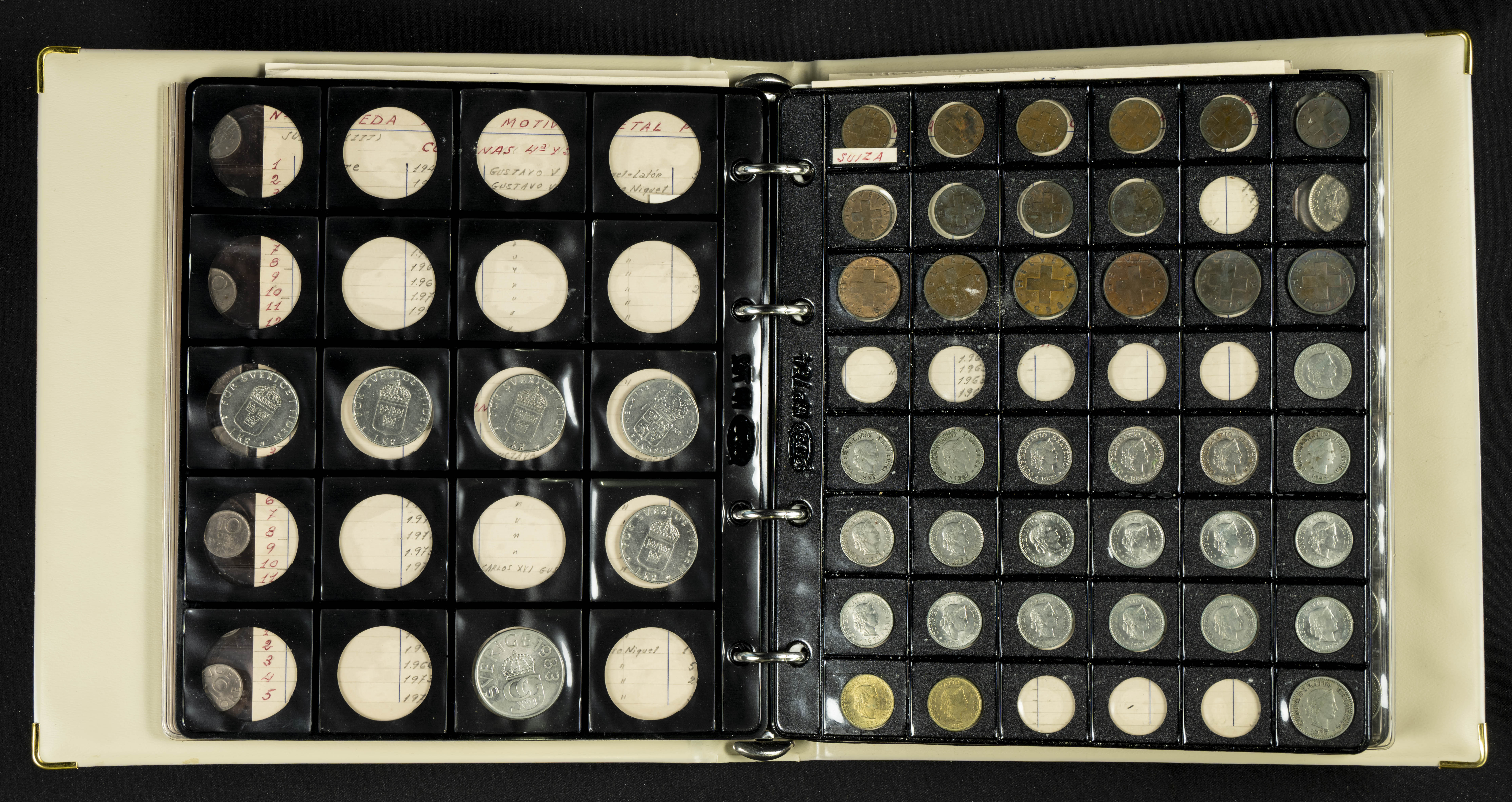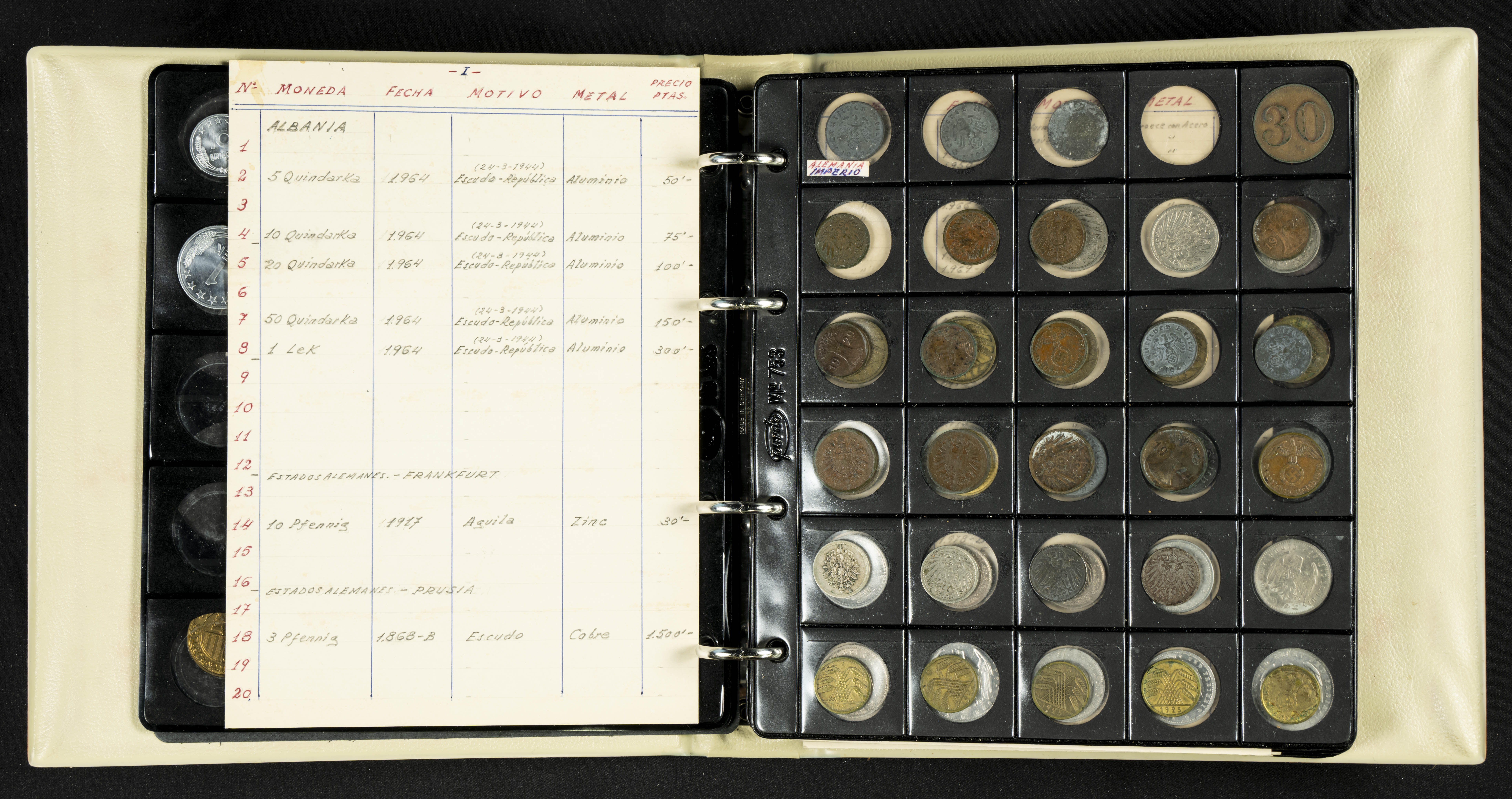 MONEDA MUNDIAL. Extraordinaria colección de moneda extranjera con un un número elevadísimo de piezas y expuestas en 16 álbumes. La colección está centrada, fundamentalmente, en el siglo XX, pero tiene también una interesante representación de moneda del siglo XIX. Gran cantidad de países, fechas, módulos, materiales (incluye un buen número de ejemplares en plata) representados y alguna reproducción. Diferentes estados de conservación. A EXAMINAR.