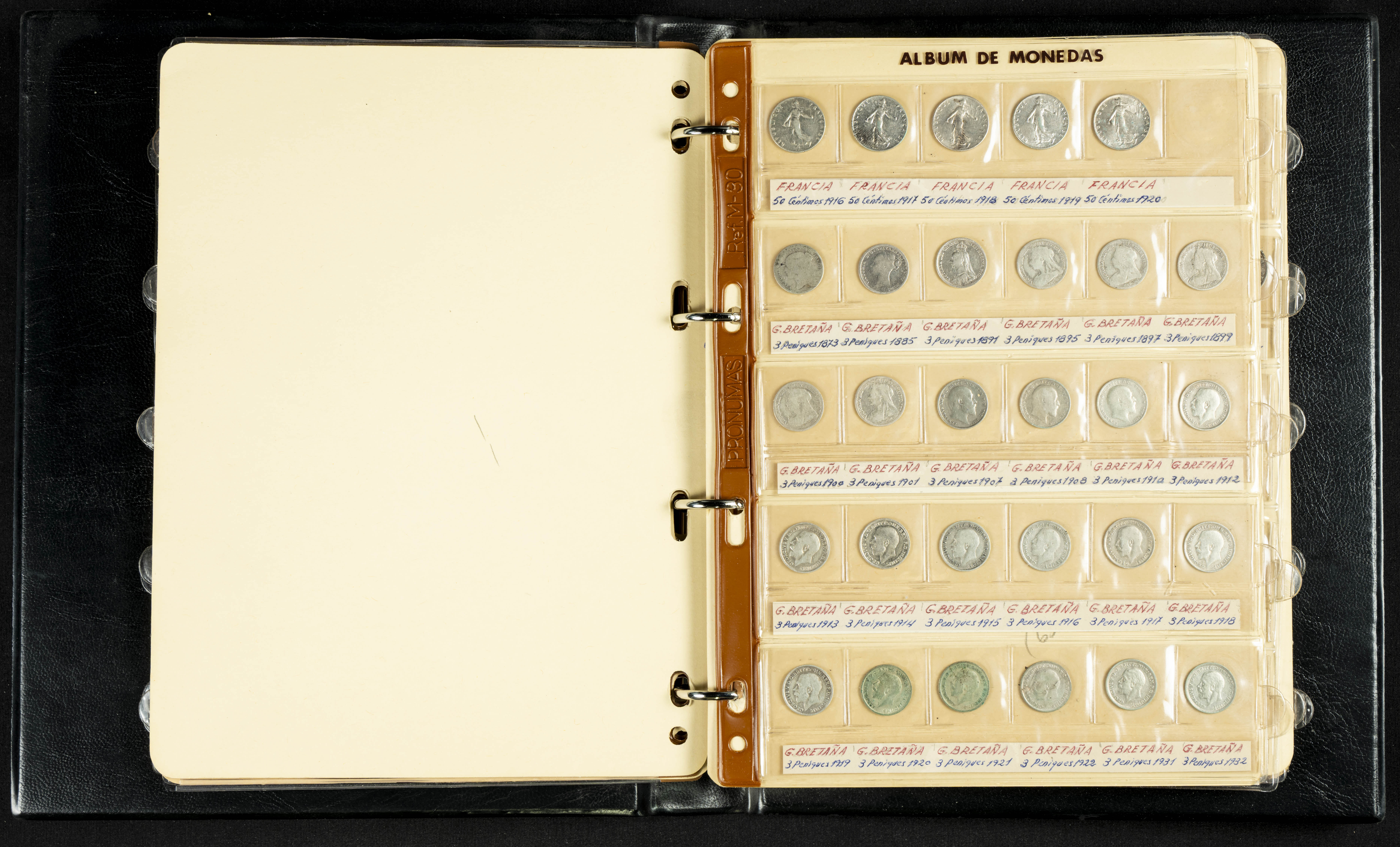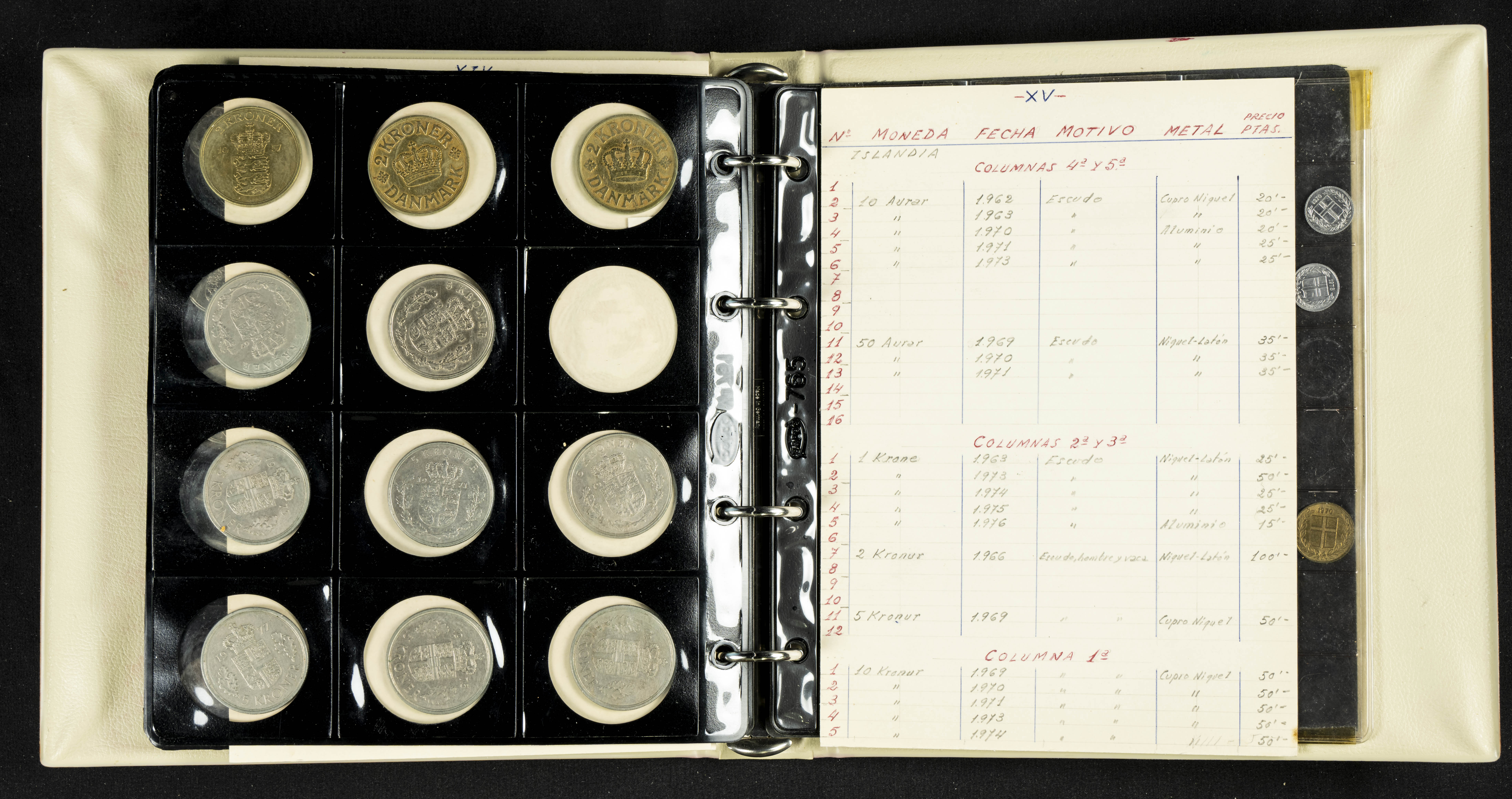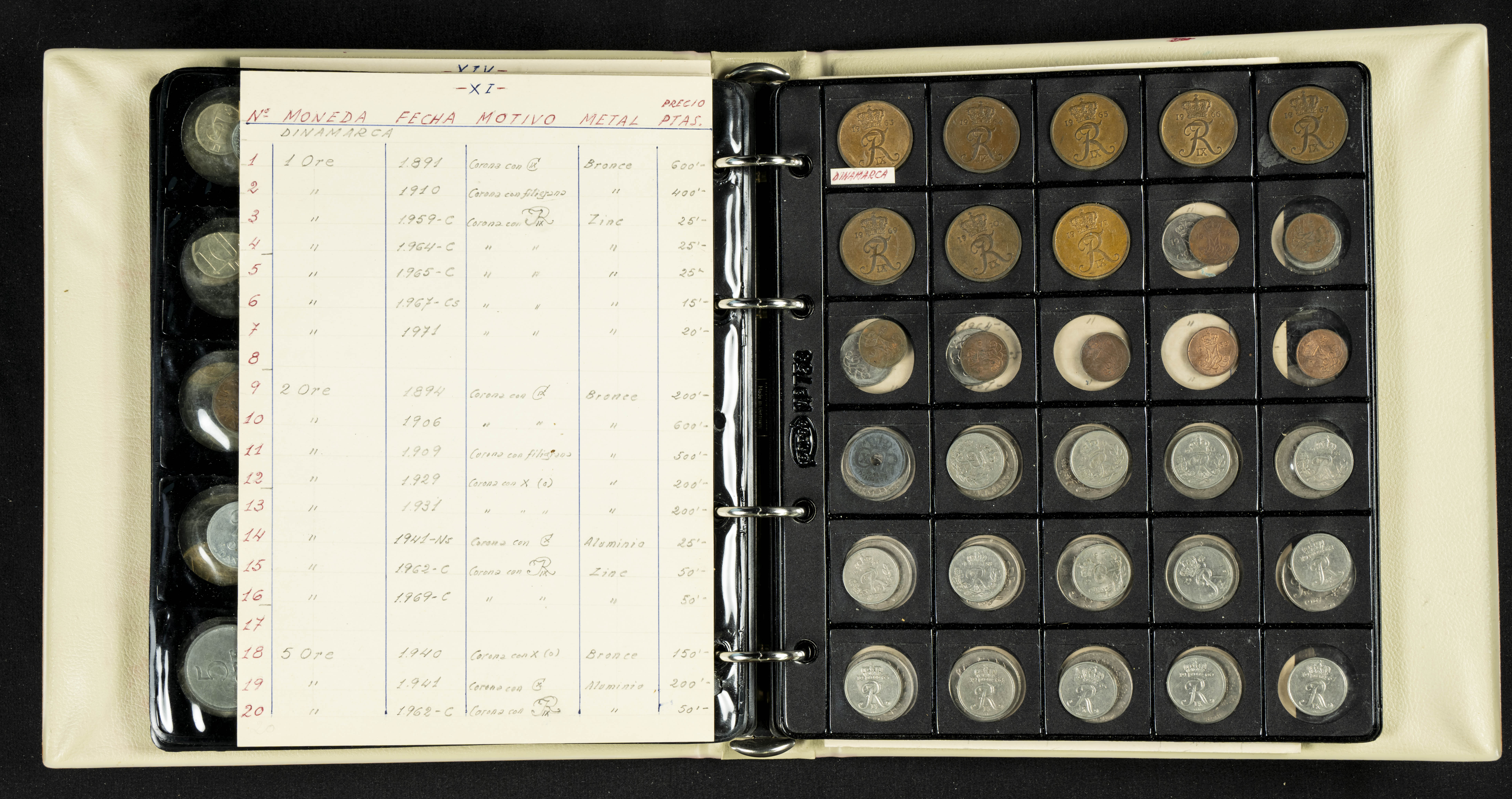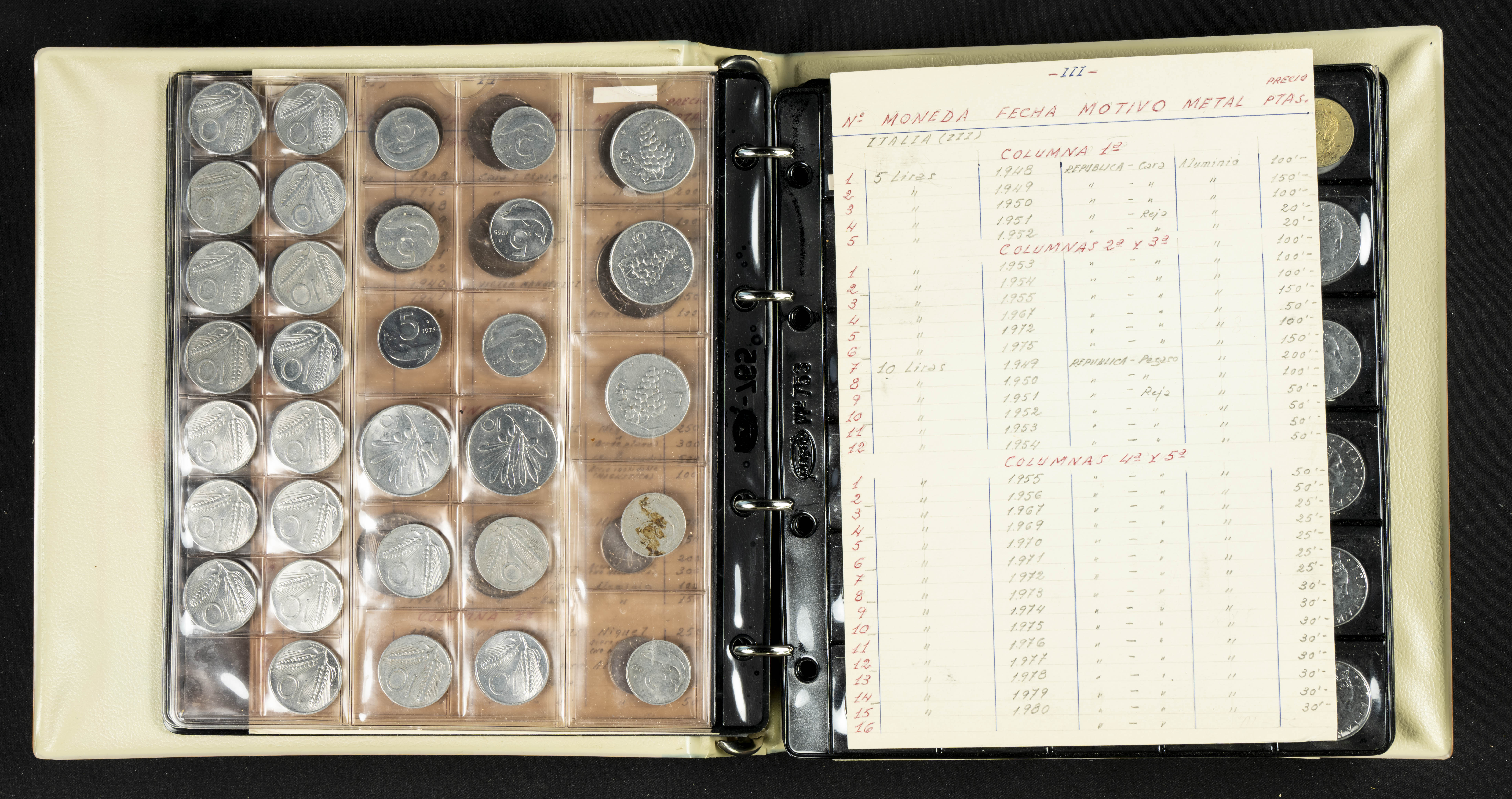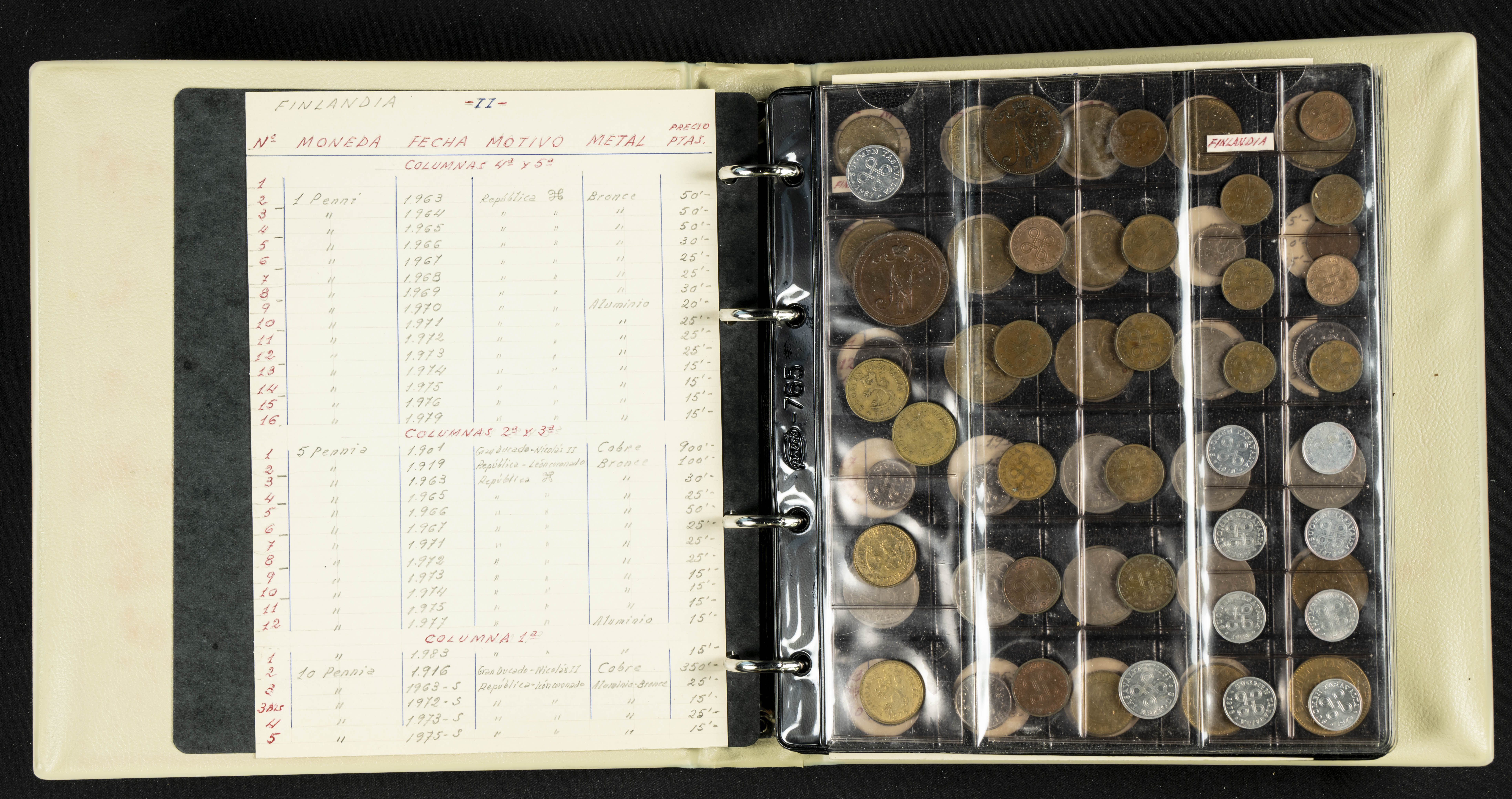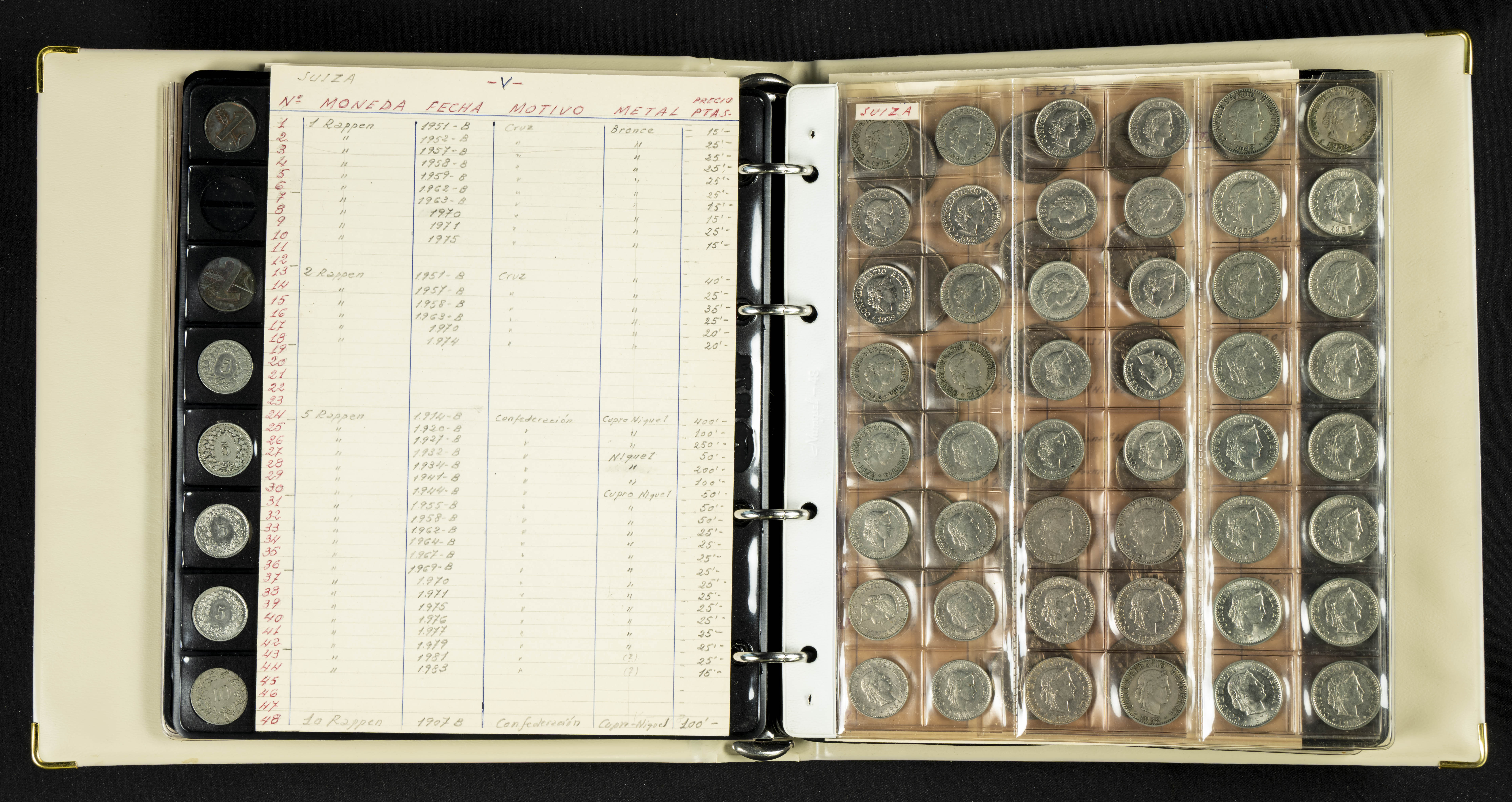 MONEDA MUNDIAL. Extraordinaria colección de moneda extranjera con un un número elevadísimo de piezas y expuestas en 16 álbumes. La colección está centrada, fundamentalmente, en el siglo XX, pero tiene también una interesante representación de moneda del siglo XIX. Gran cantidad de países, fechas, módulos, materiales (incluye un buen número de ejemplares en plata) representados y alguna reproducción. Diferentes estados de conservación. A EXAMINAR.