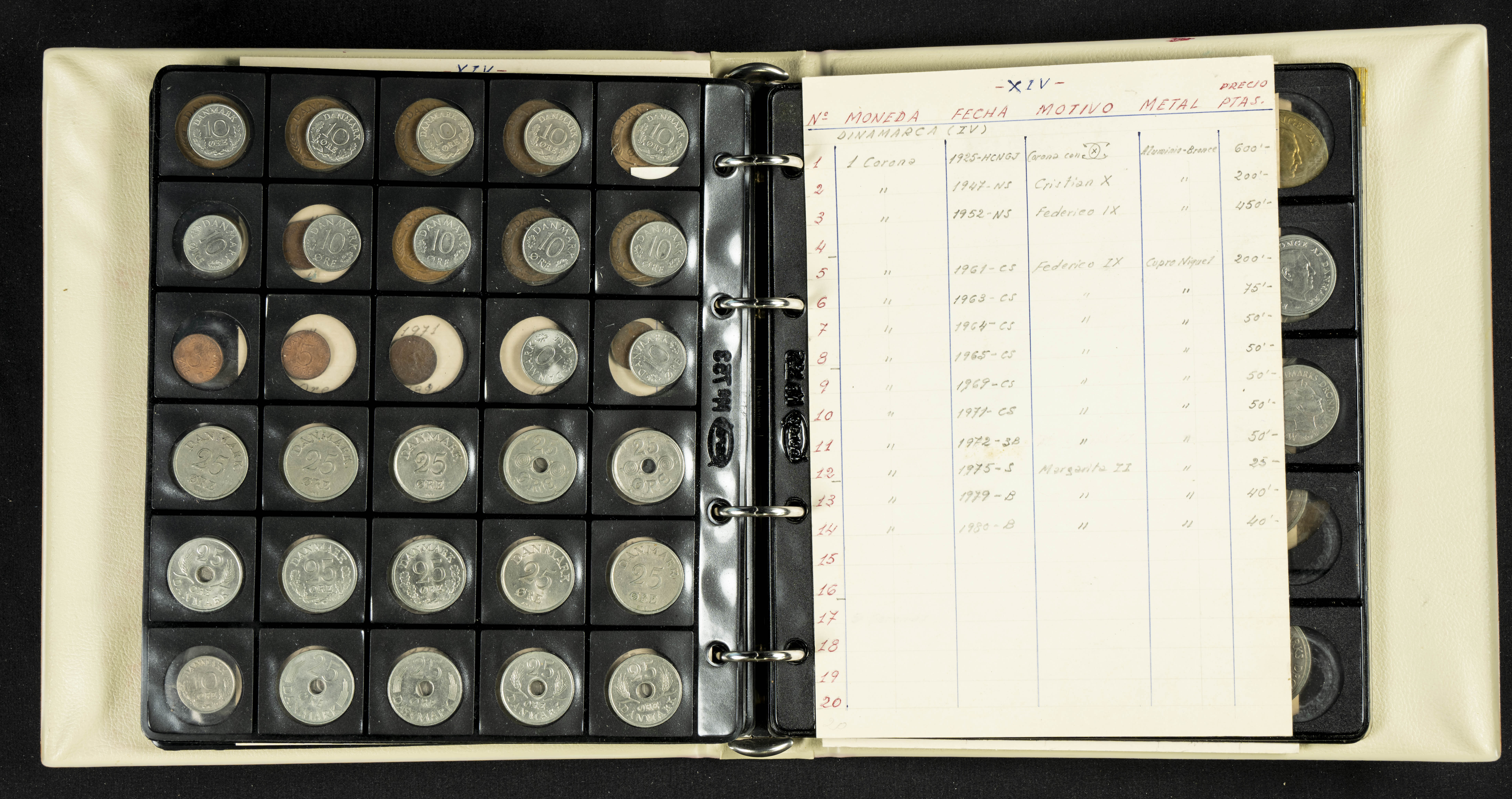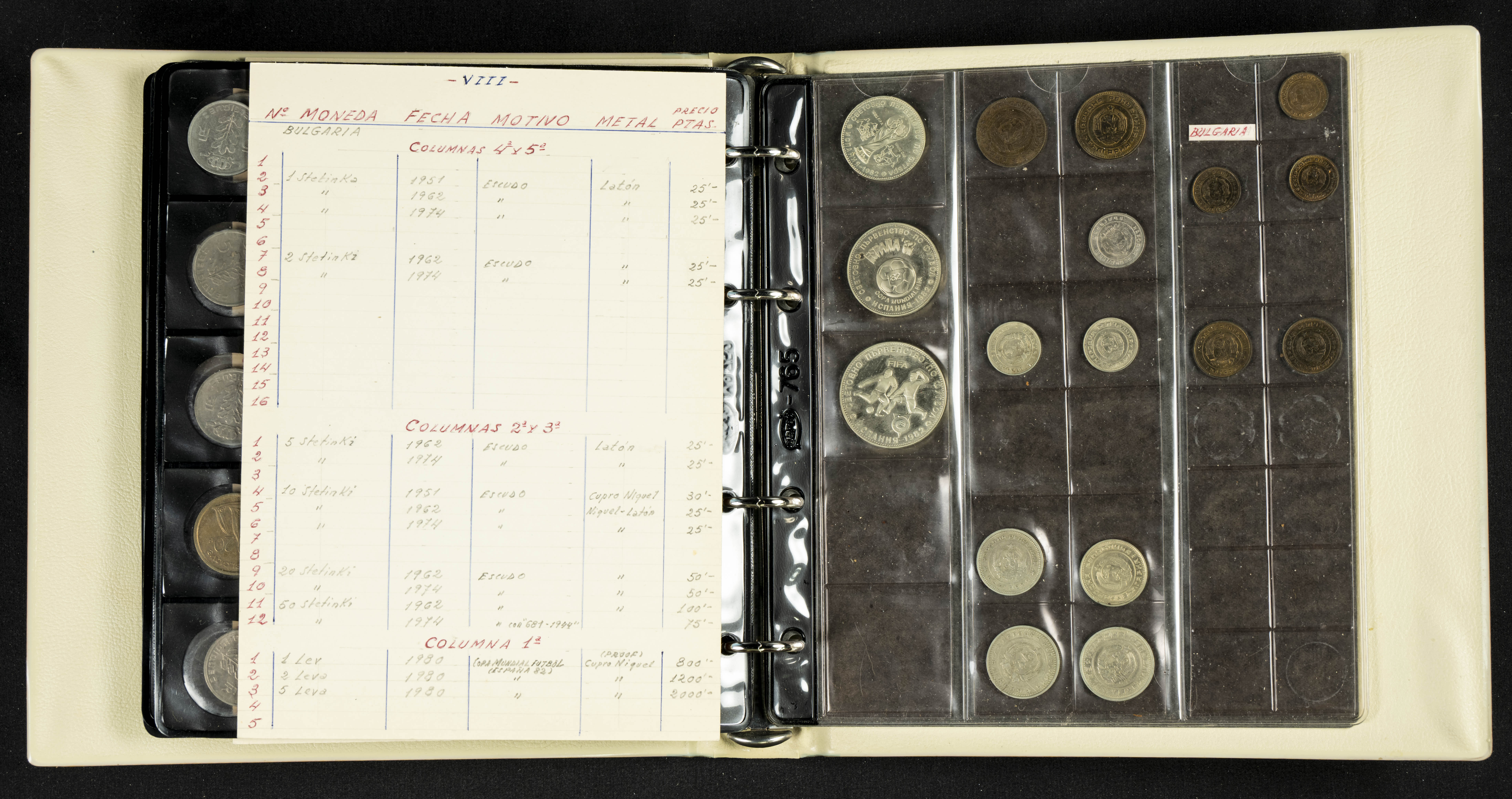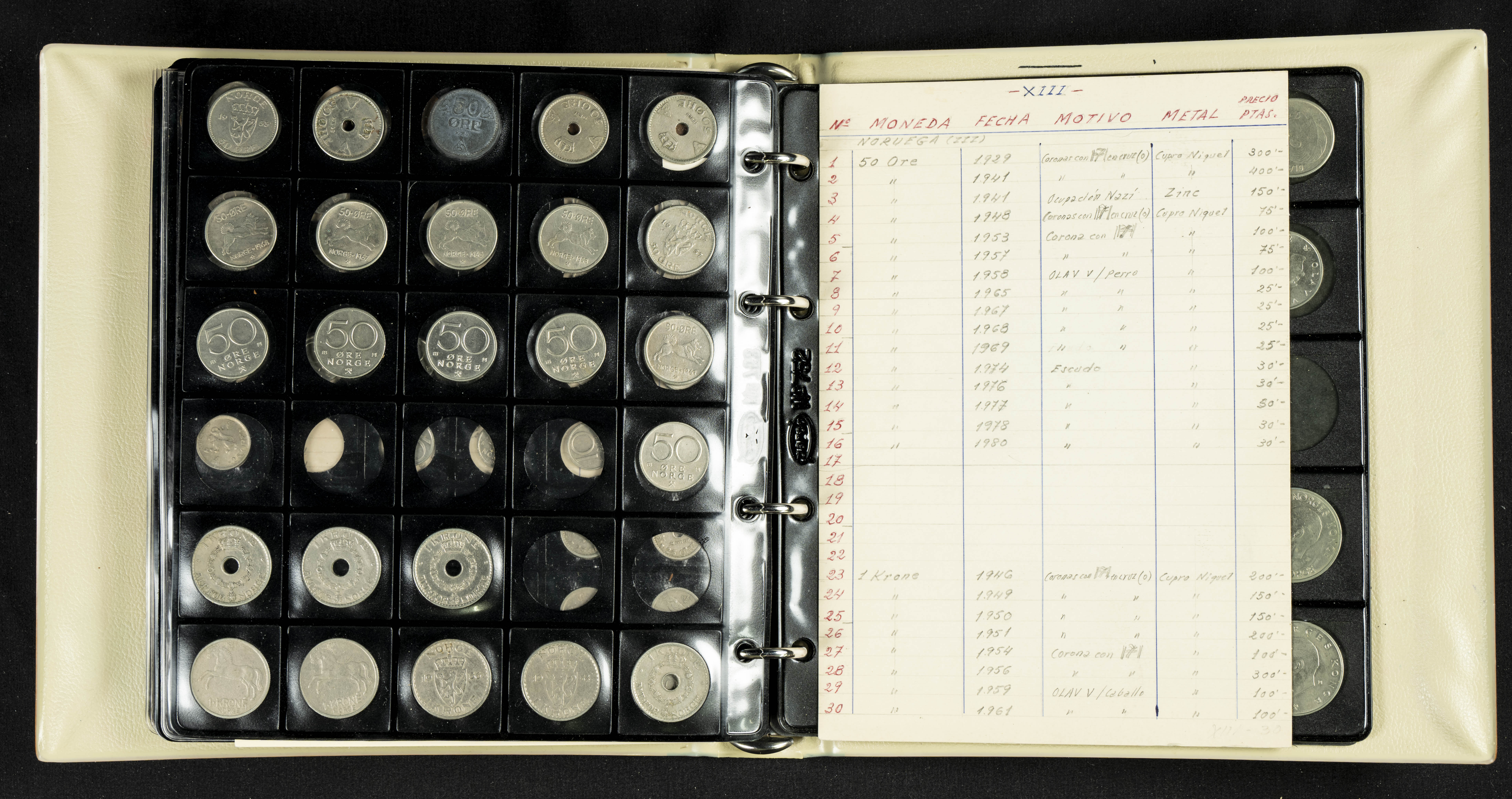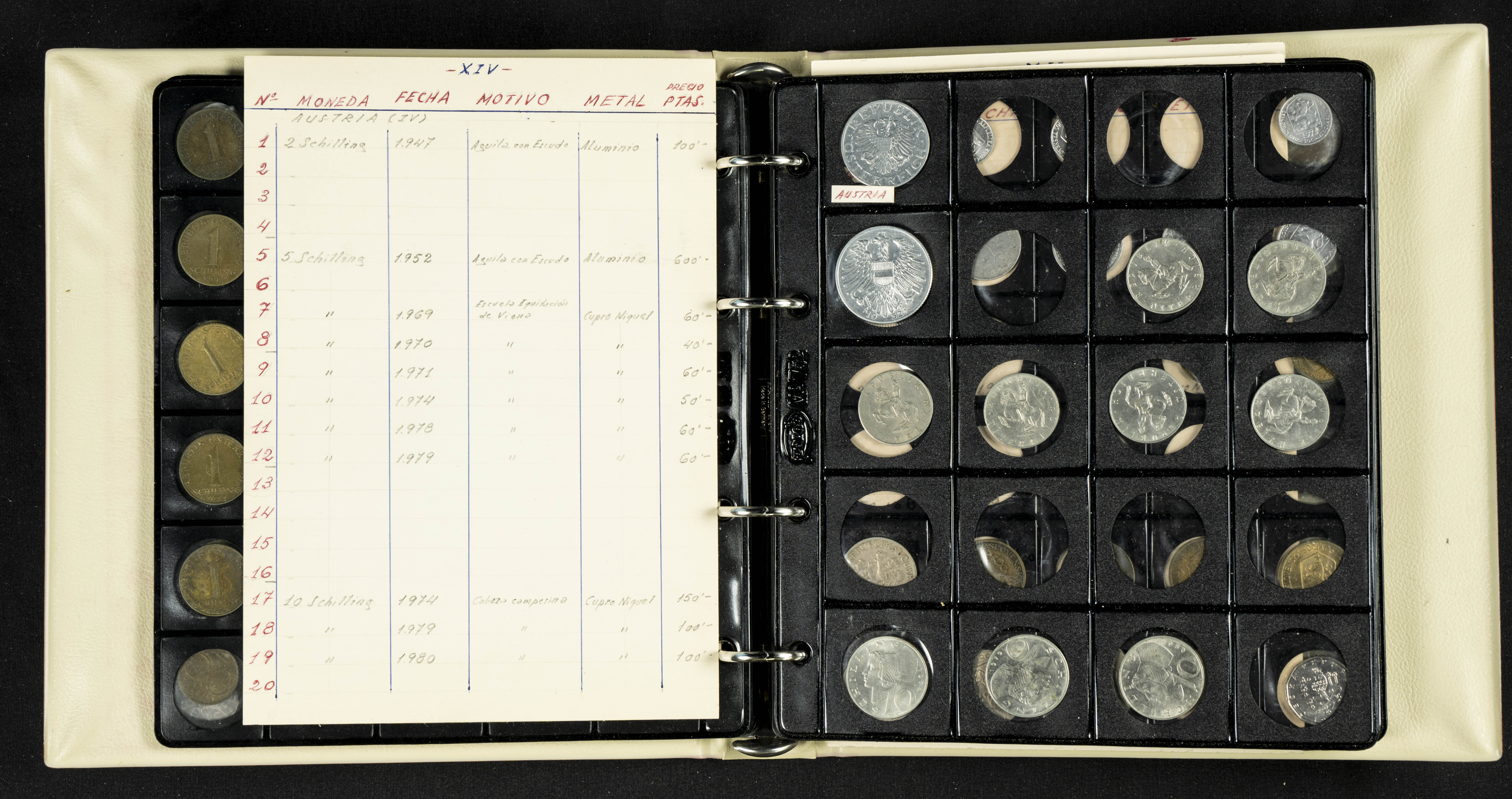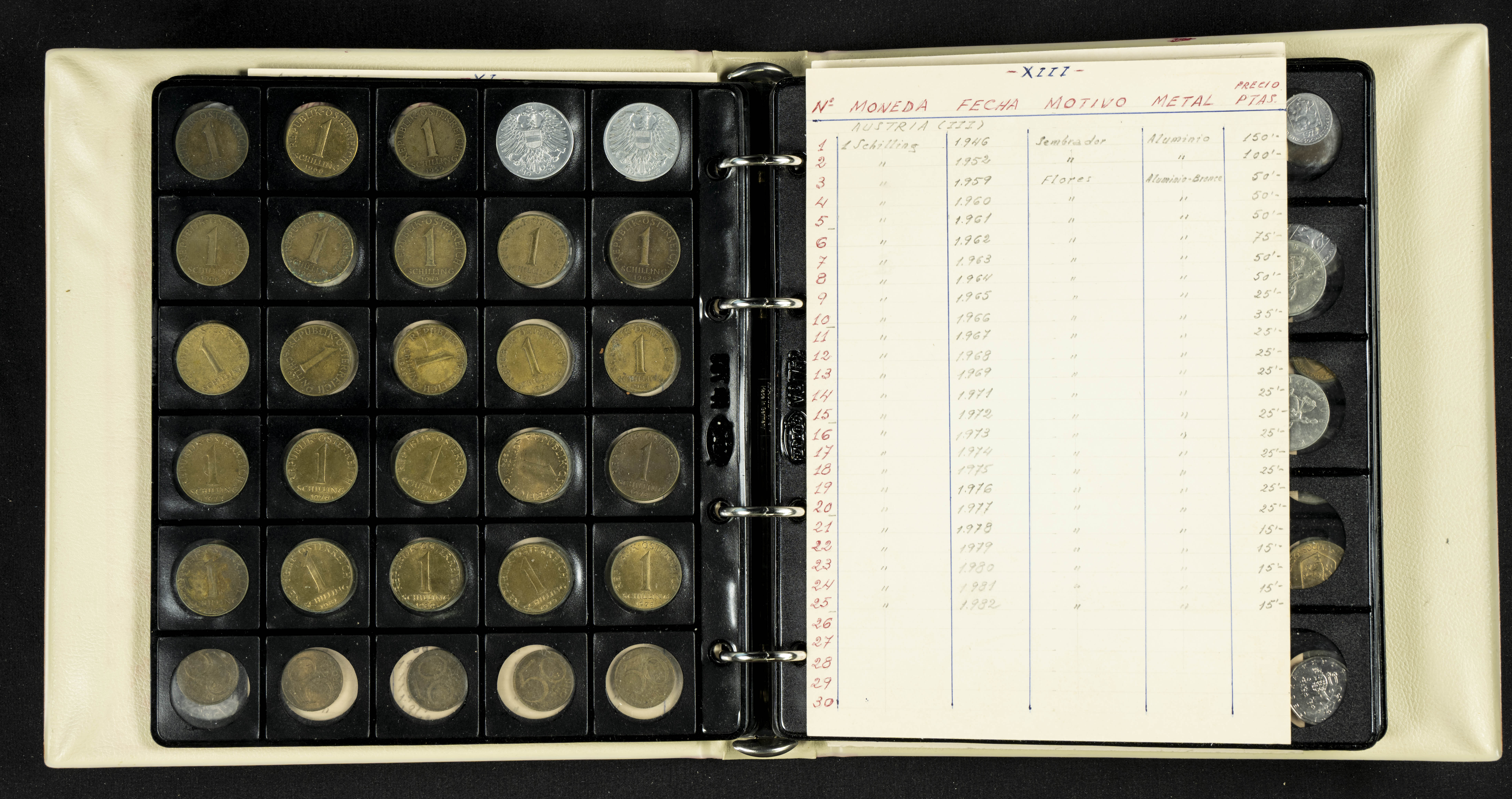 MONEDA MUNDIAL. Extraordinaria colección de moneda extranjera con un un número elevadísimo de piezas y expuestas en 16 álbumes. La colección está centrada, fundamentalmente, en el siglo XX, pero tiene también una interesante representación de moneda del siglo XIX. Gran cantidad de países, fechas, módulos, materiales (incluye un buen número de ejemplares en plata) representados y alguna reproducción. Diferentes estados de conservación. A EXAMINAR.