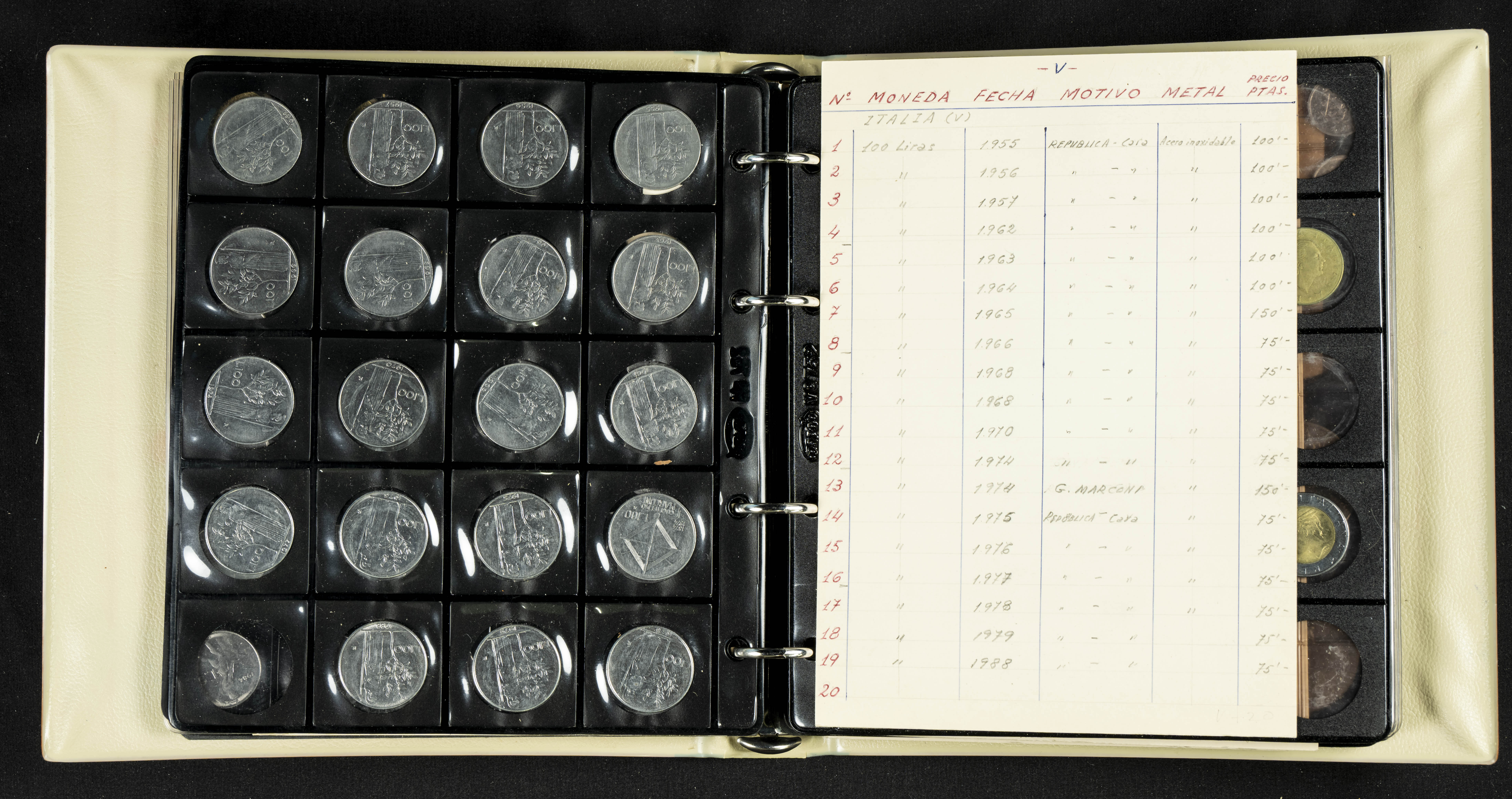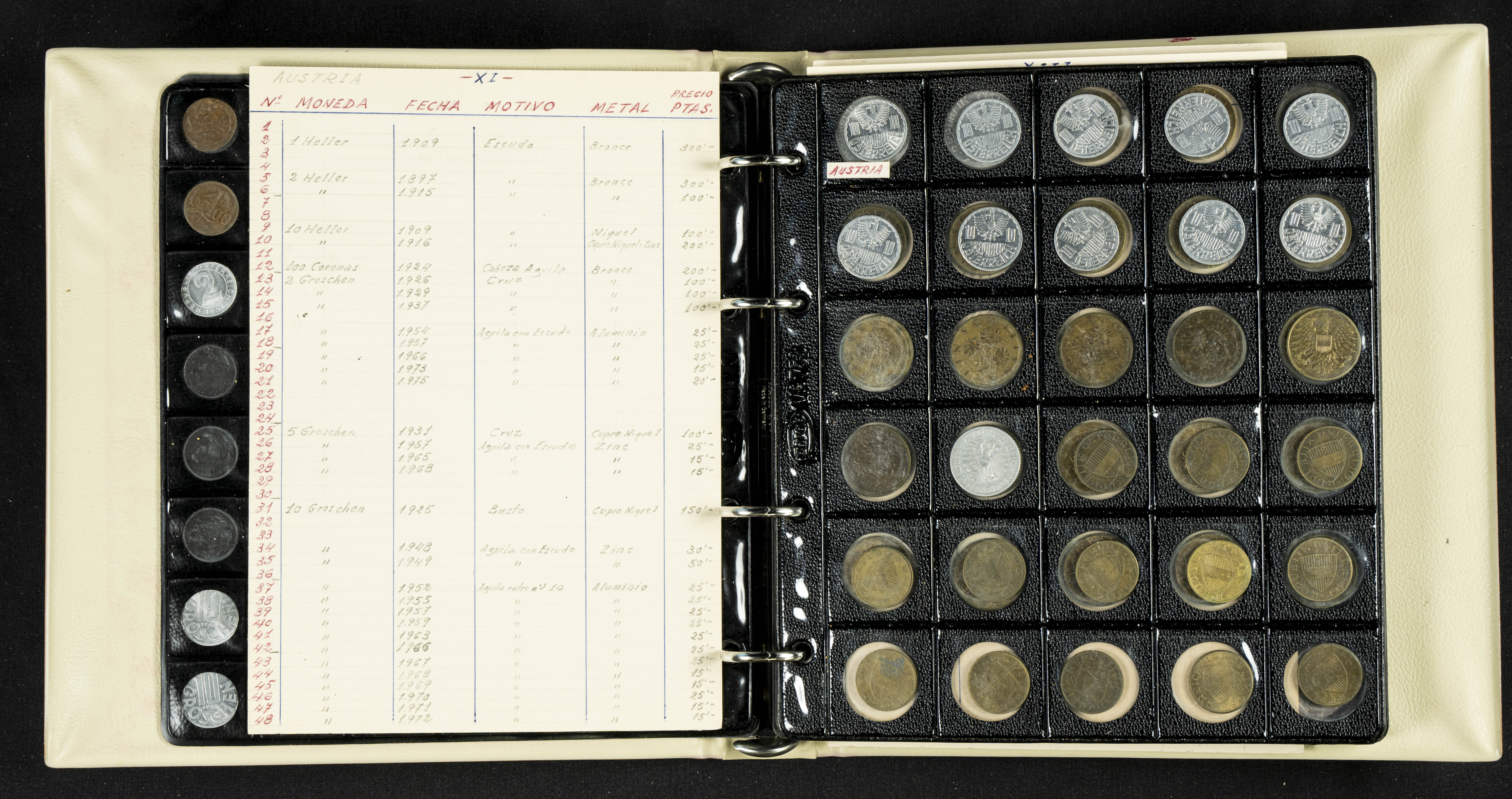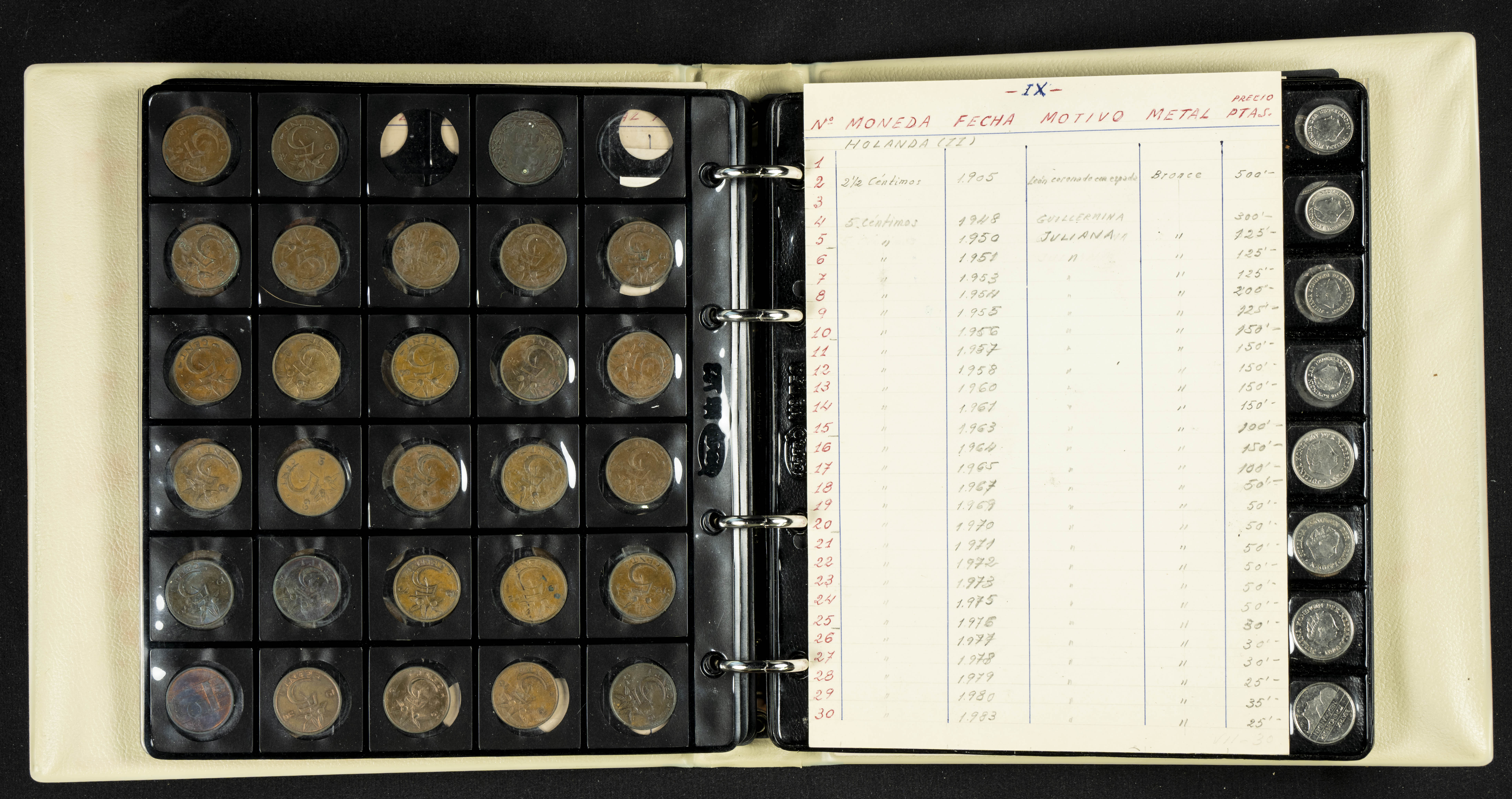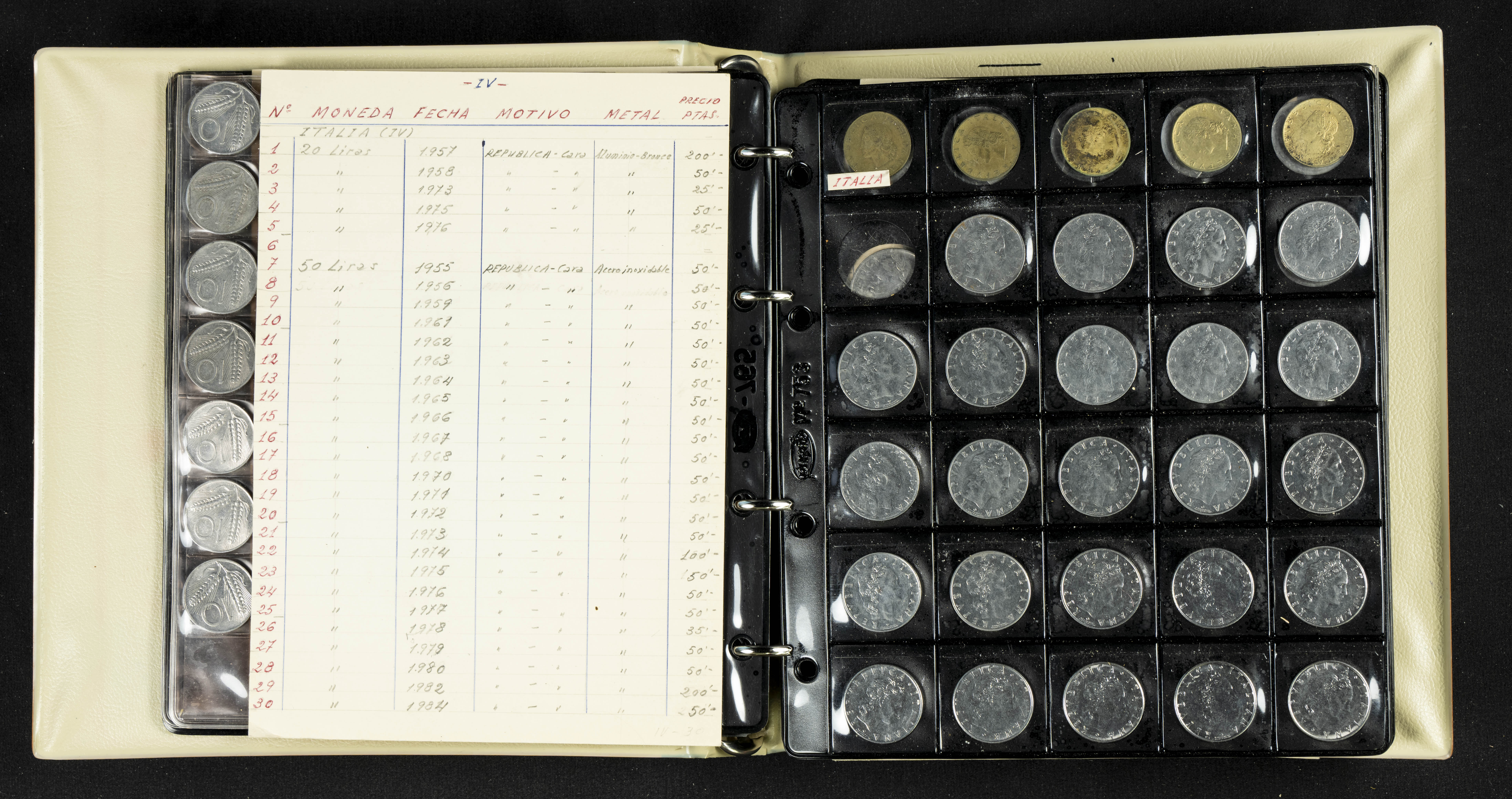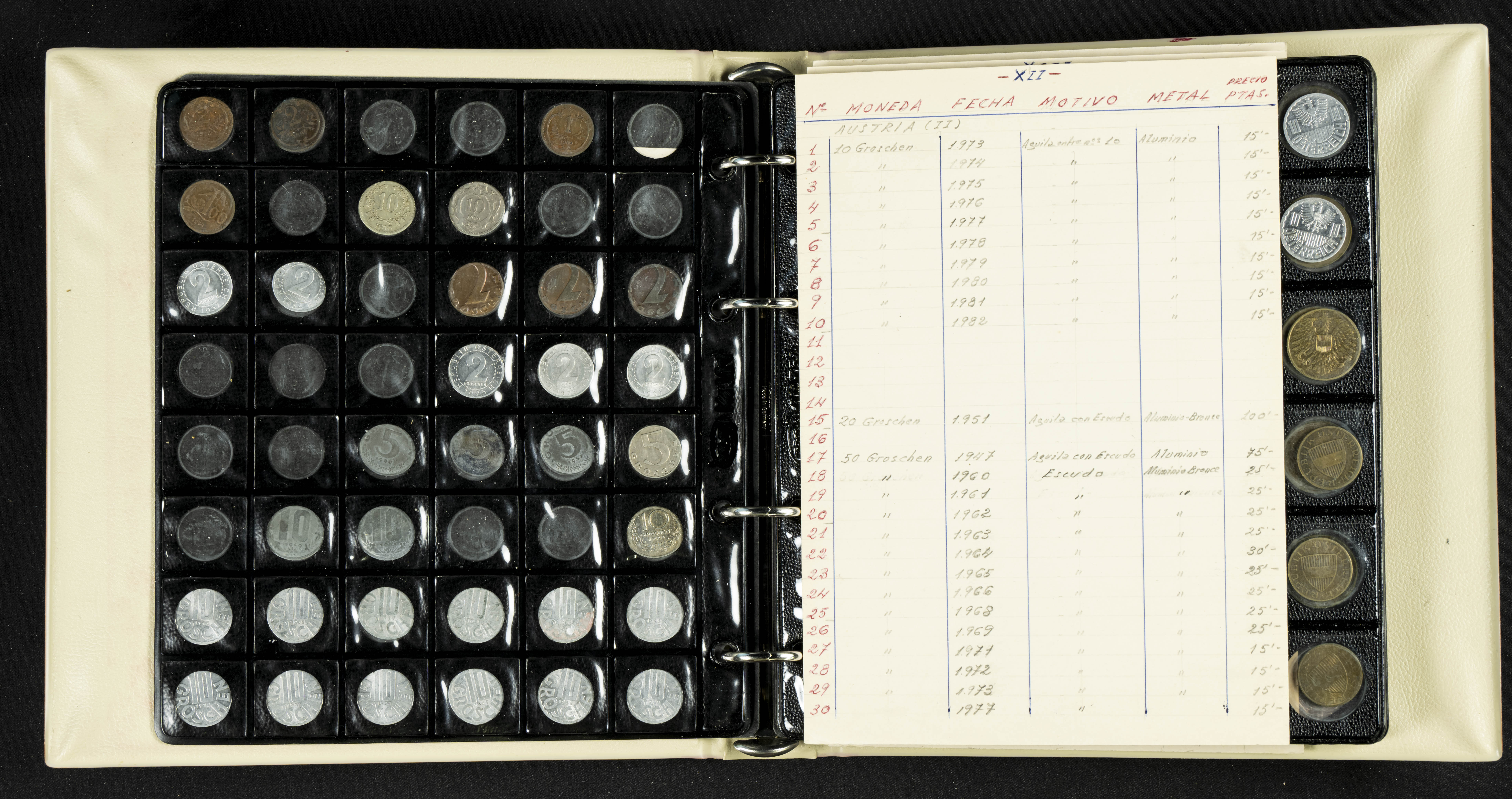 MONEDA MUNDIAL. Extraordinaria colección de moneda extranjera con un un número elevadísimo de piezas y expuestas en 16 álbumes. La colección está centrada, fundamentalmente, en el siglo XX, pero tiene también una interesante representación de moneda del siglo XIX. Gran cantidad de países, fechas, módulos, materiales (incluye un buen número de ejemplares en plata) representados y alguna reproducción. Diferentes estados de conservación. A EXAMINAR.