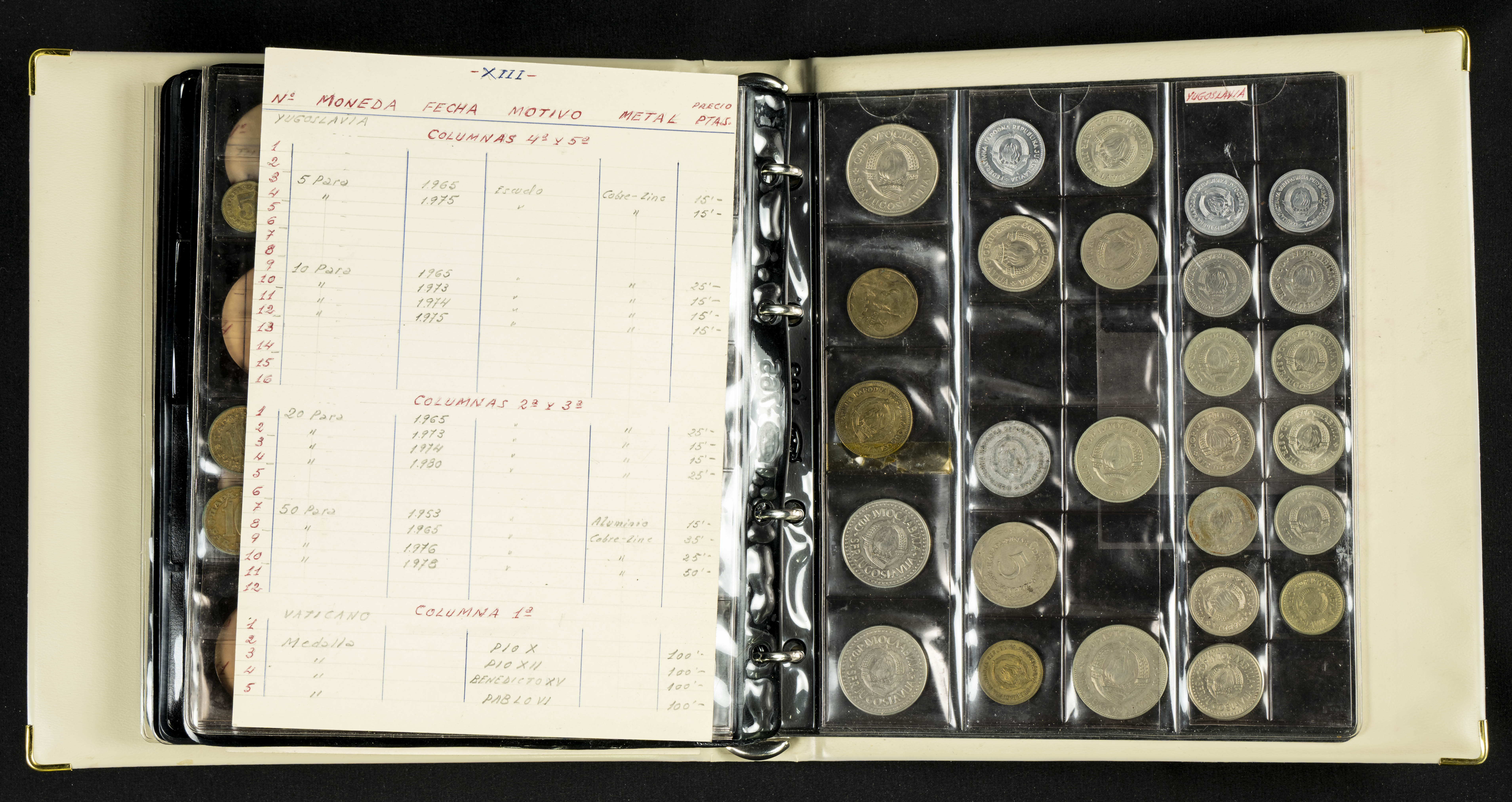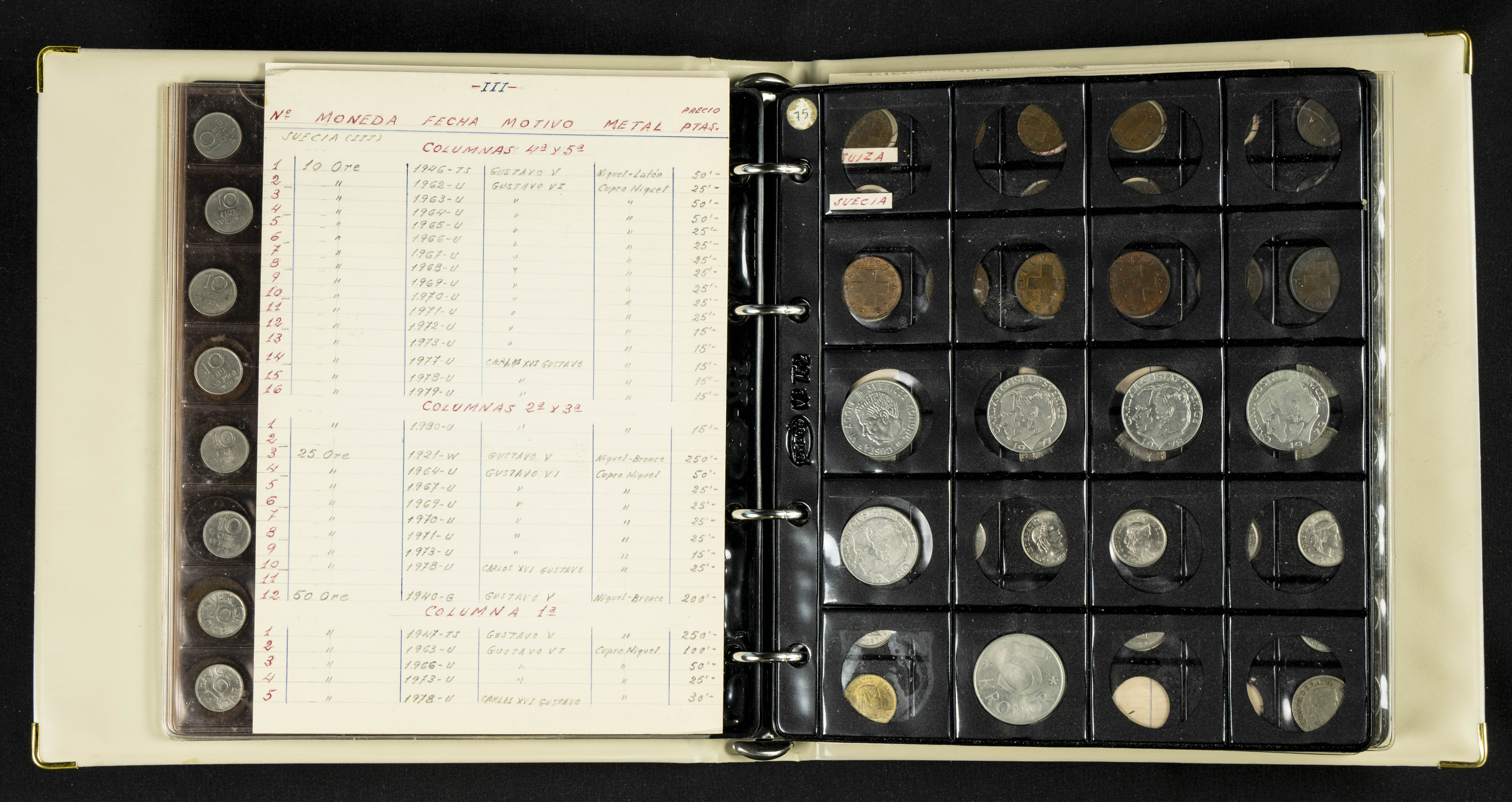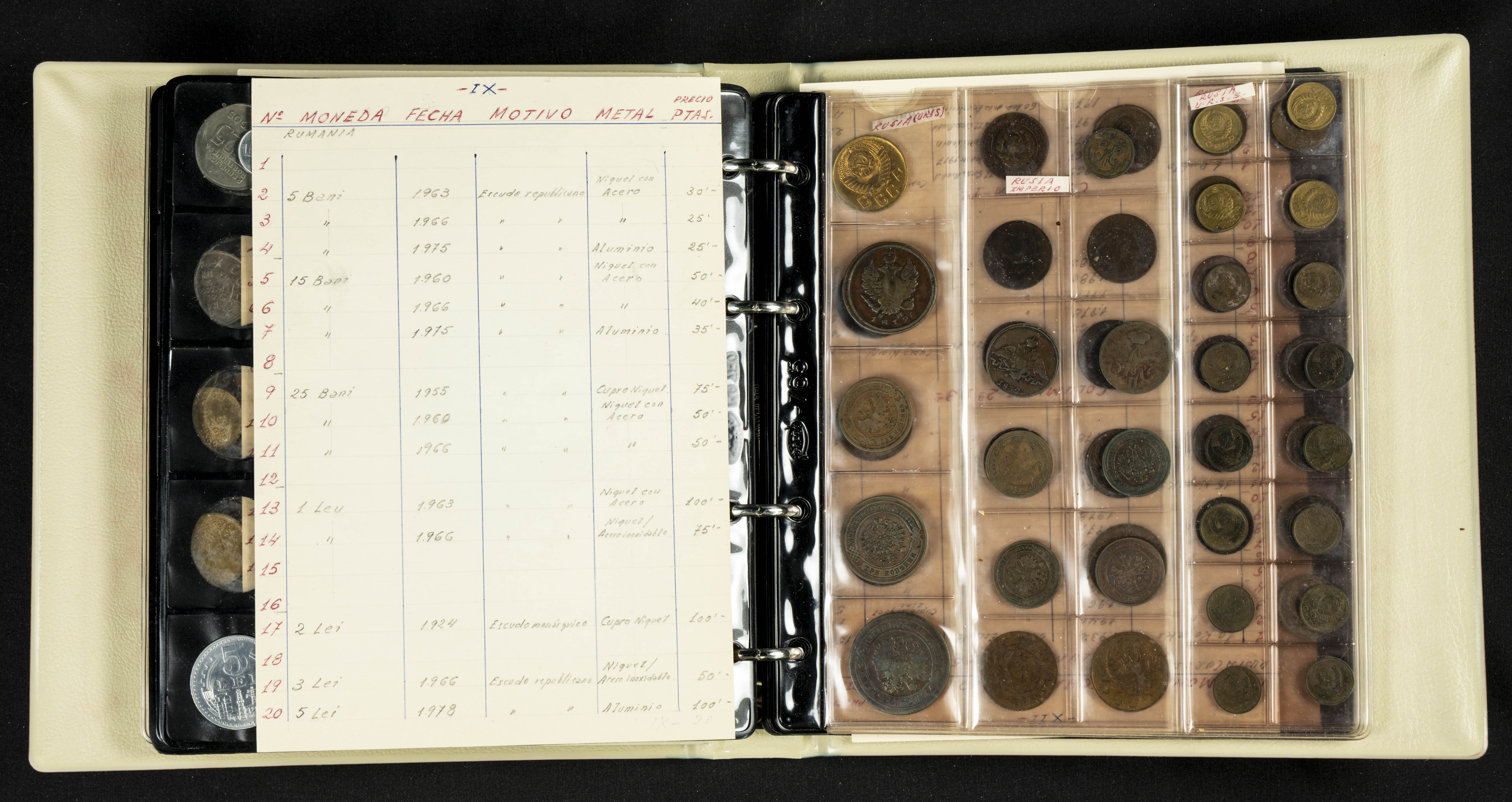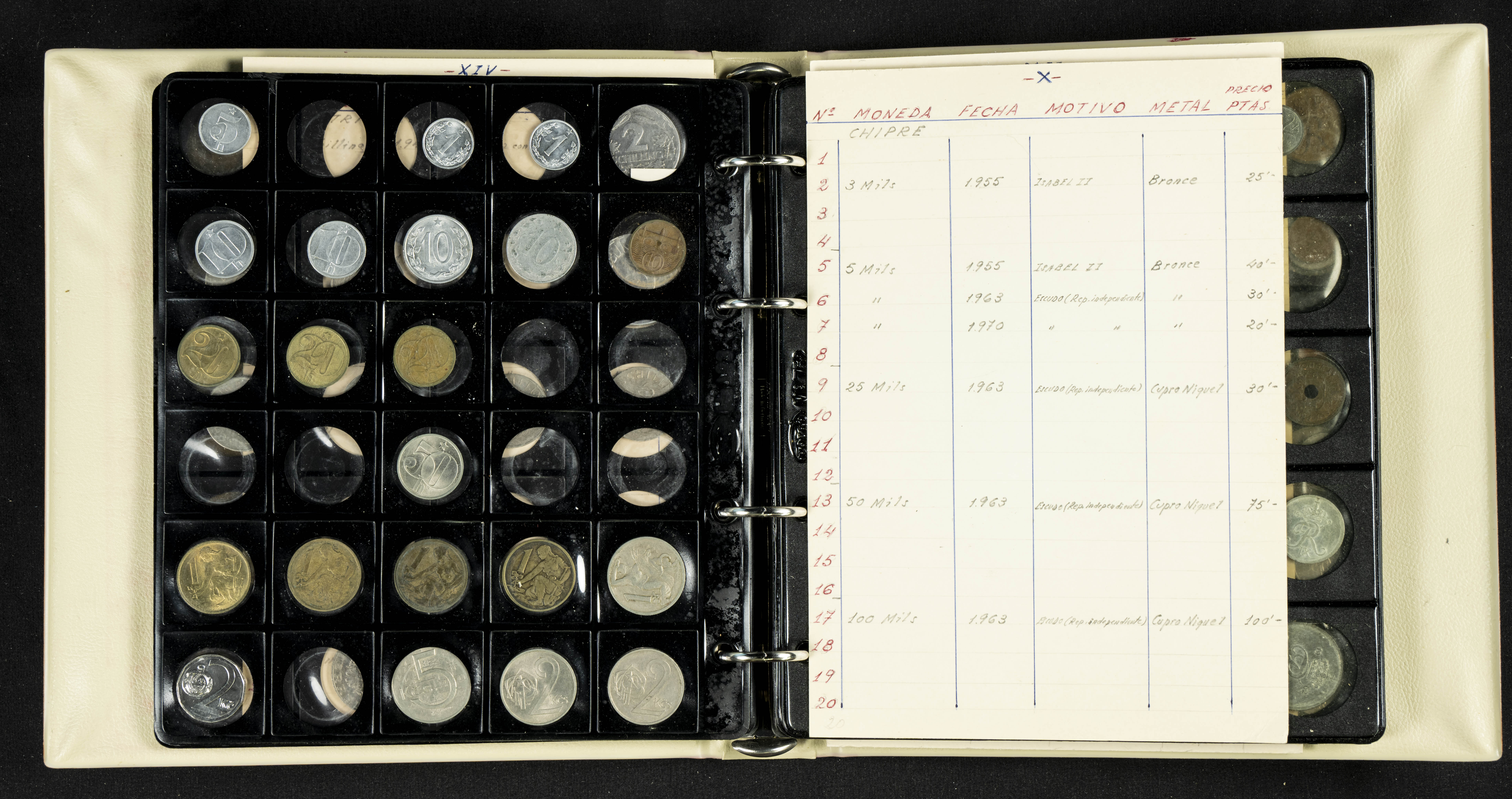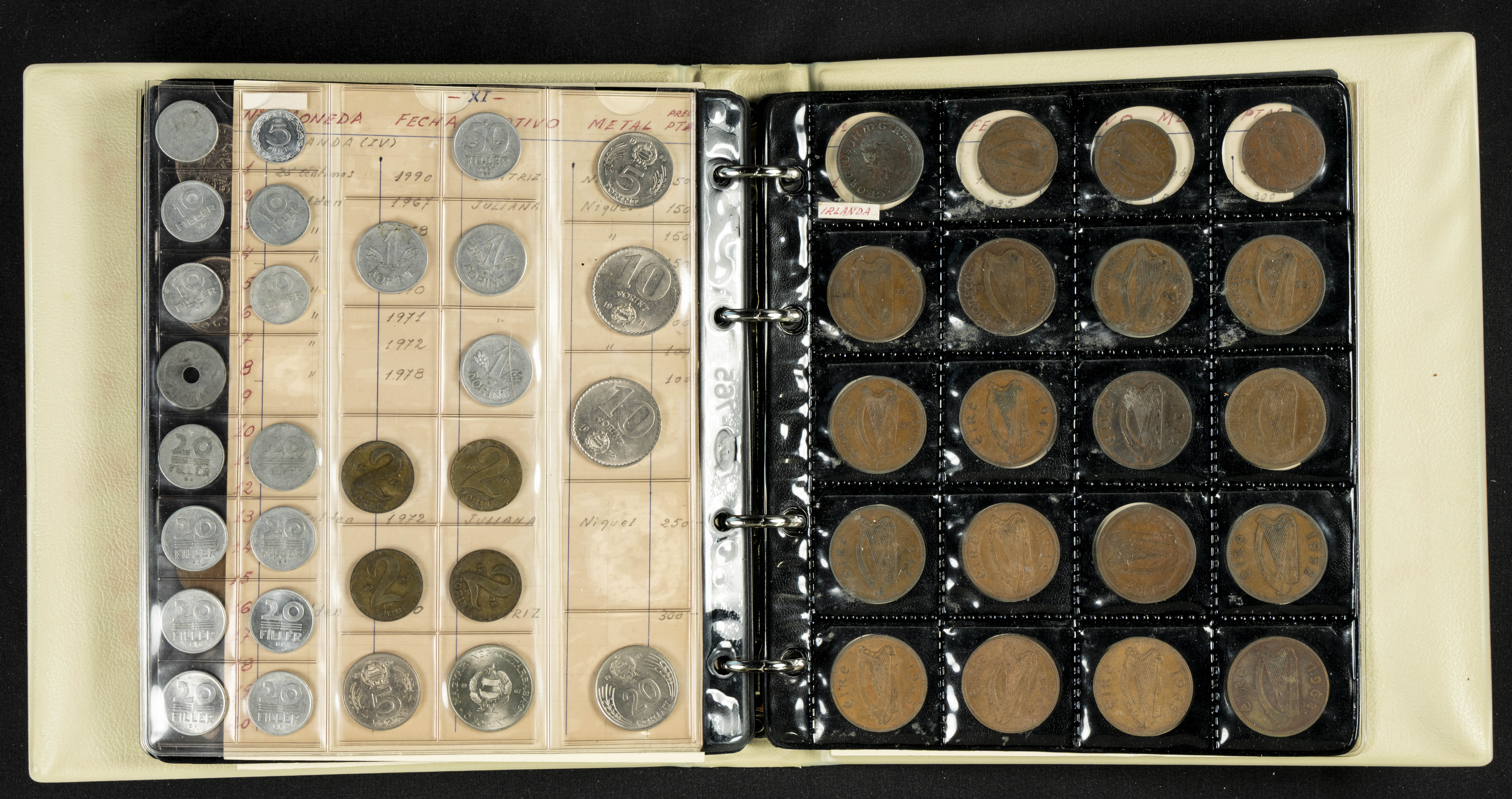 MONEDA MUNDIAL. Extraordinaria colección de moneda extranjera con un un número elevadísimo de piezas y expuestas en 16 álbumes. La colección está centrada, fundamentalmente, en el siglo XX, pero tiene también una interesante representación de moneda del siglo XIX. Gran cantidad de países, fechas, módulos, materiales (incluye un buen número de ejemplares en plata) representados y alguna reproducción. Diferentes estados de conservación. A EXAMINAR.