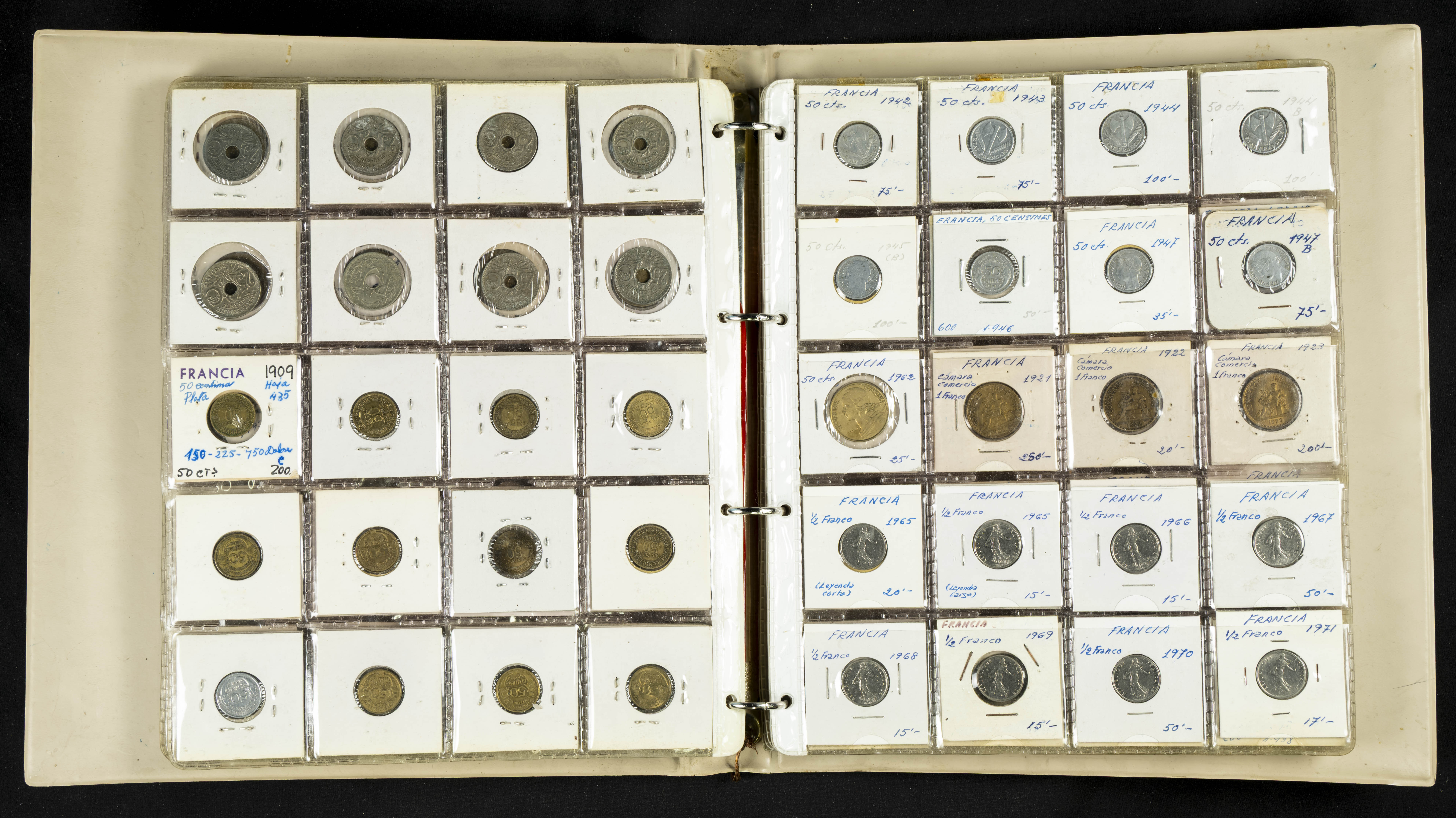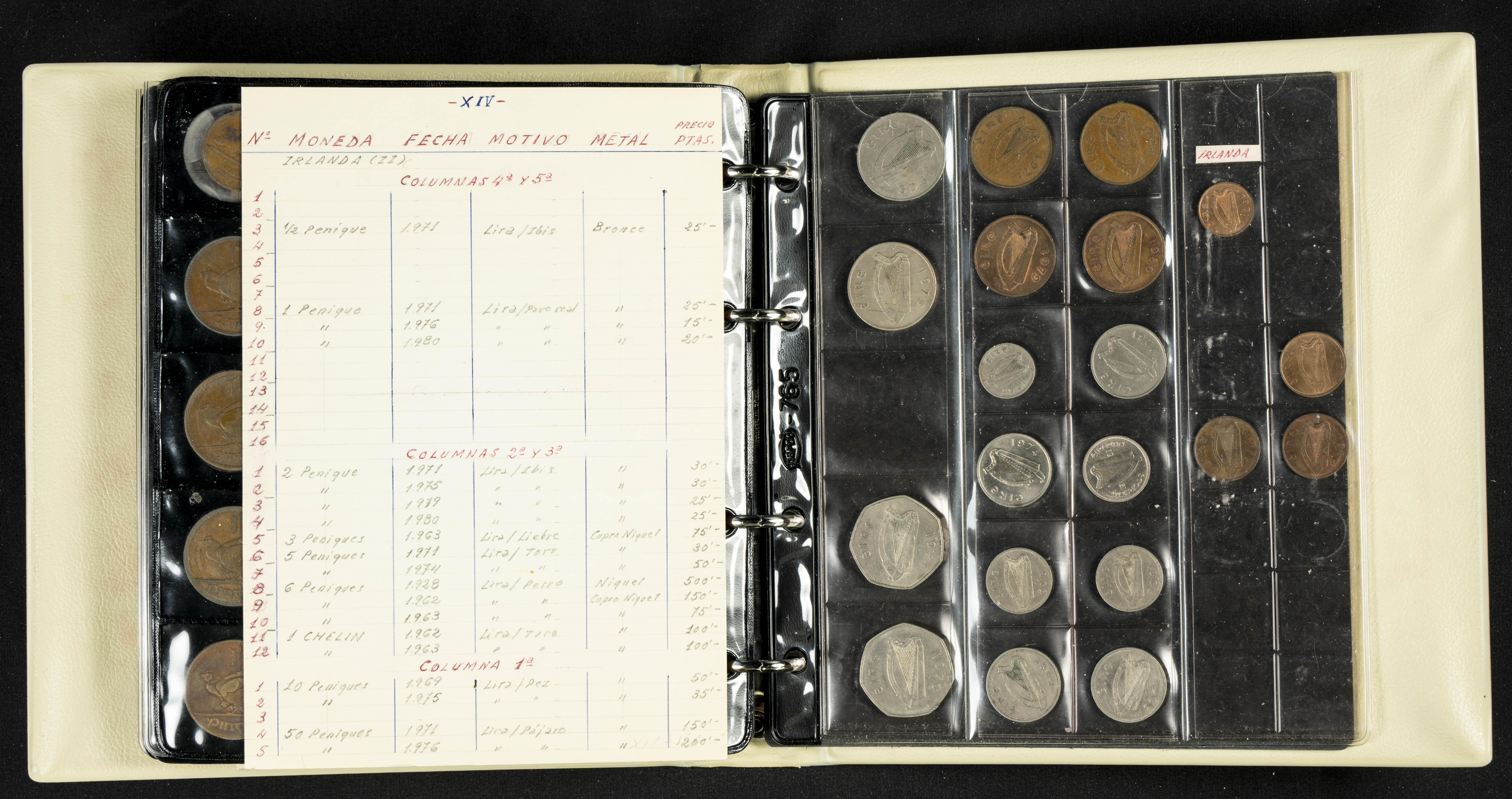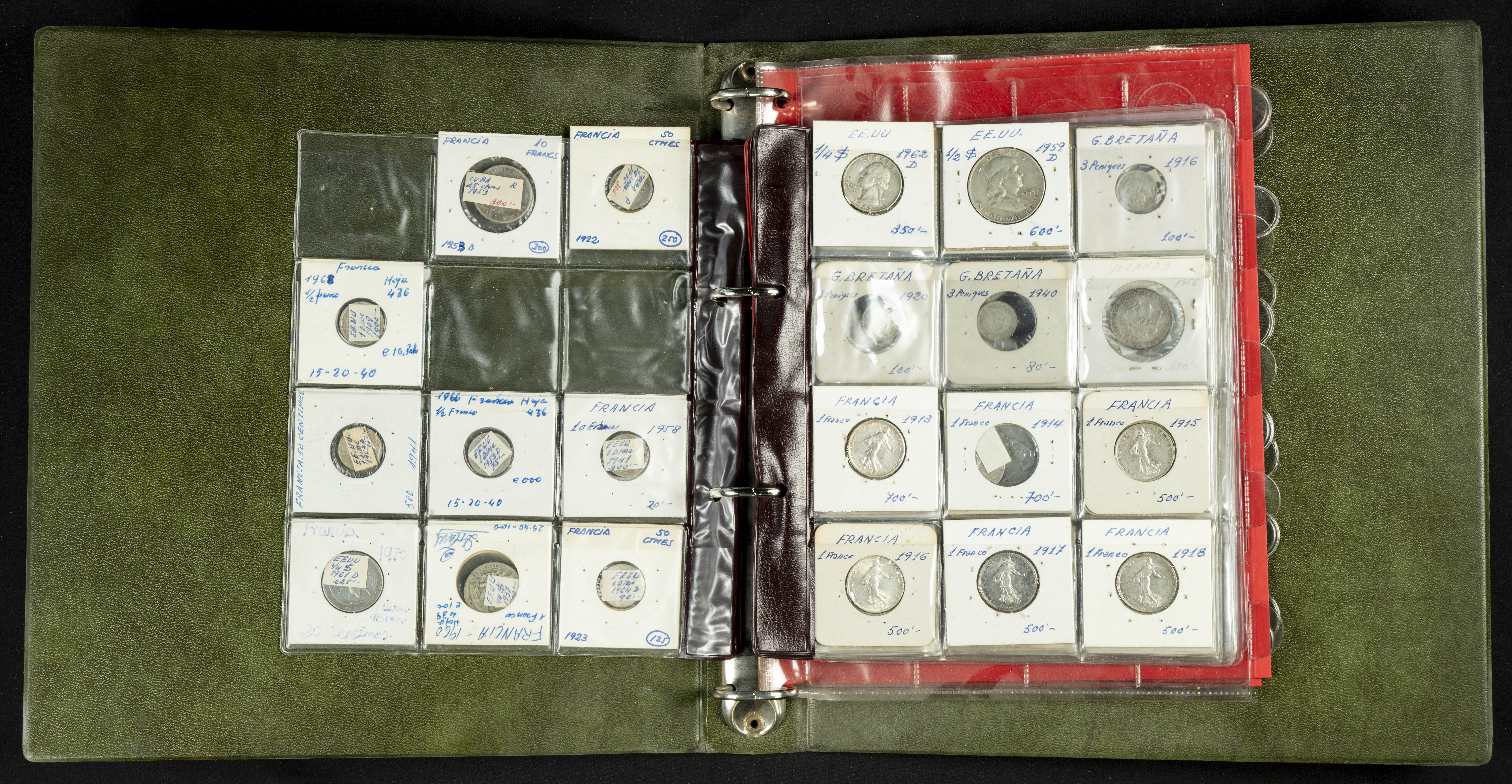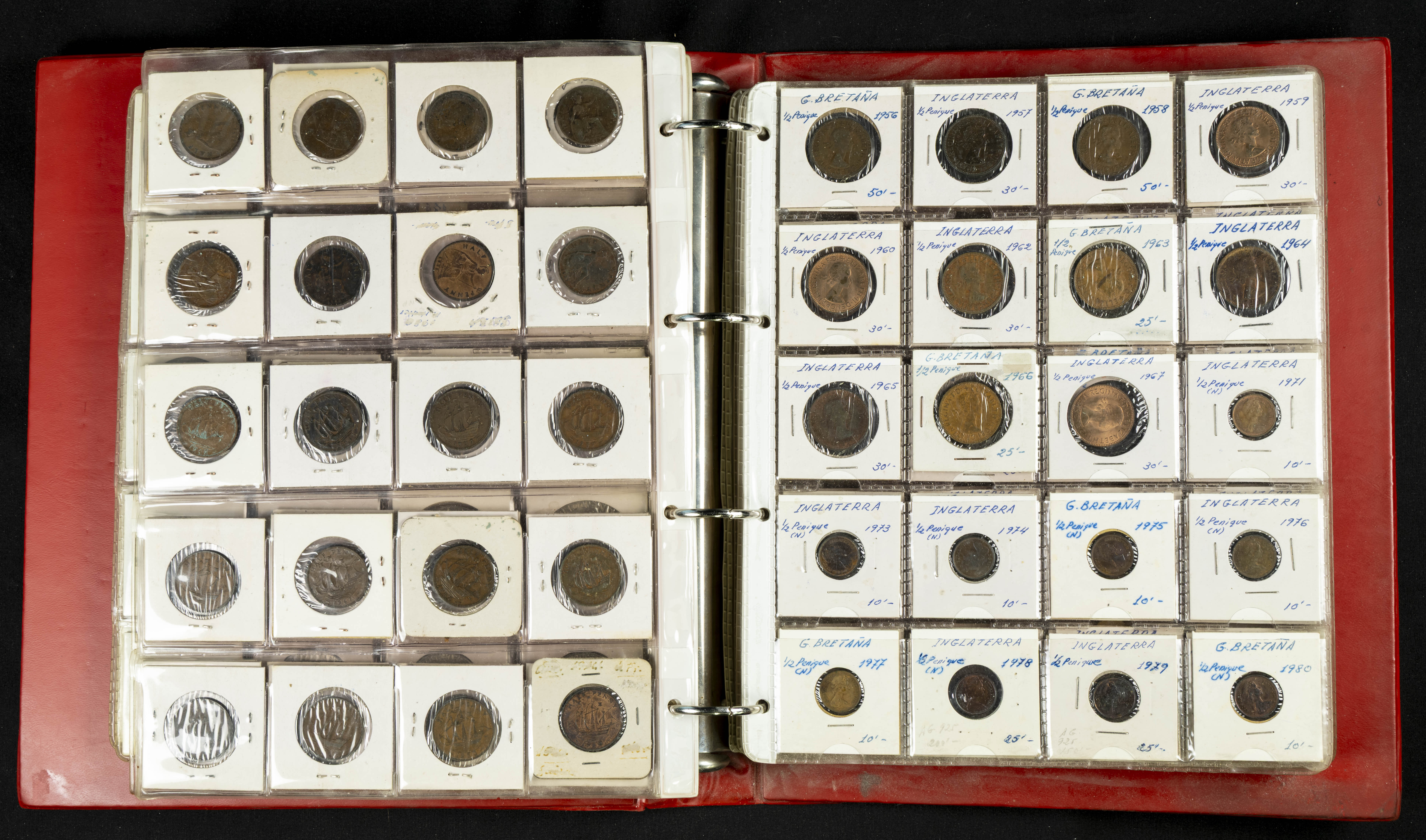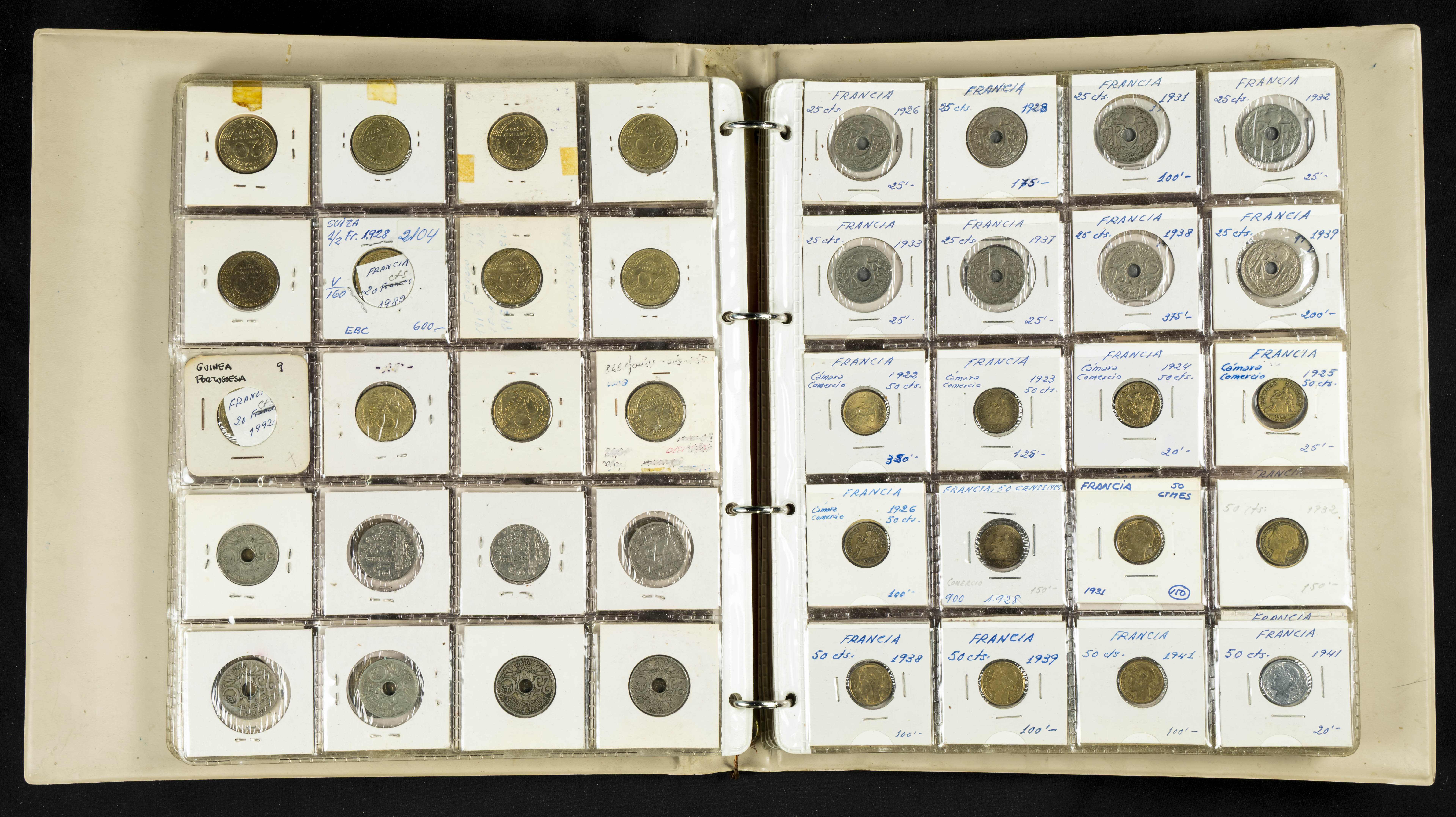 MONEDA MUNDIAL. Extraordinaria colección de moneda extranjera con un un número elevadísimo de piezas y expuestas en 16 álbumes. La colección está centrada, fundamentalmente, en el siglo XX, pero tiene también una interesante representación de moneda del siglo XIX. Gran cantidad de países, fechas, módulos, materiales (incluye un buen número de ejemplares en plata) representados y alguna reproducción. Diferentes estados de conservación. A EXAMINAR.