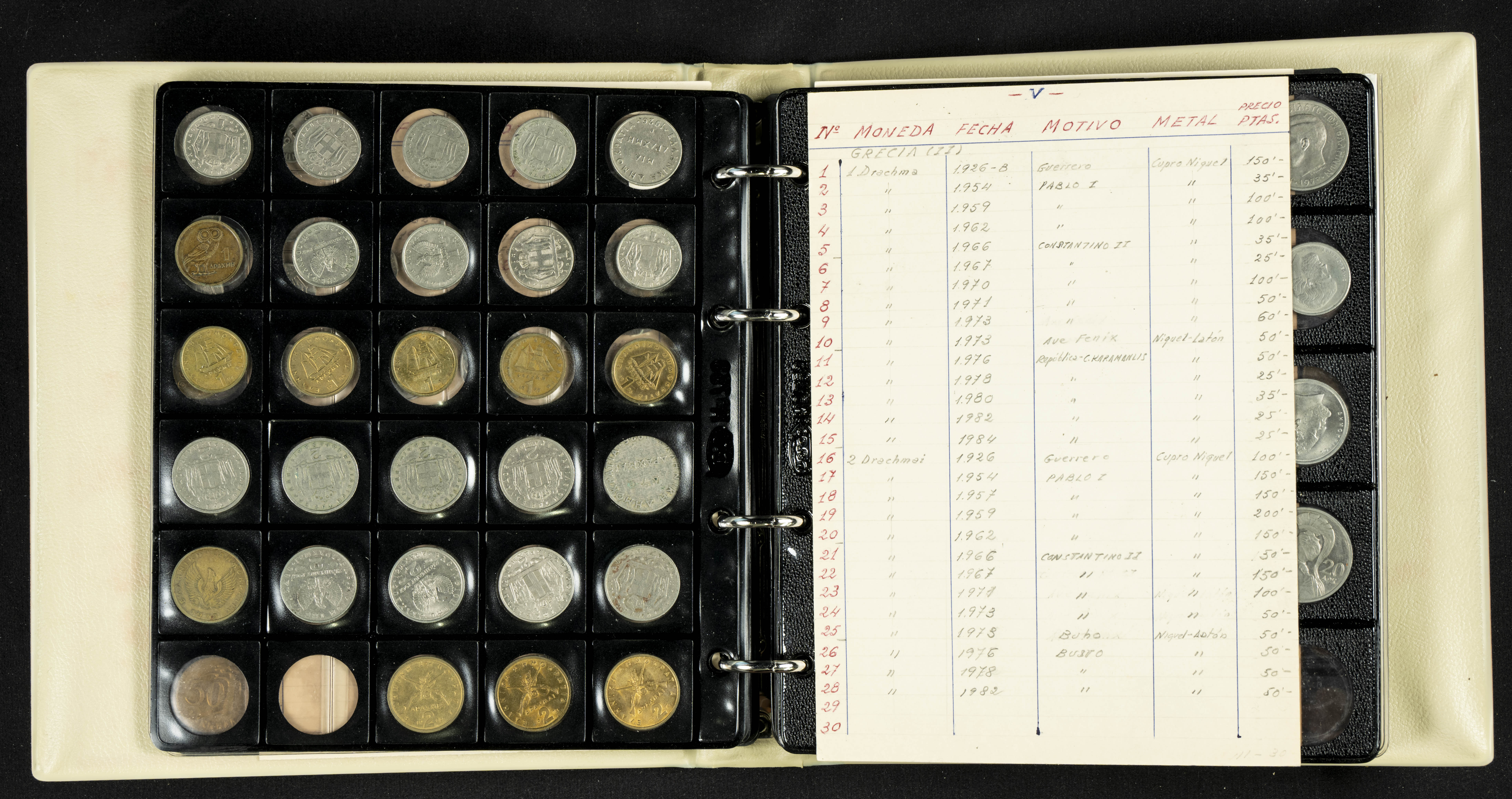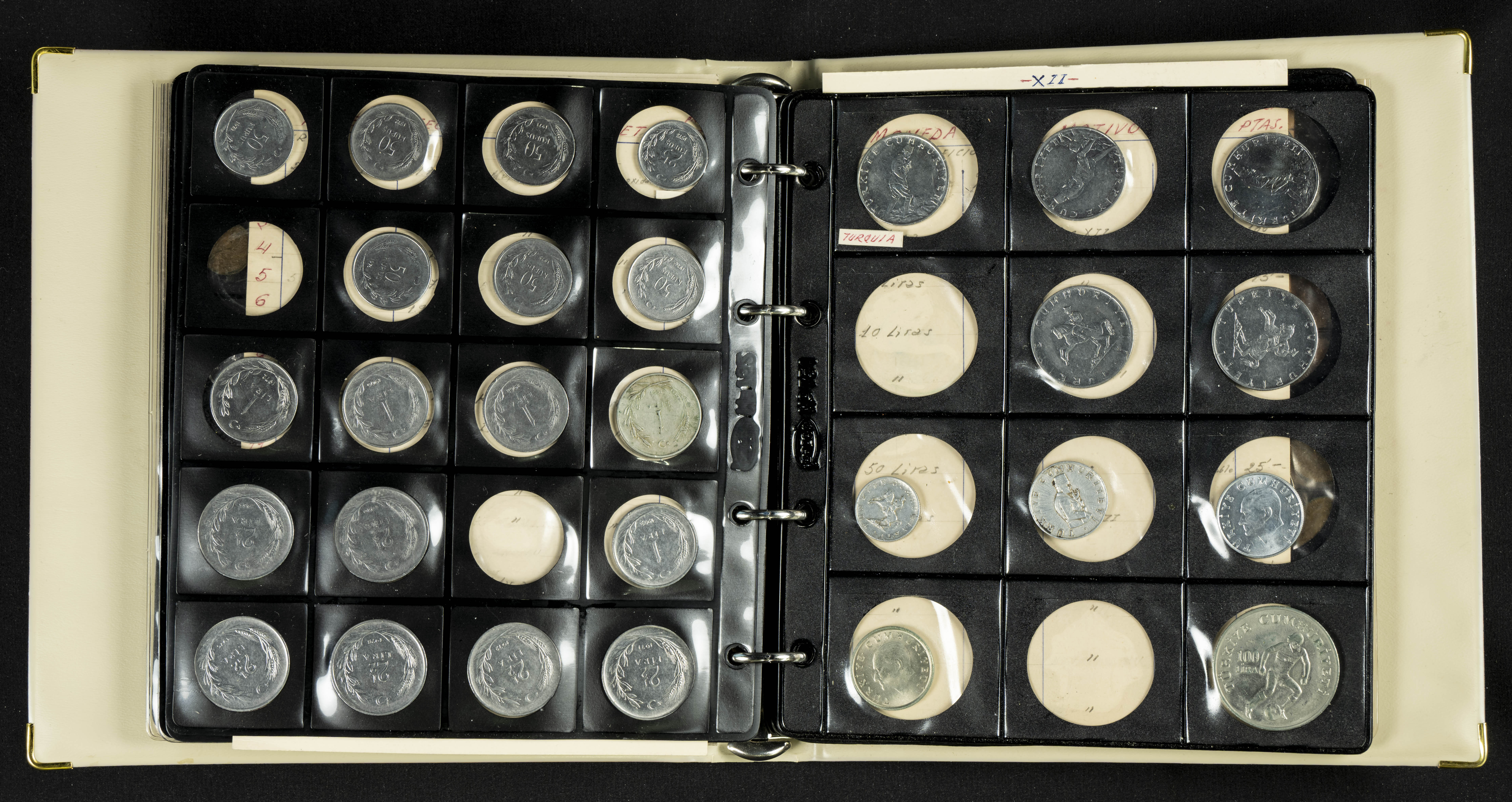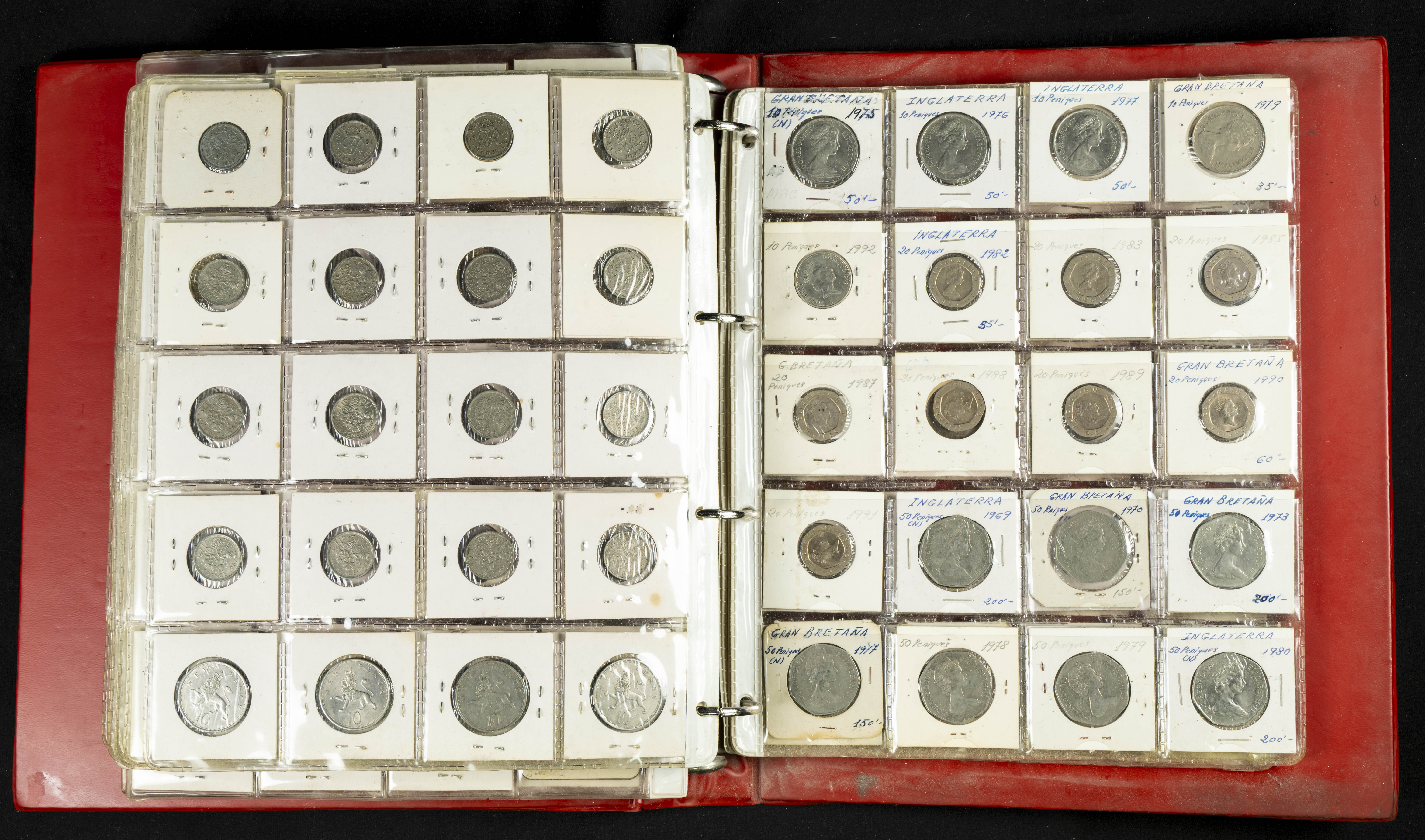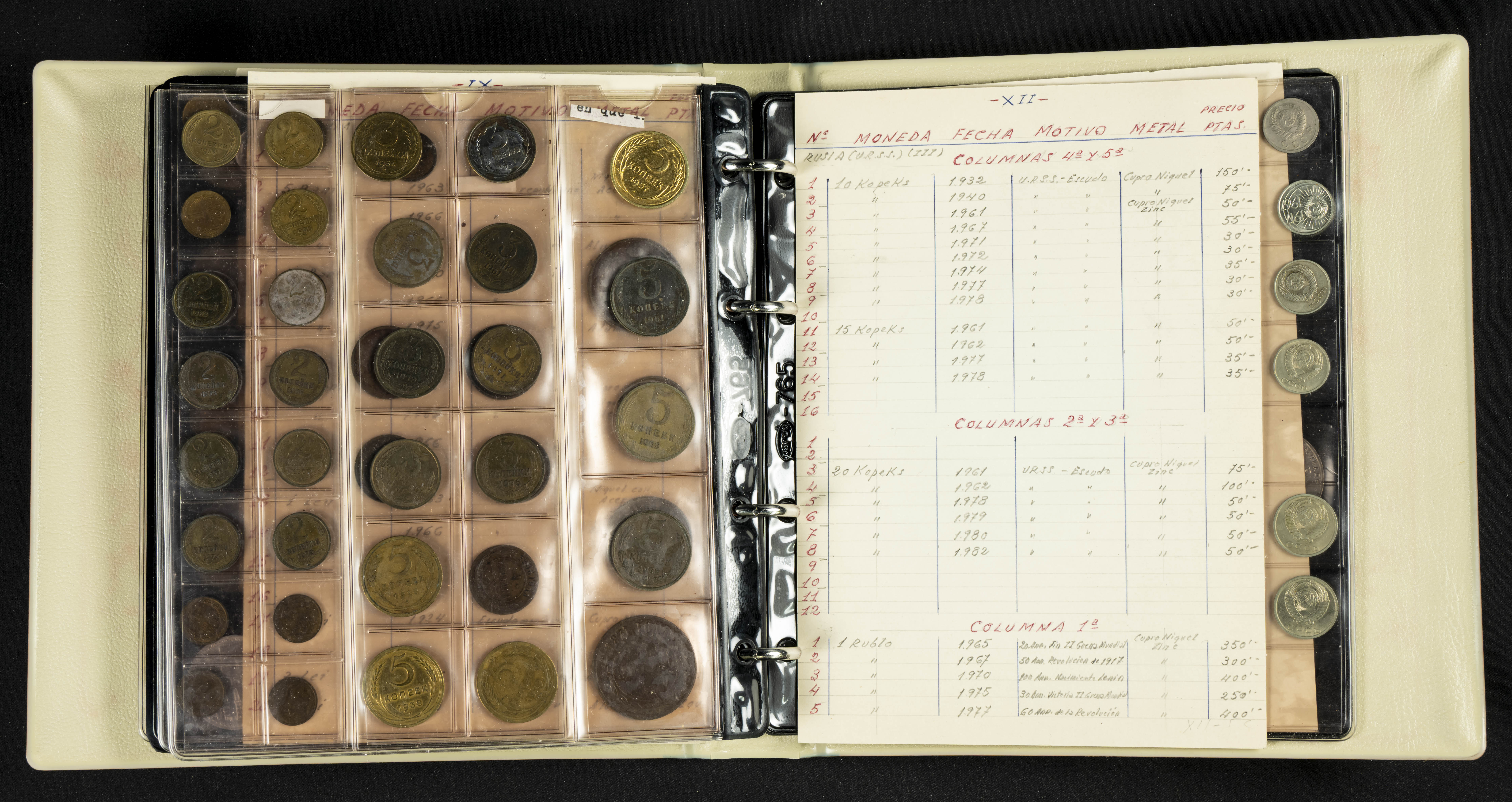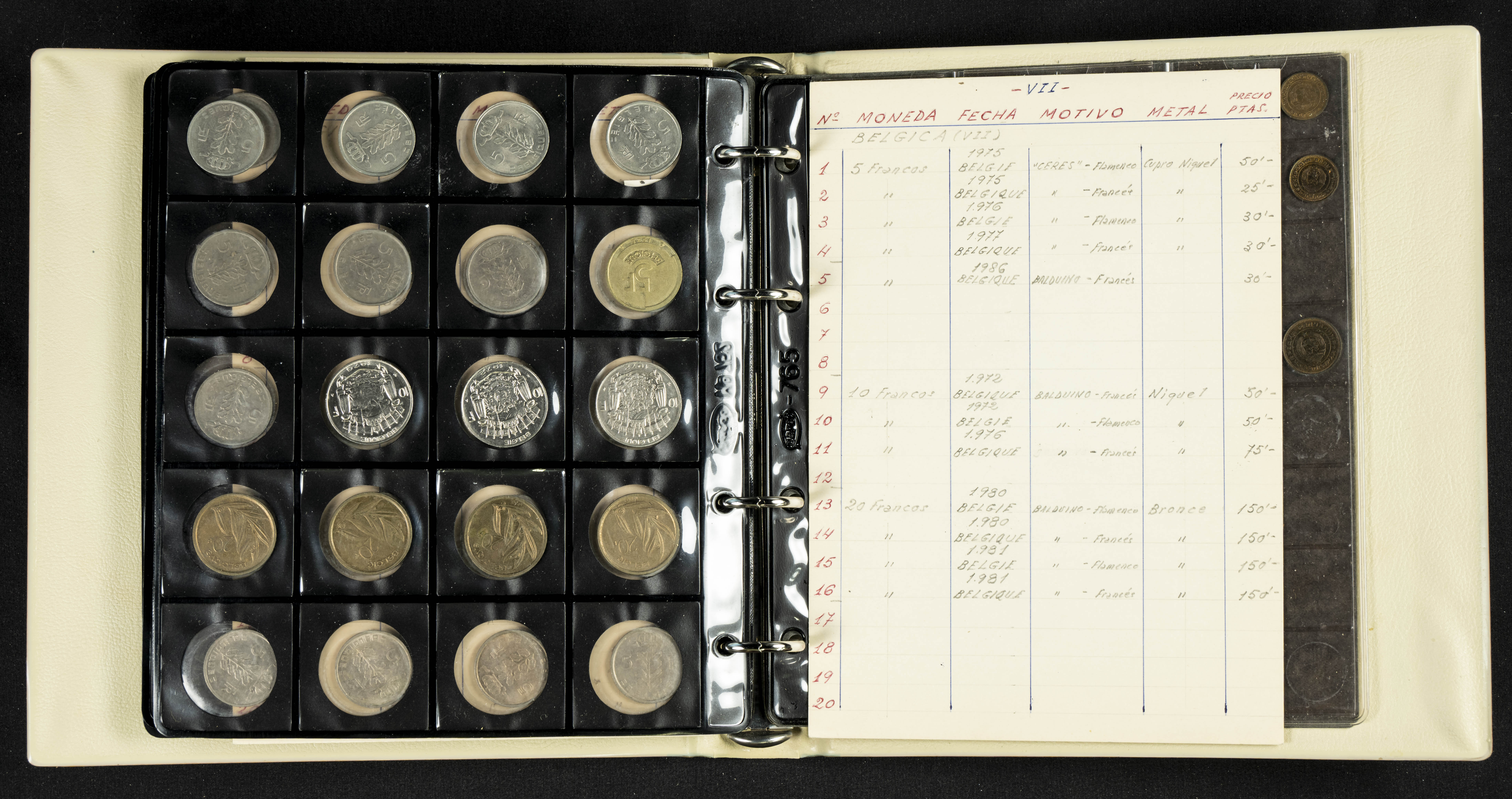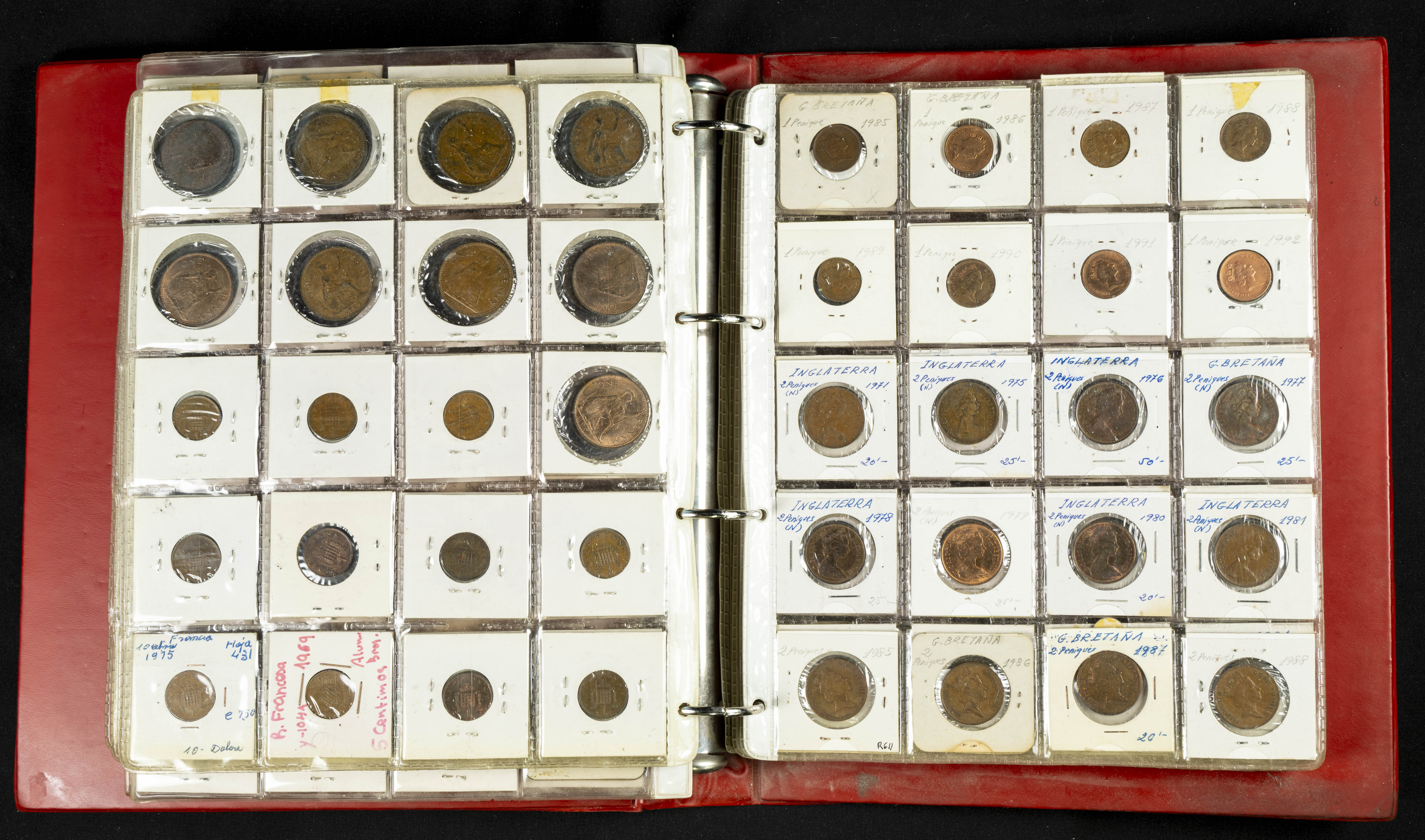 MONEDA MUNDIAL. Extraordinaria colección de moneda extranjera con un un número elevadísimo de piezas y expuestas en 16 álbumes. La colección está centrada, fundamentalmente, en el siglo XX, pero tiene también una interesante representación de moneda del siglo XIX. Gran cantidad de países, fechas, módulos, materiales (incluye un buen número de ejemplares en plata) representados y alguna reproducción. Diferentes estados de conservación. A EXAMINAR.