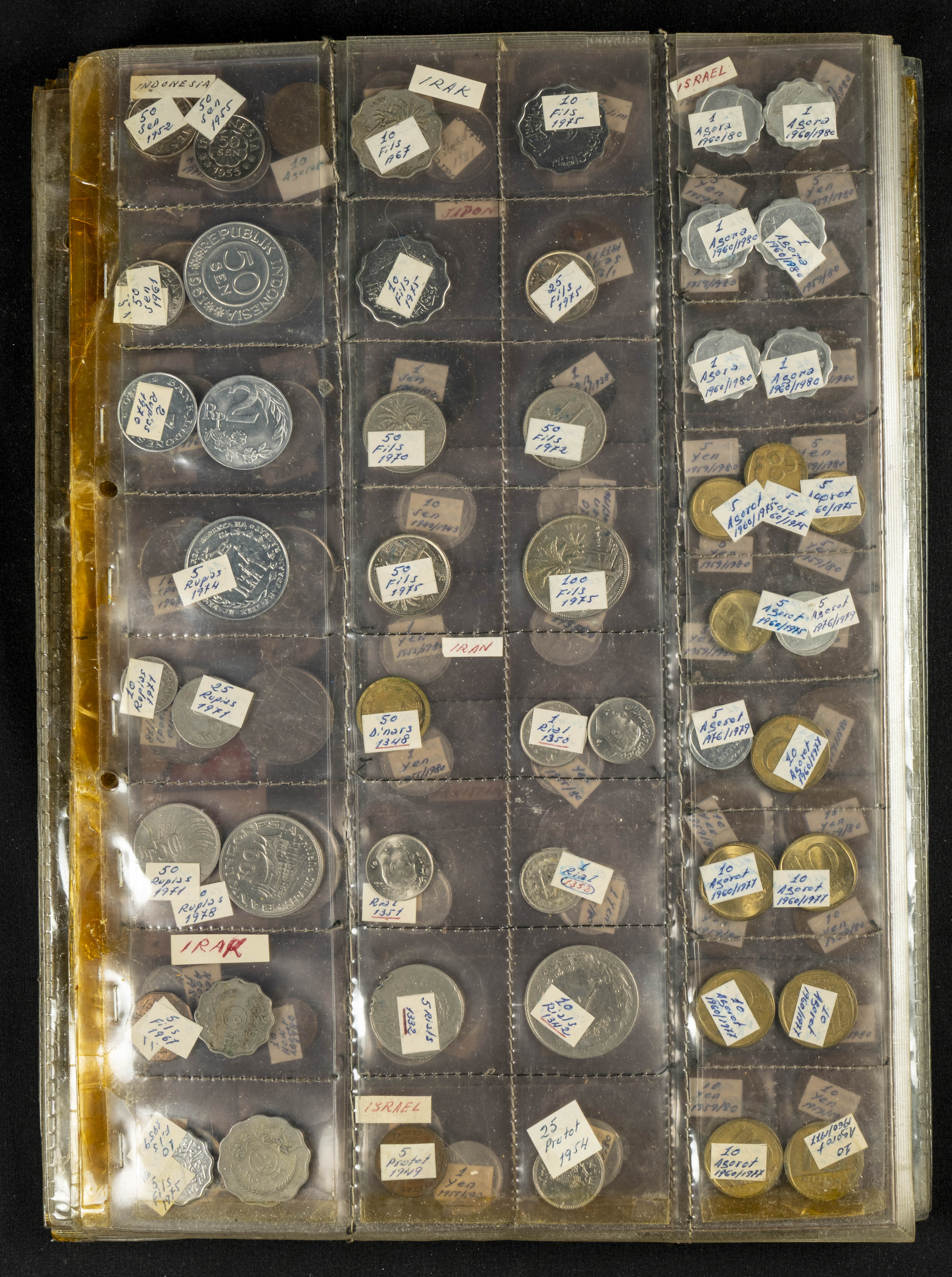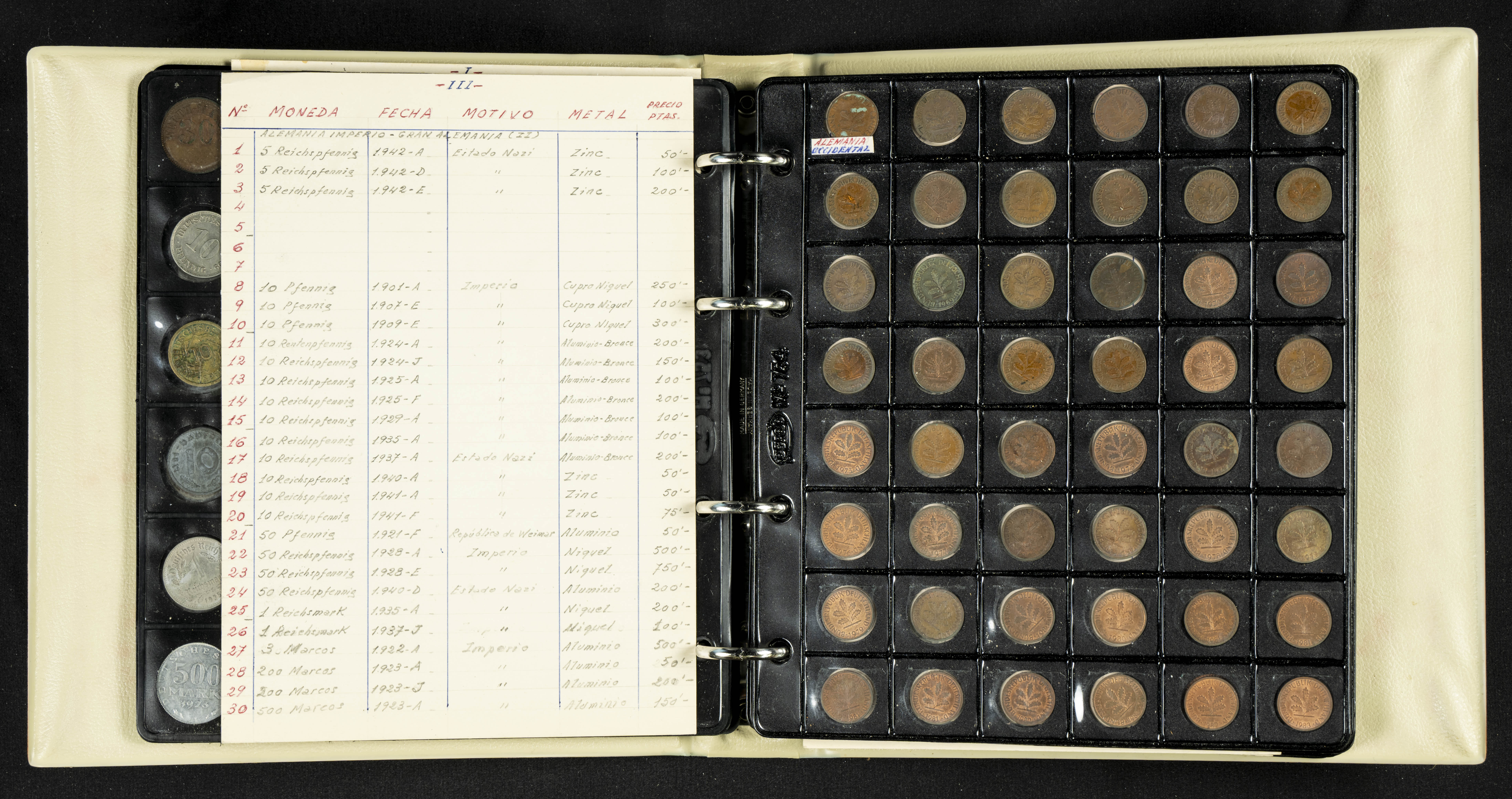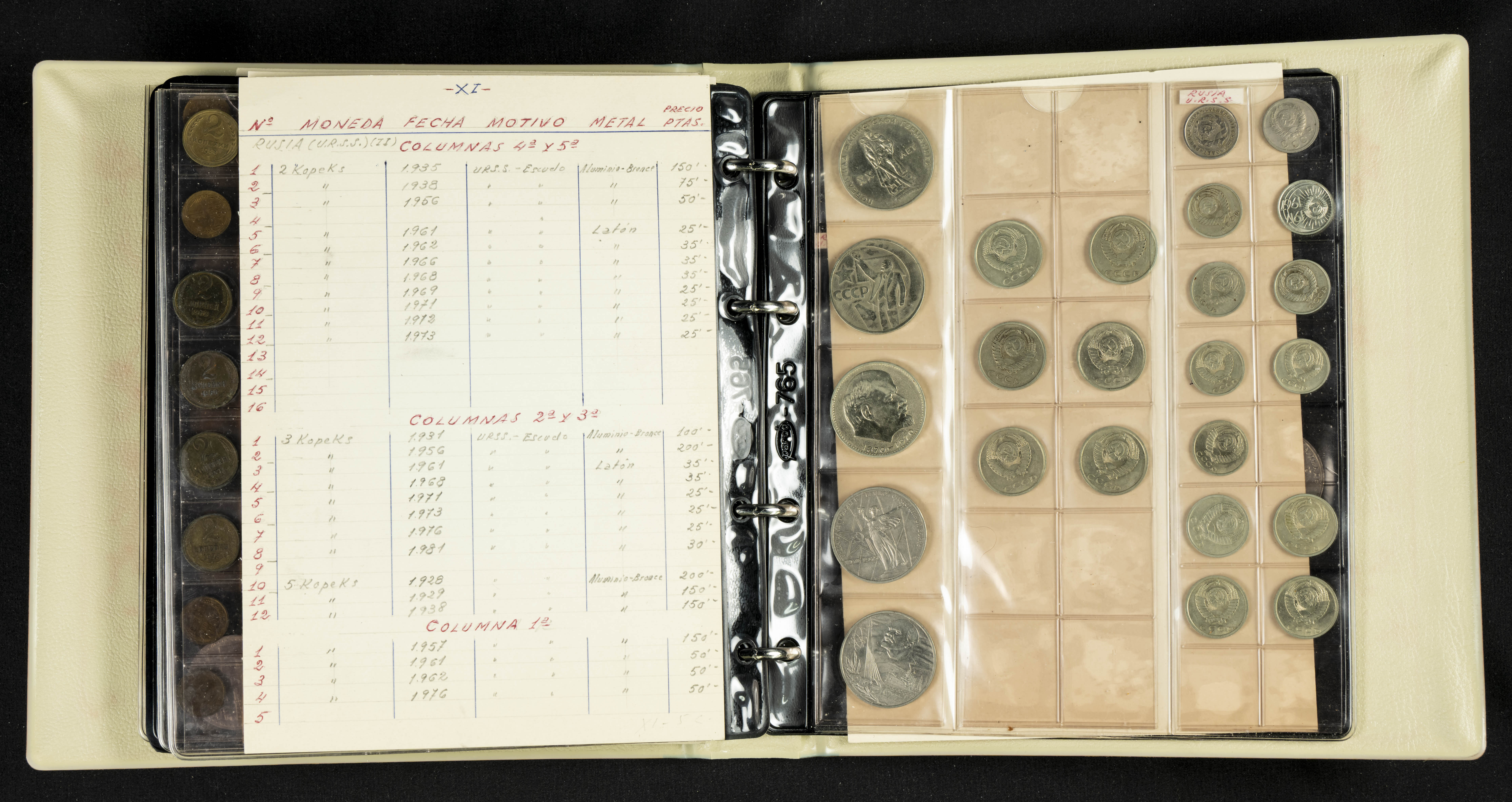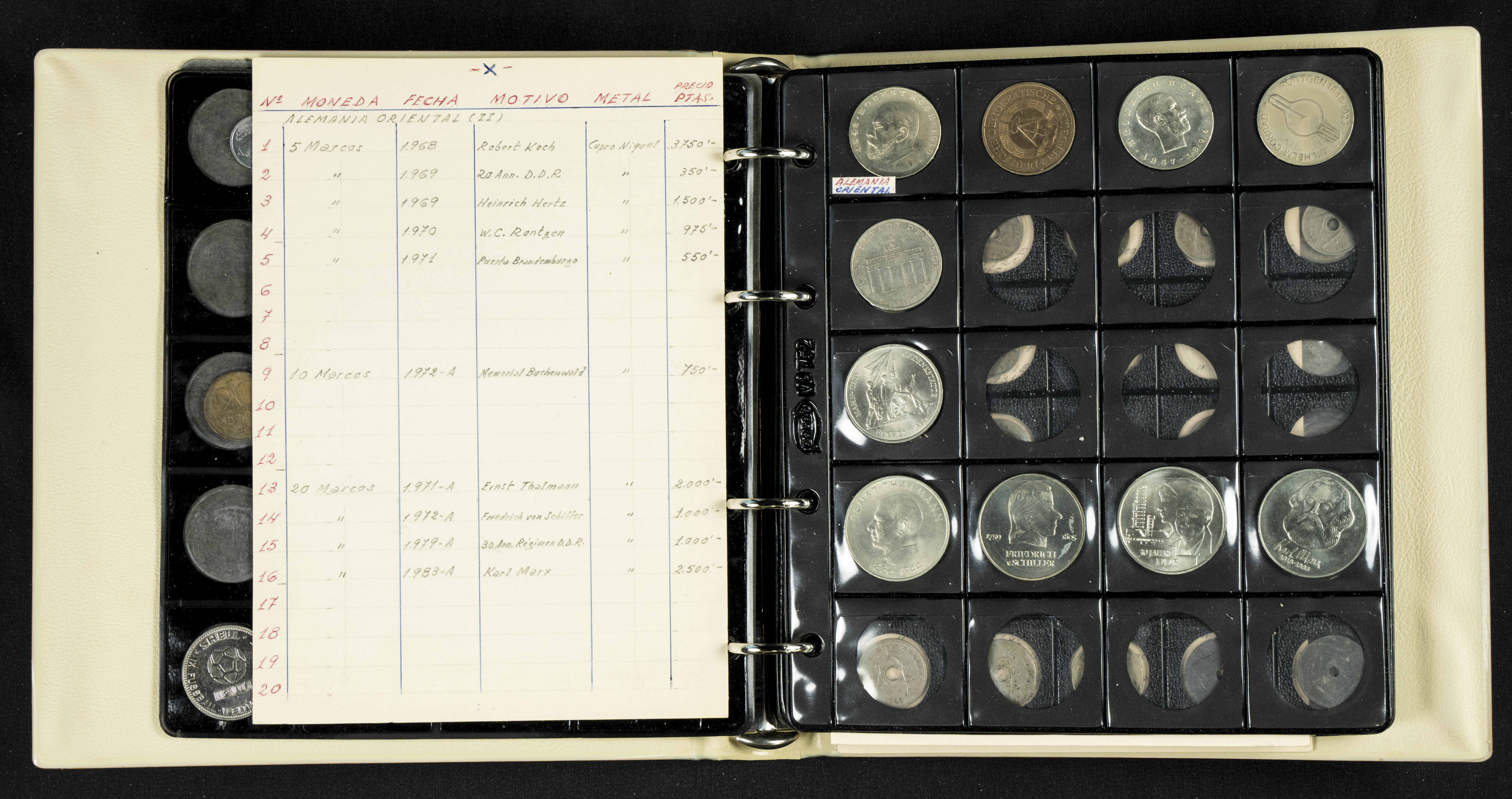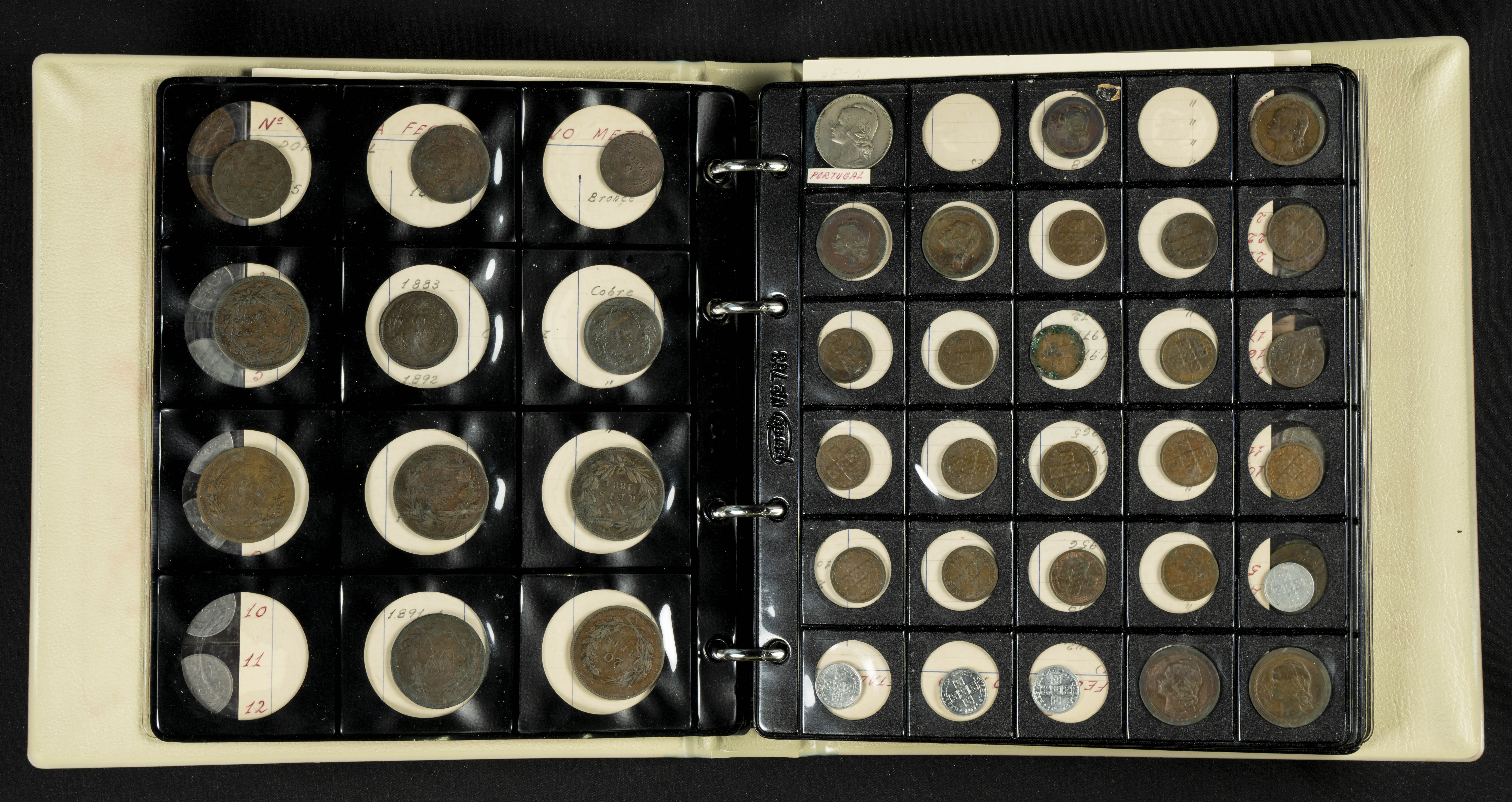 MONEDA MUNDIAL. Extraordinaria colección de moneda extranjera con un un número elevadísimo de piezas y expuestas en 16 álbumes. La colección está centrada, fundamentalmente, en el siglo XX, pero tiene también una interesante representación de moneda del siglo XIX. Gran cantidad de países, fechas, módulos, materiales (incluye un buen número de ejemplares en plata) representados y alguna reproducción. Diferentes estados de conservación. A EXAMINAR.