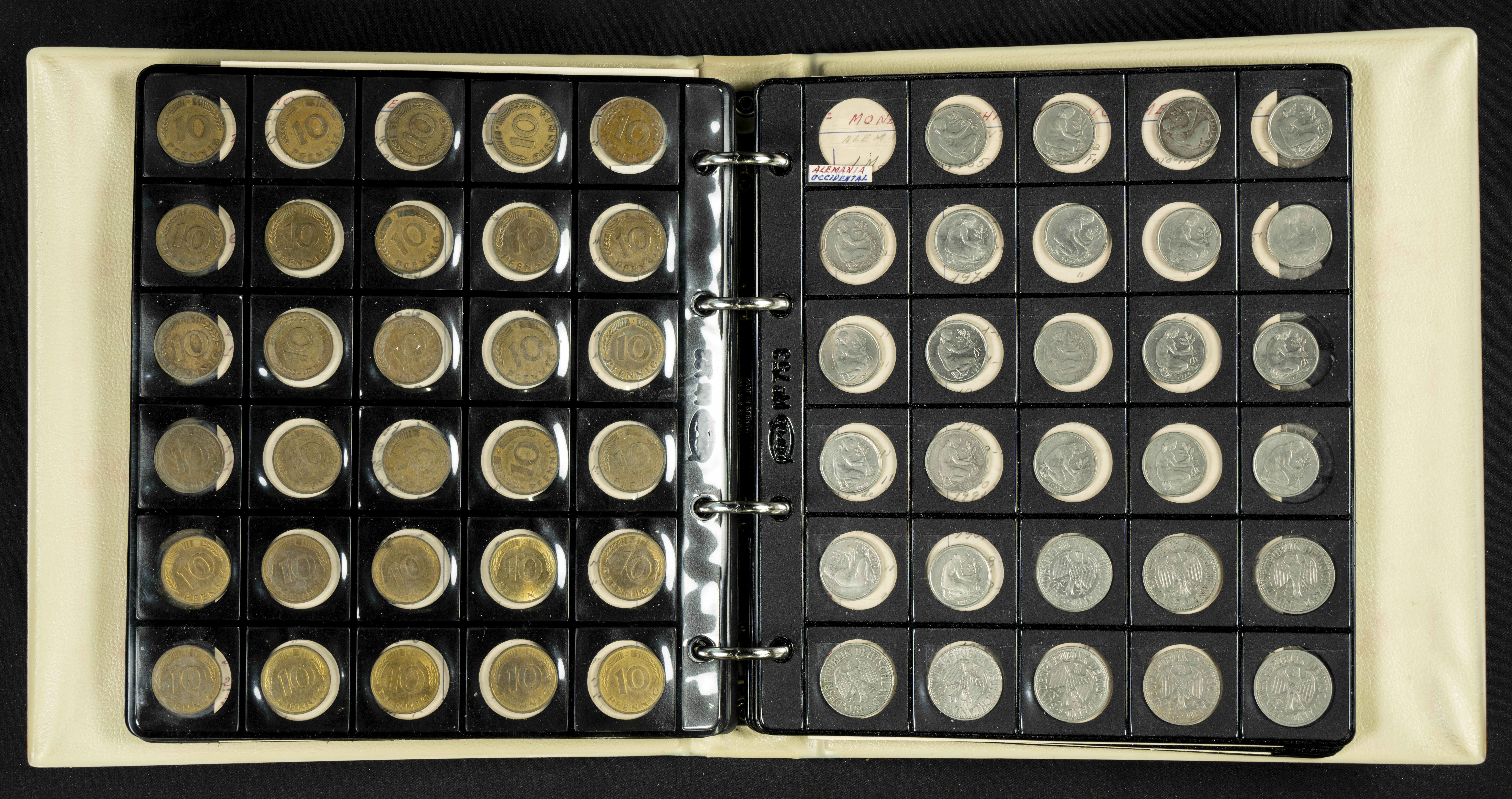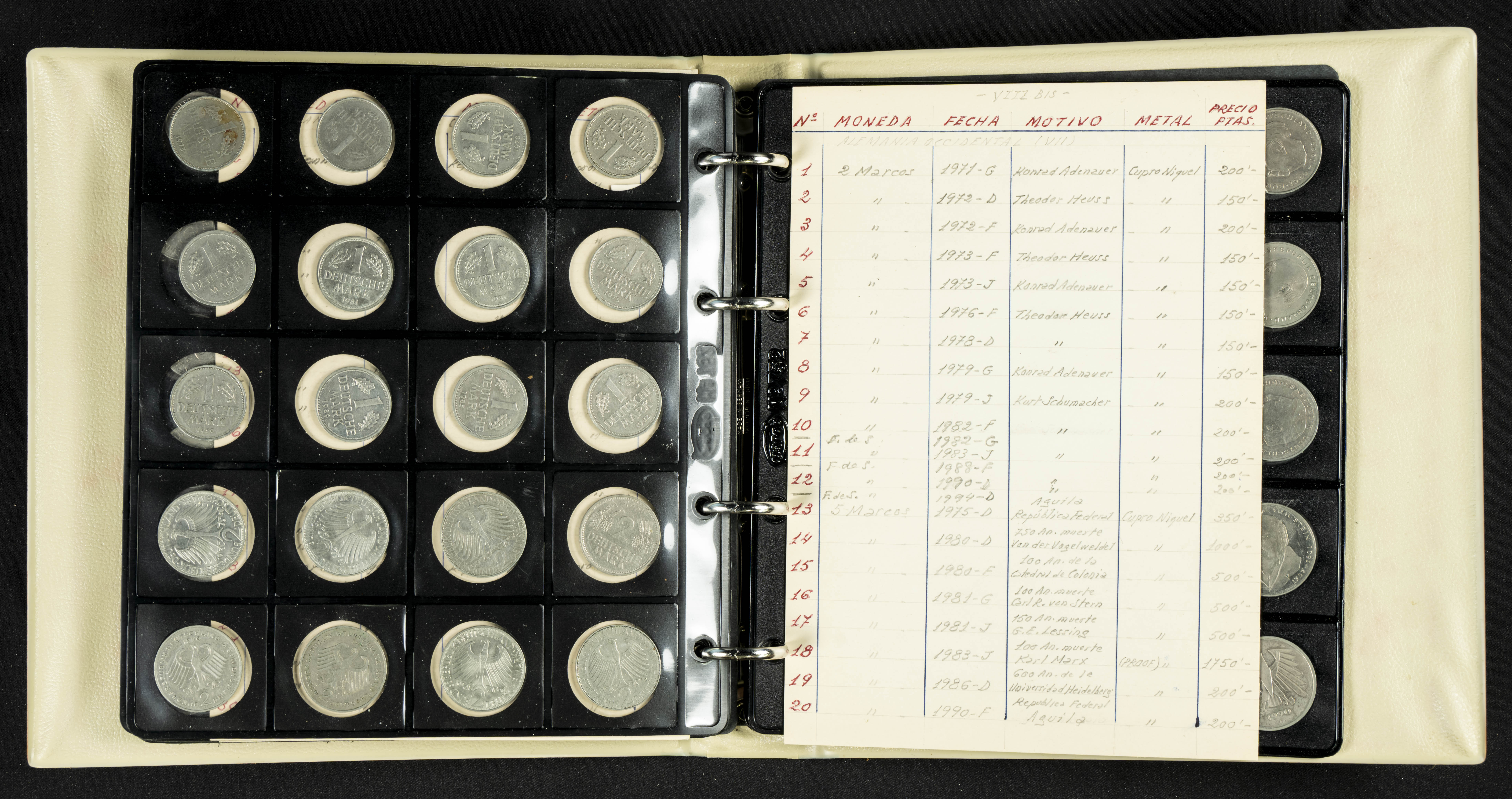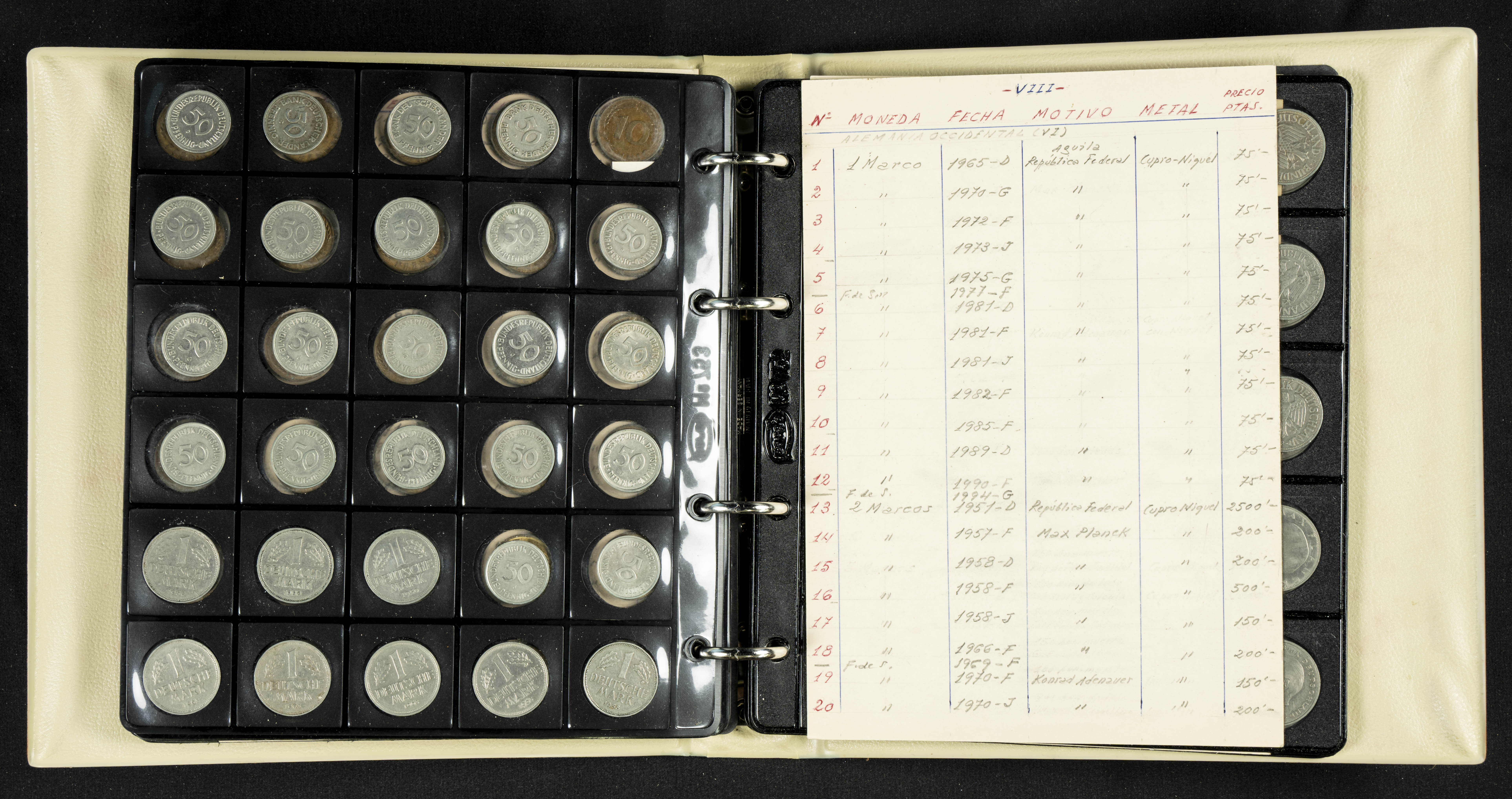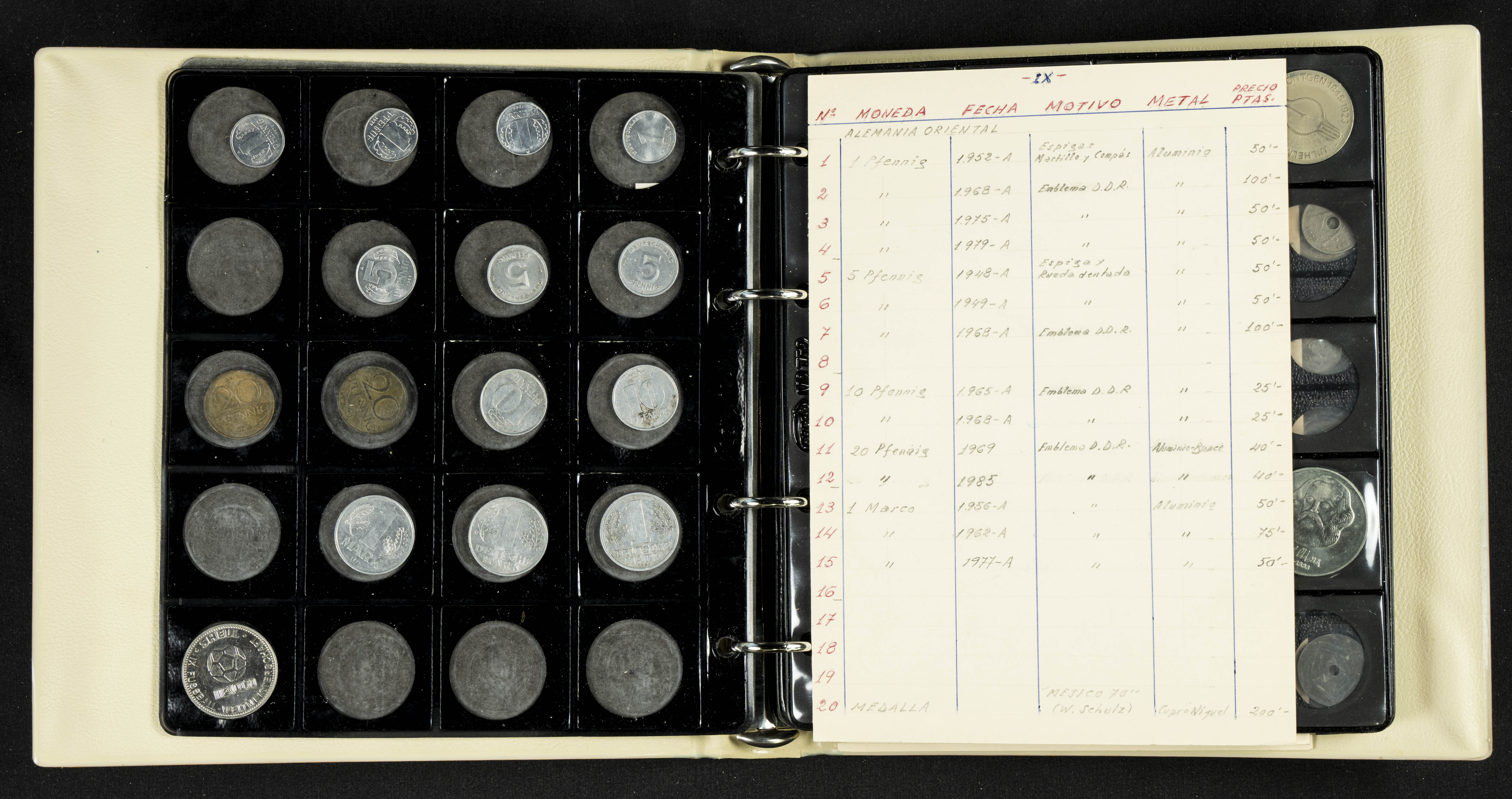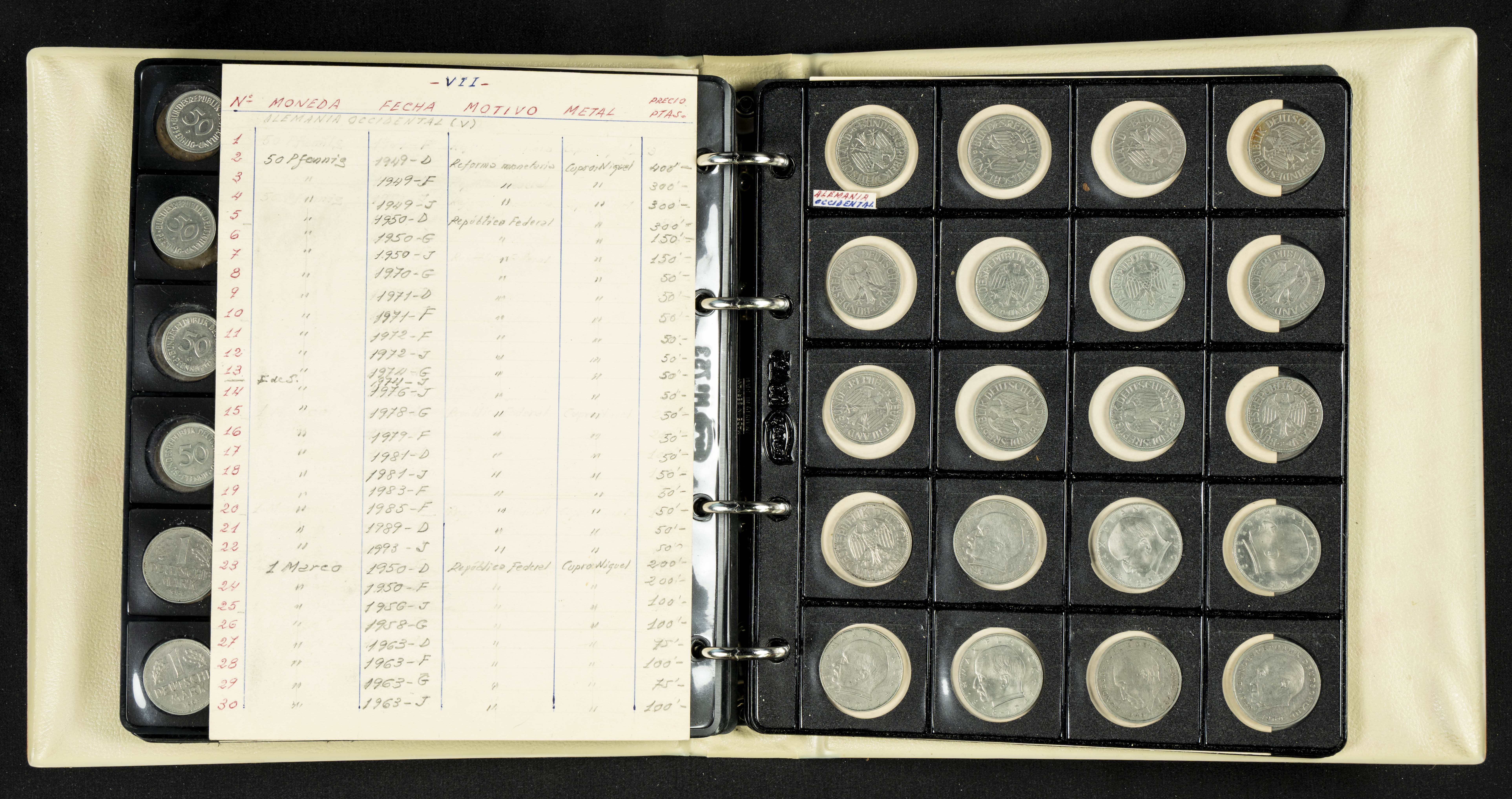 MONEDA MUNDIAL. Extraordinaria colección de moneda extranjera con un un número elevadísimo de piezas y expuestas en 16 álbumes. La colección está centrada, fundamentalmente, en el siglo XX, pero tiene también una interesante representación de moneda del siglo XIX. Gran cantidad de países, fechas, módulos, materiales (incluye un buen número de ejemplares en plata) representados y alguna reproducción. Diferentes estados de conservación. A EXAMINAR.