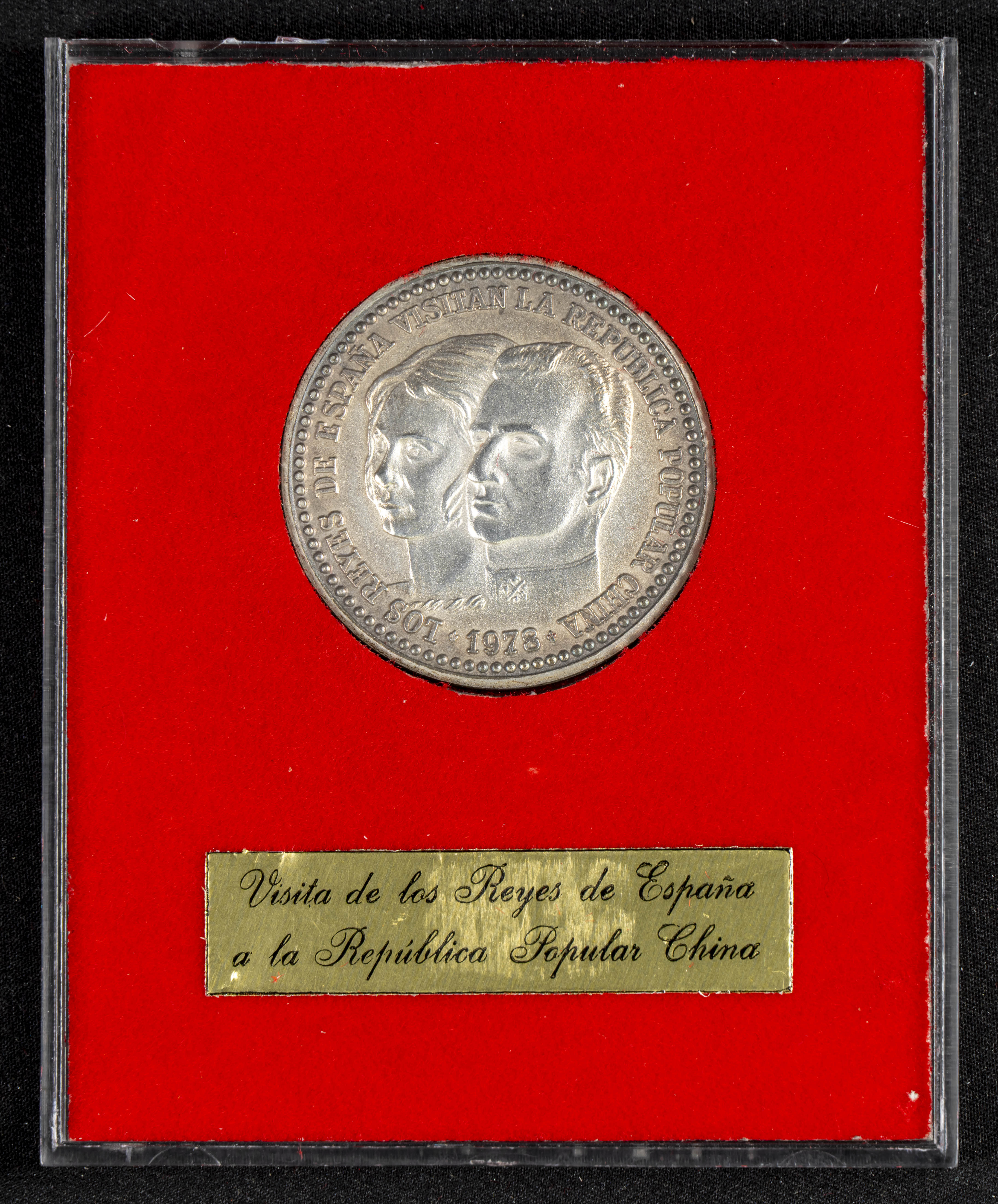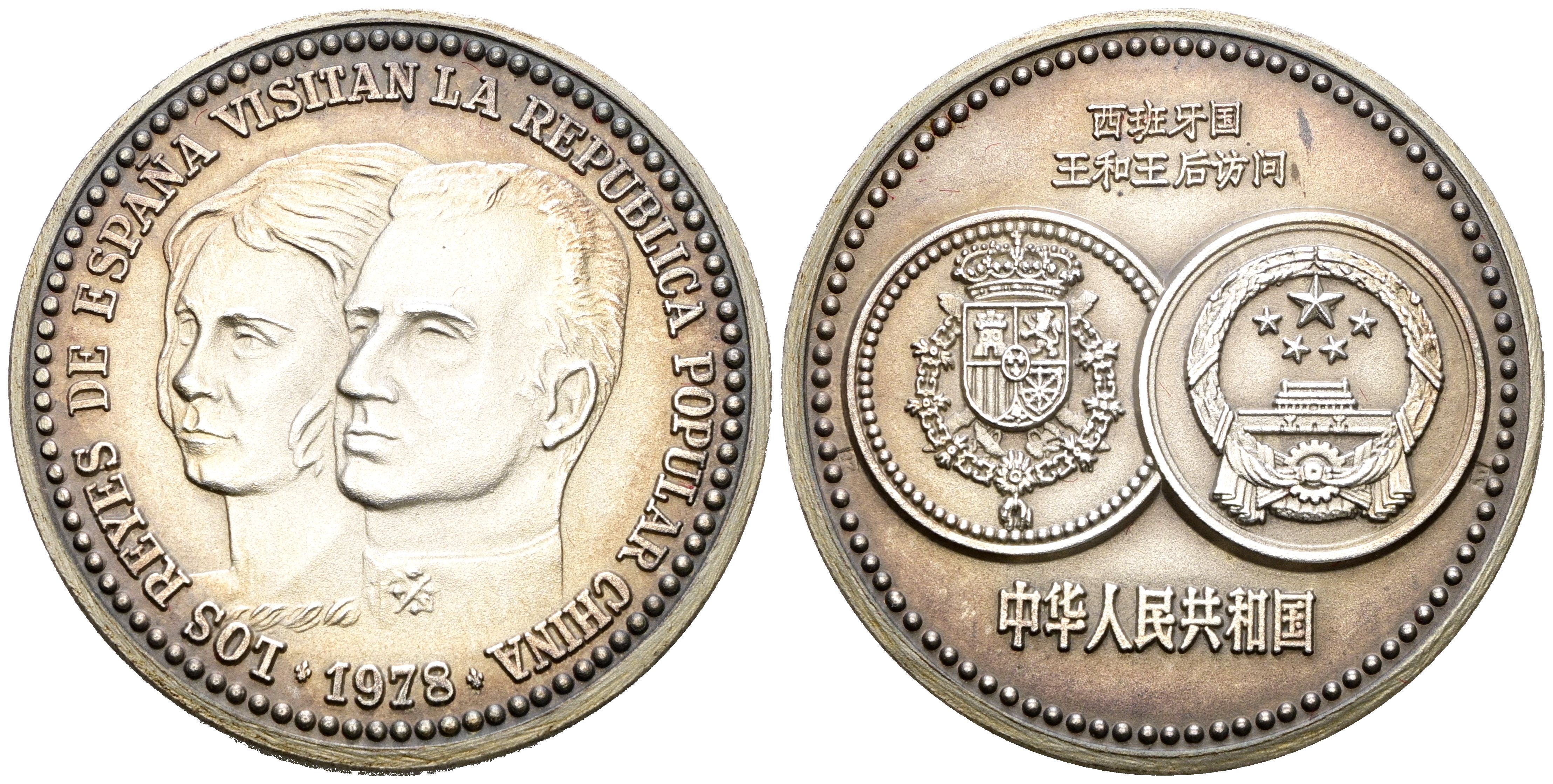 ESPAÑA. Visita de los Reyes de España a China (Ar. 35,00g/41mm). 1978. Plata de 0.915 milésimas. SC. Incluye estuche original.