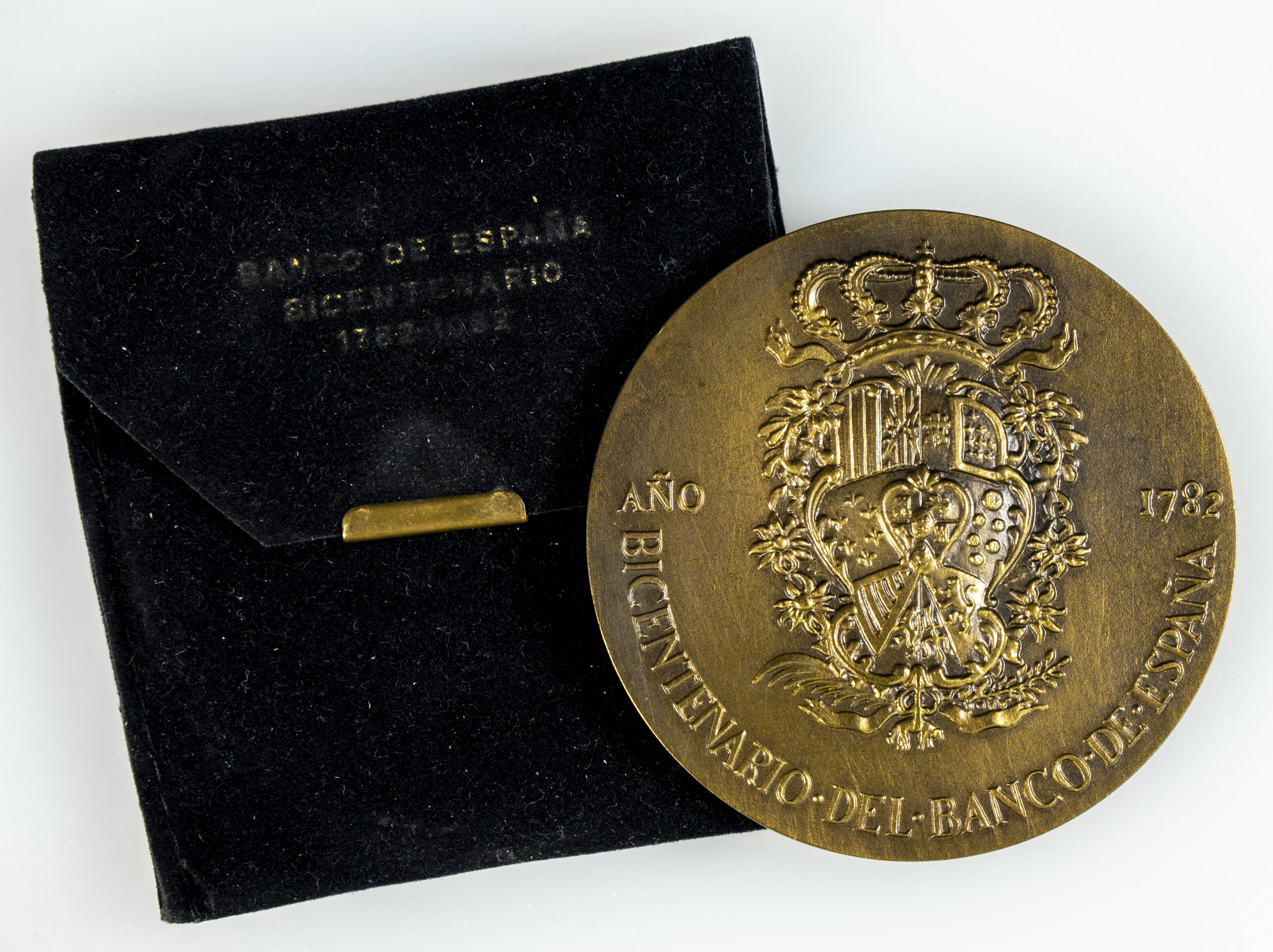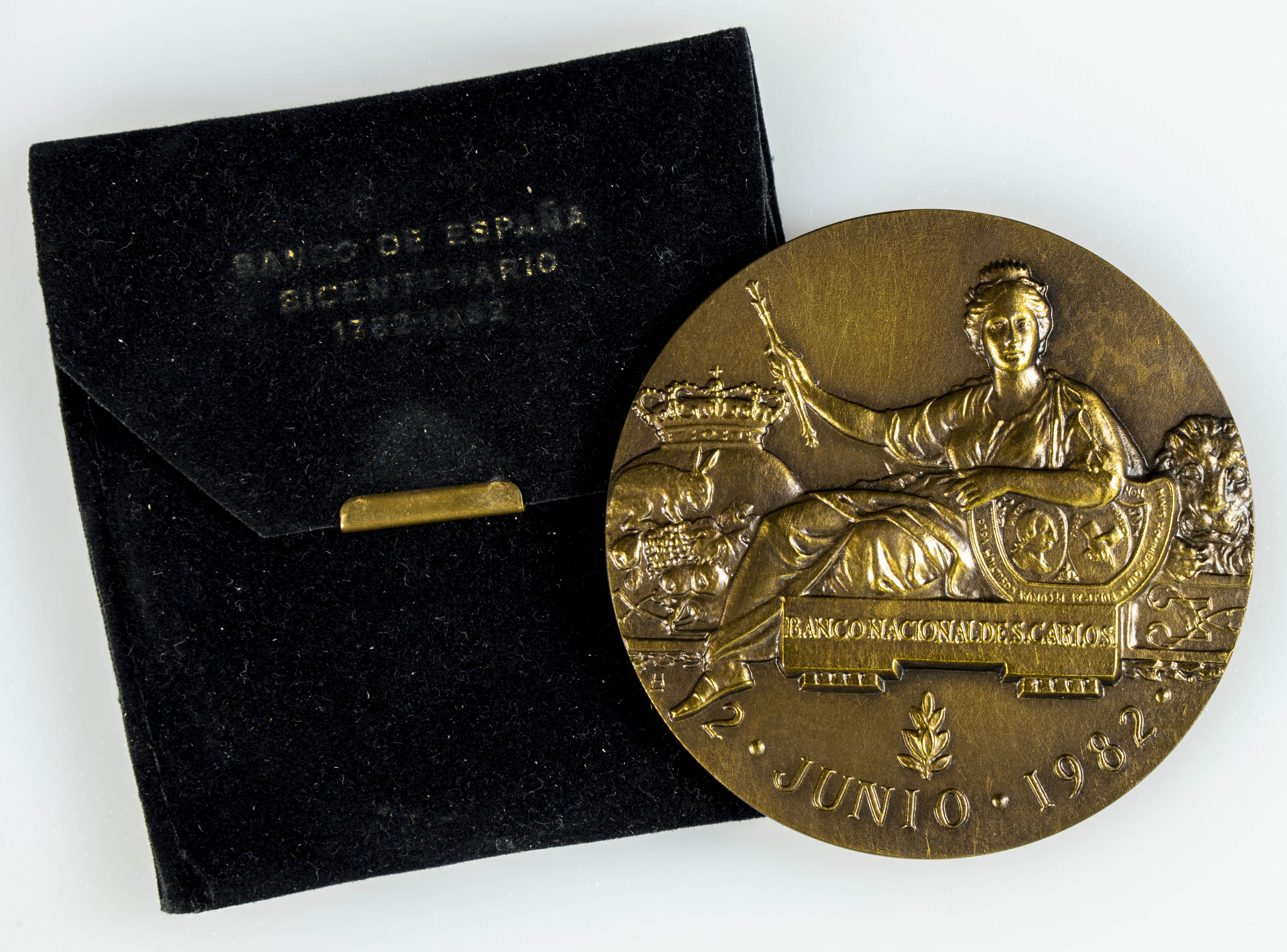 ESPAÑA. Bicentenario del Banco de España. (Ae. 175,30g/70mm). 1982. FNMT. Firma: LH. SC. Incluye funda de terciopelo original.