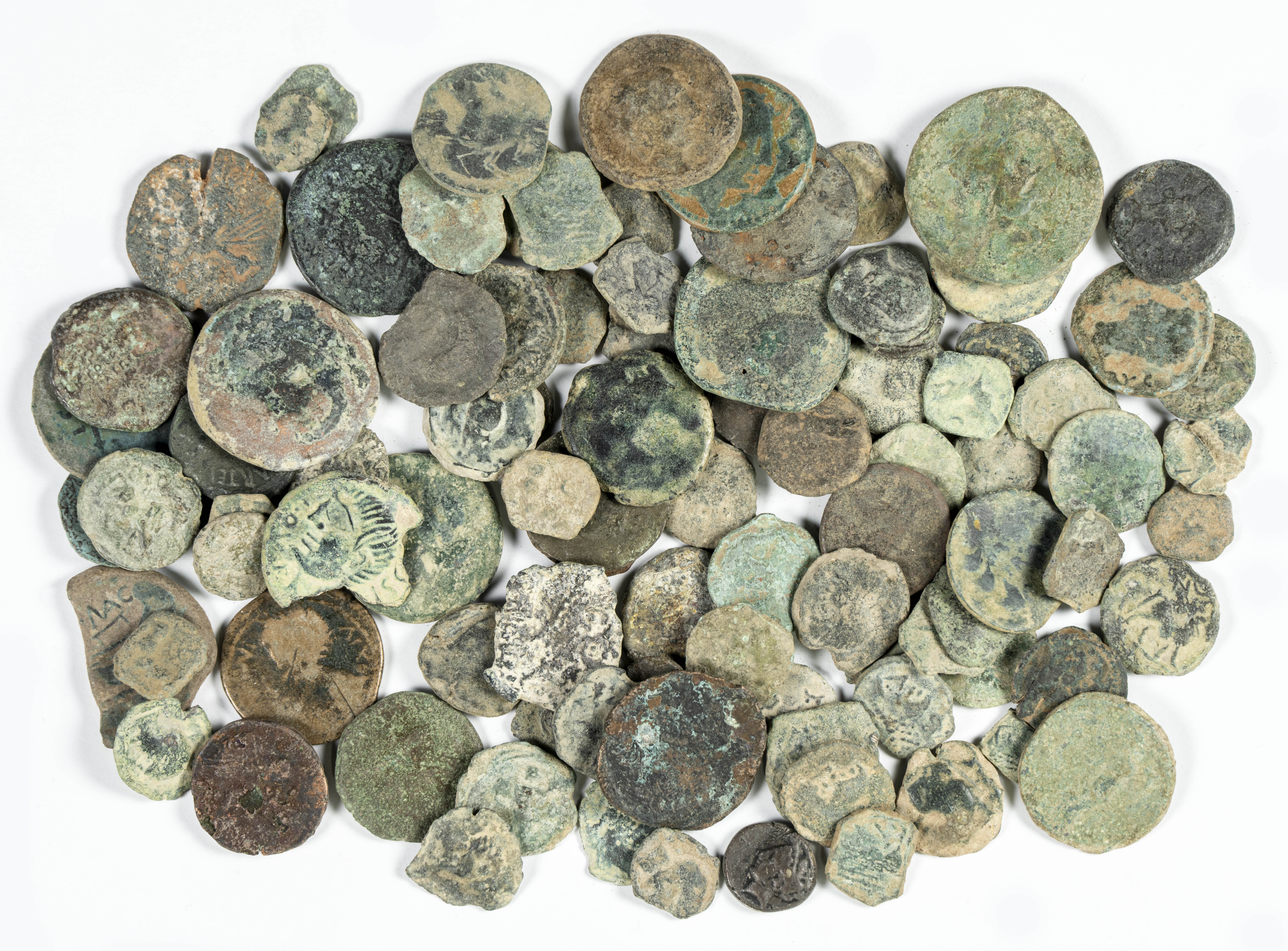 HISPANIA ANTIGUA. Interesantísimo conjunto formado por 100 bronces de diferentes cecas como: Cese, Osset, Searo, Malaca, Carmo, Carteia, Iulia Traducta, Colonia Patricia y Cástulo entre otras. Diferentes módulos, pesos y estados de conservación. A EXAMINAR.