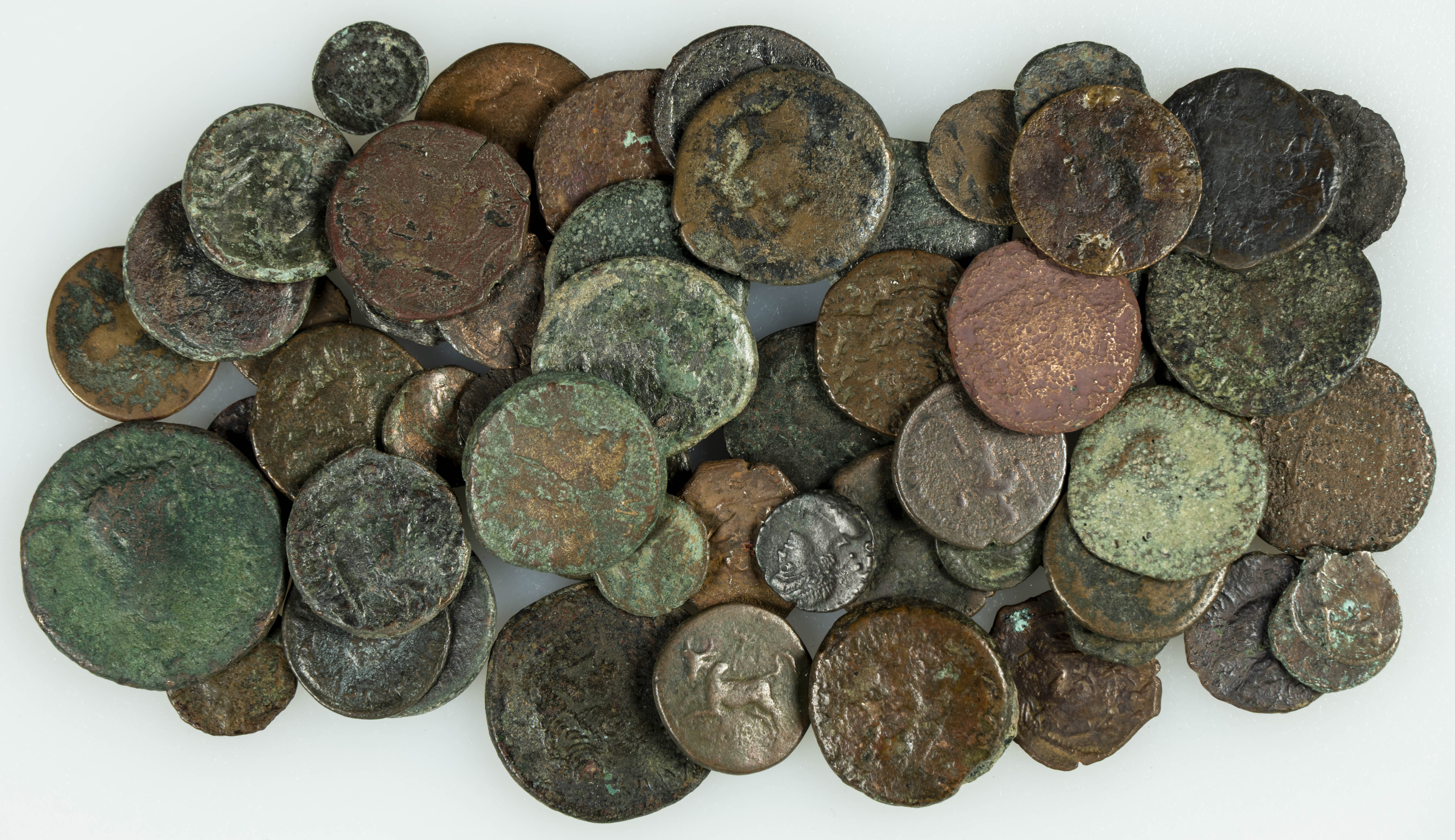 HISPANIA ANTIGUA e IMPERIO ROMANO. Conjunto de más de 60 bronces de ambos periodos históricos con variedad de módulos. Diferentes estados de conservación. A EXAMINAR.