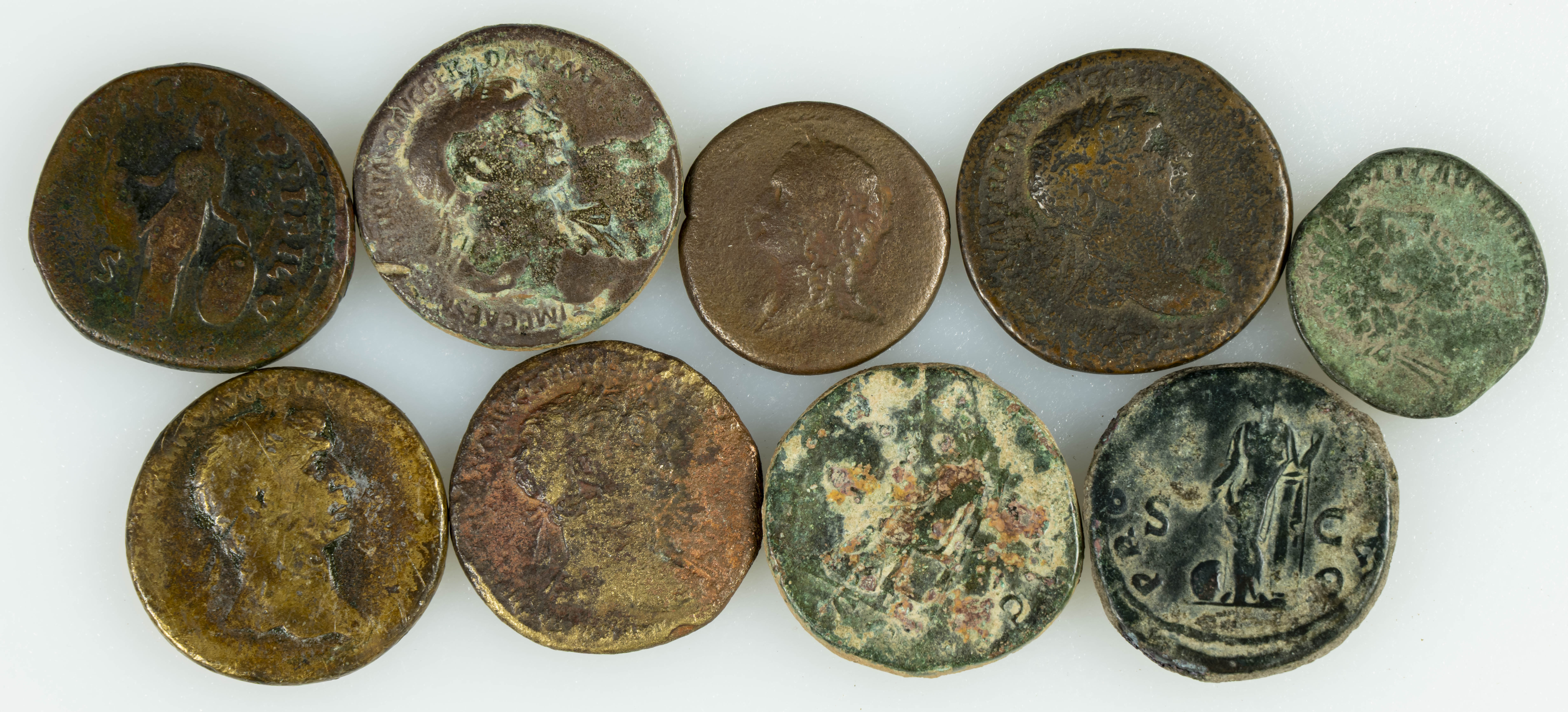 IMPERIO ROMANO. Interesante conjunto de 9 sestercios alto imperiales con diferentes emperadores así como estados de conservación. A EXAMINAR.
