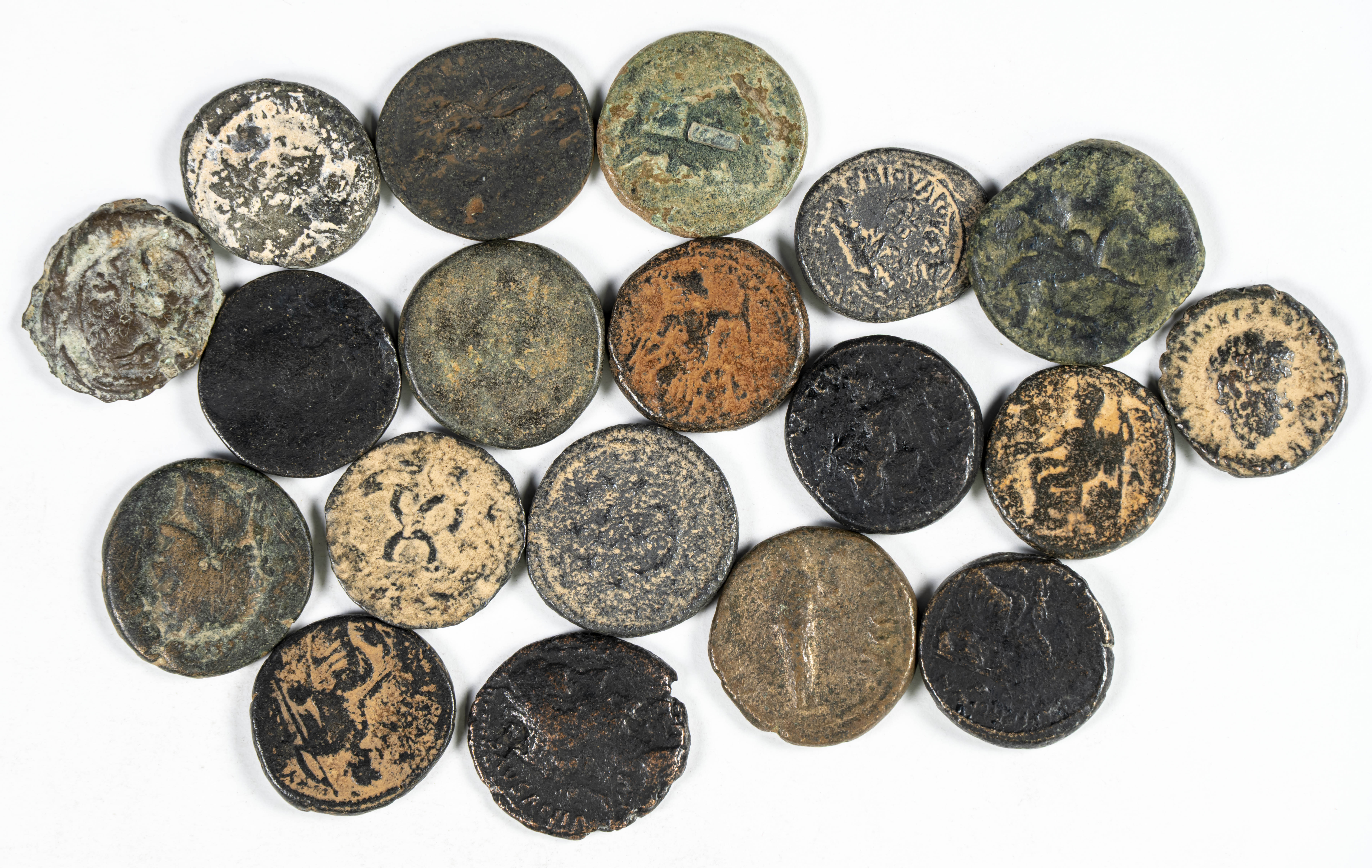 IMPERIO ROMANO. Interesante cojunto formado por 19 bronces variados. A destacar un amplia variedad de emperadores y reversos. Diferentes módulos, medidas y estados de conservación. A EXAMINAR.