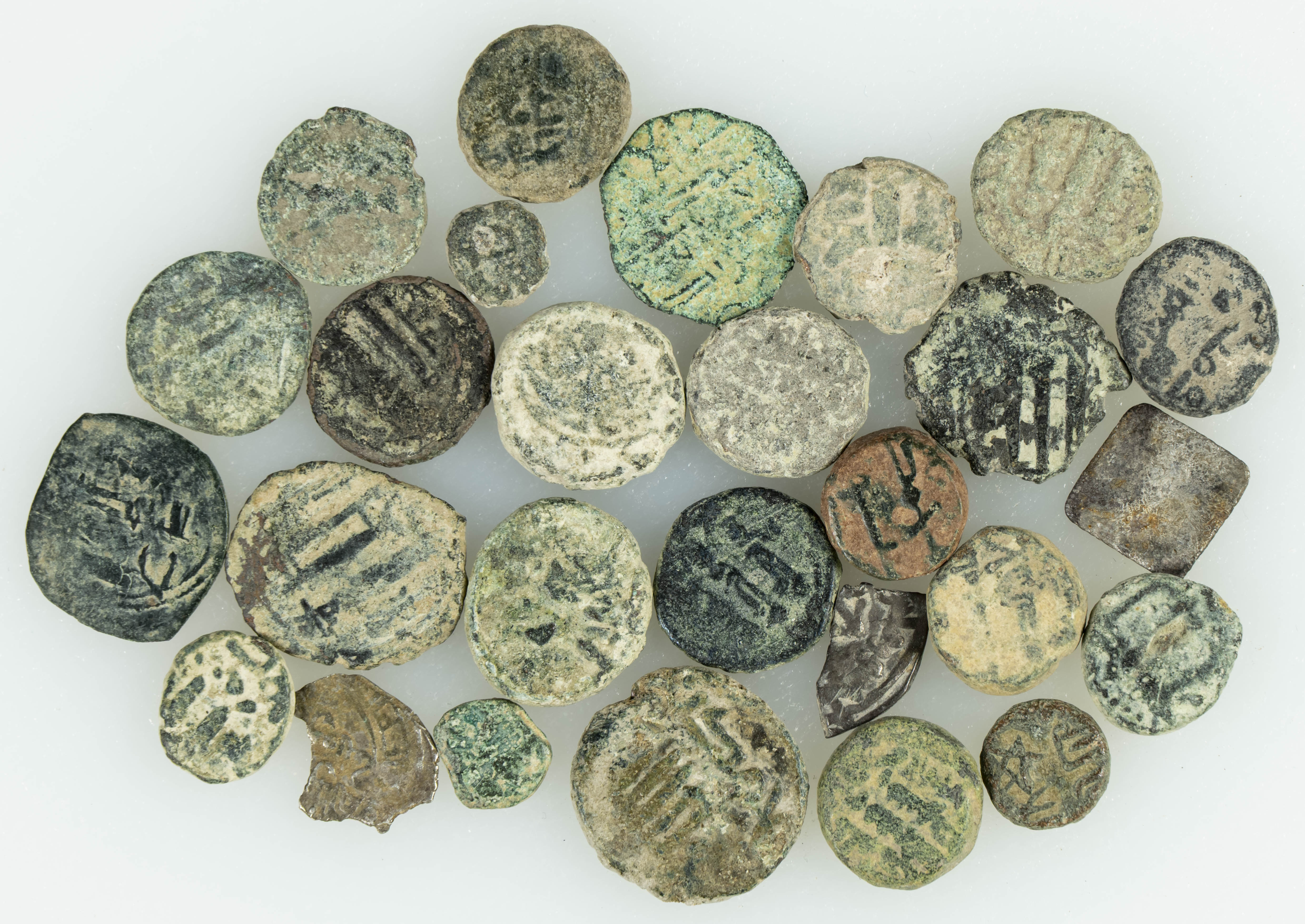 HISPANO ÁRABE. Interesante conjunto formado por 27 feluses y fracciones de dirham, principalmente del periodo de Gobernadores. Diferentes módulos, pesos y estados de conservación. A EXAMINAR.