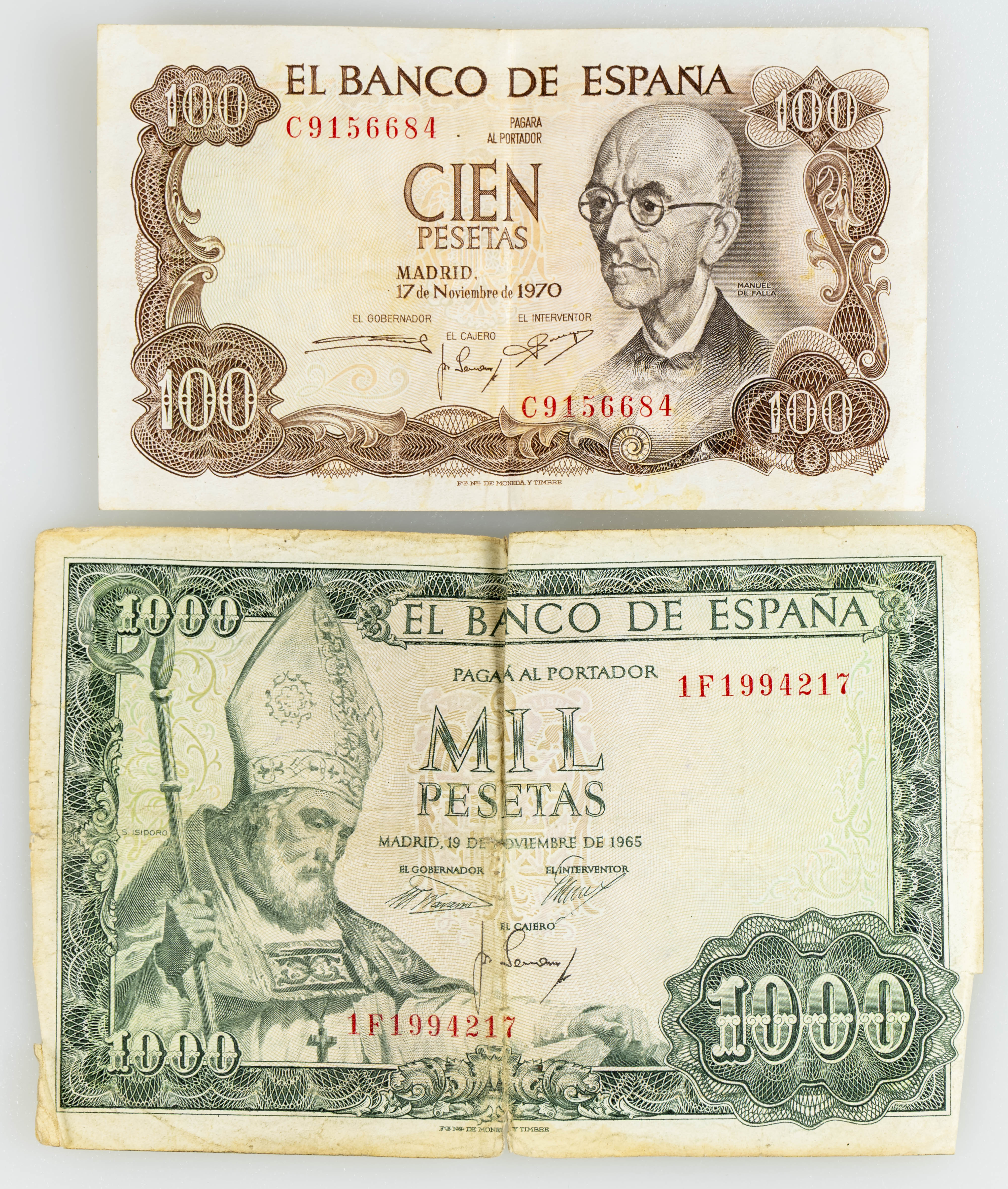 Conjunto de cientos de monedas y alguna medalla tanto españolas como extranjeras donde destaca la presencia de algunos ejemplares en plata. Incluye un par de billetes y un estuche conmemorativo. Diferentes estados de conservación. A EXAMINAR.