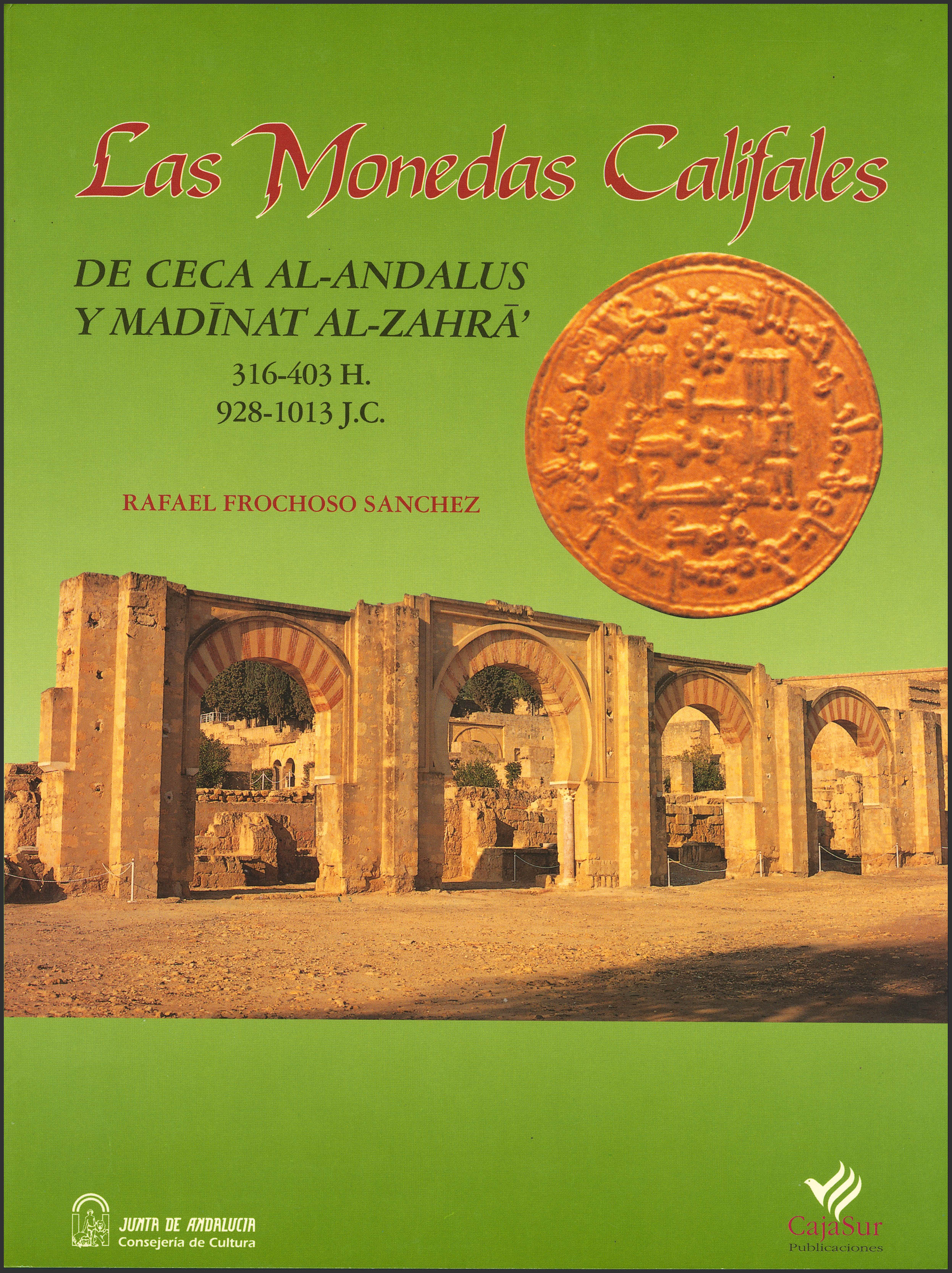 'Las Monedas Califales de ceca al-Andalus y Madinat al-Zahara''. Rafael Frochoso Sánchez. Córdoba, 1996. Nuevo a estrenar. Extraordinaria publicación considerada el monográfico por excelencia sobre la moneda califal, a traves del cual se catalogan los diferentes tipos, variantes y sobre todos los miles de adorno y sus combinaciones. Este catálogo lleva agotado más de 20 años.