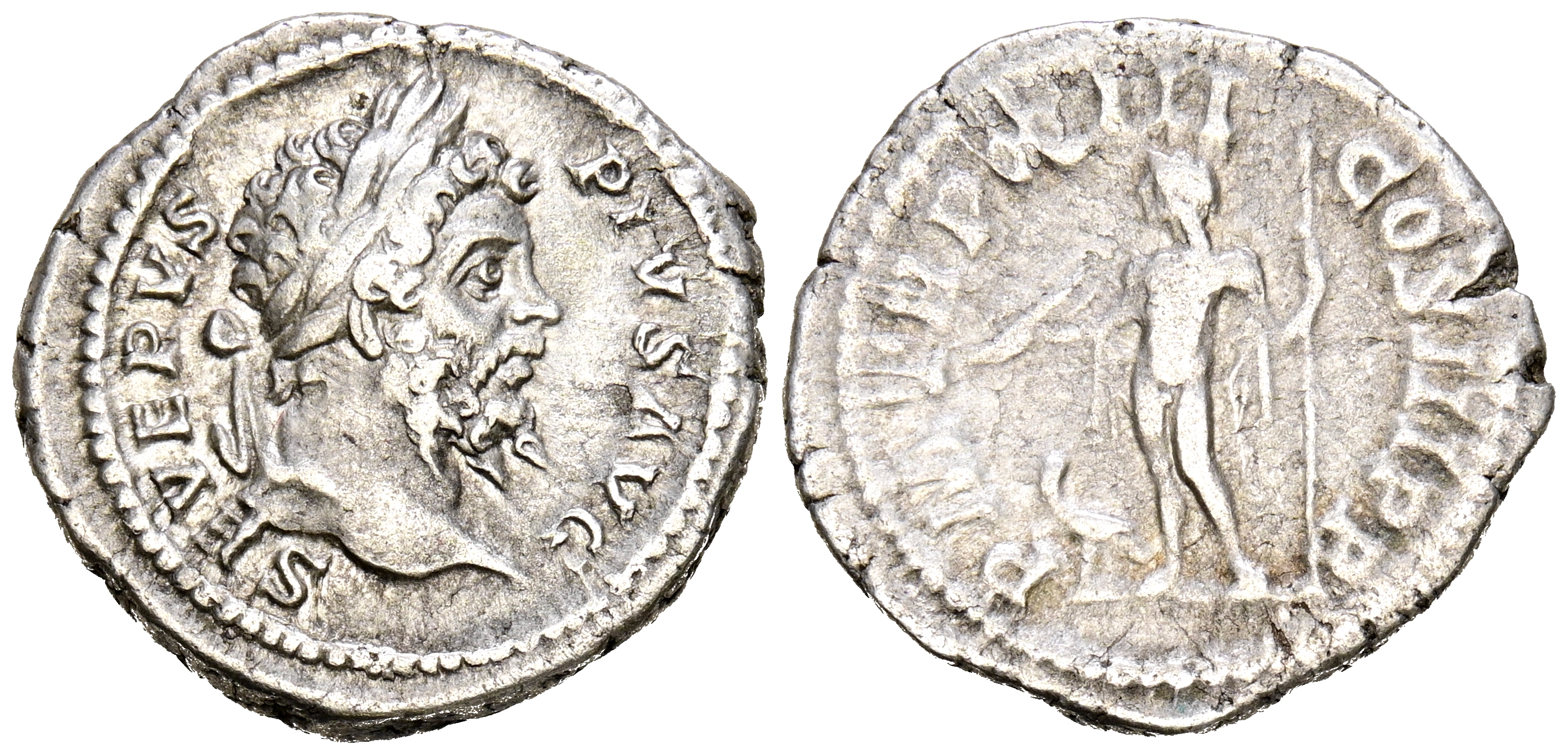 SEPTIMIO SEVERO. Denario. (Ar. 3,31g/20mm). 205 d.C. Roma. (RIC 234). Anv: Busto laureado de Septimio Severo a derecha, alrededor leyenda: SEVERVS PIVS AVG. Rev: Júpiter estante a izquierda portando cetro y haz de rayos, a sus pies AGUILA, alrededor leyenda: P M TR P XII COS III P P. MBC+/MBC.