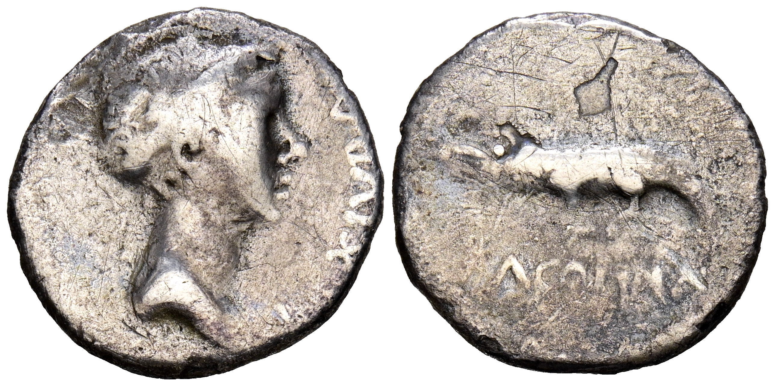REYES DE MAURITANIA, Juba II con Cleopatra Selene. Denario. (Ar. 2,81g/18mm). 16-17 d.C. Cesarea. (MAA 104; Mazard 340; SNG Copenhagen 548). Anv: Cabeza diademada de Juba II a derecha, alrededor leyenda: REX IVBA. Rev: Cocodrilo a izquierda, debajo leyenda: ΒΑCIΛΙCCA. BC-. Rara.