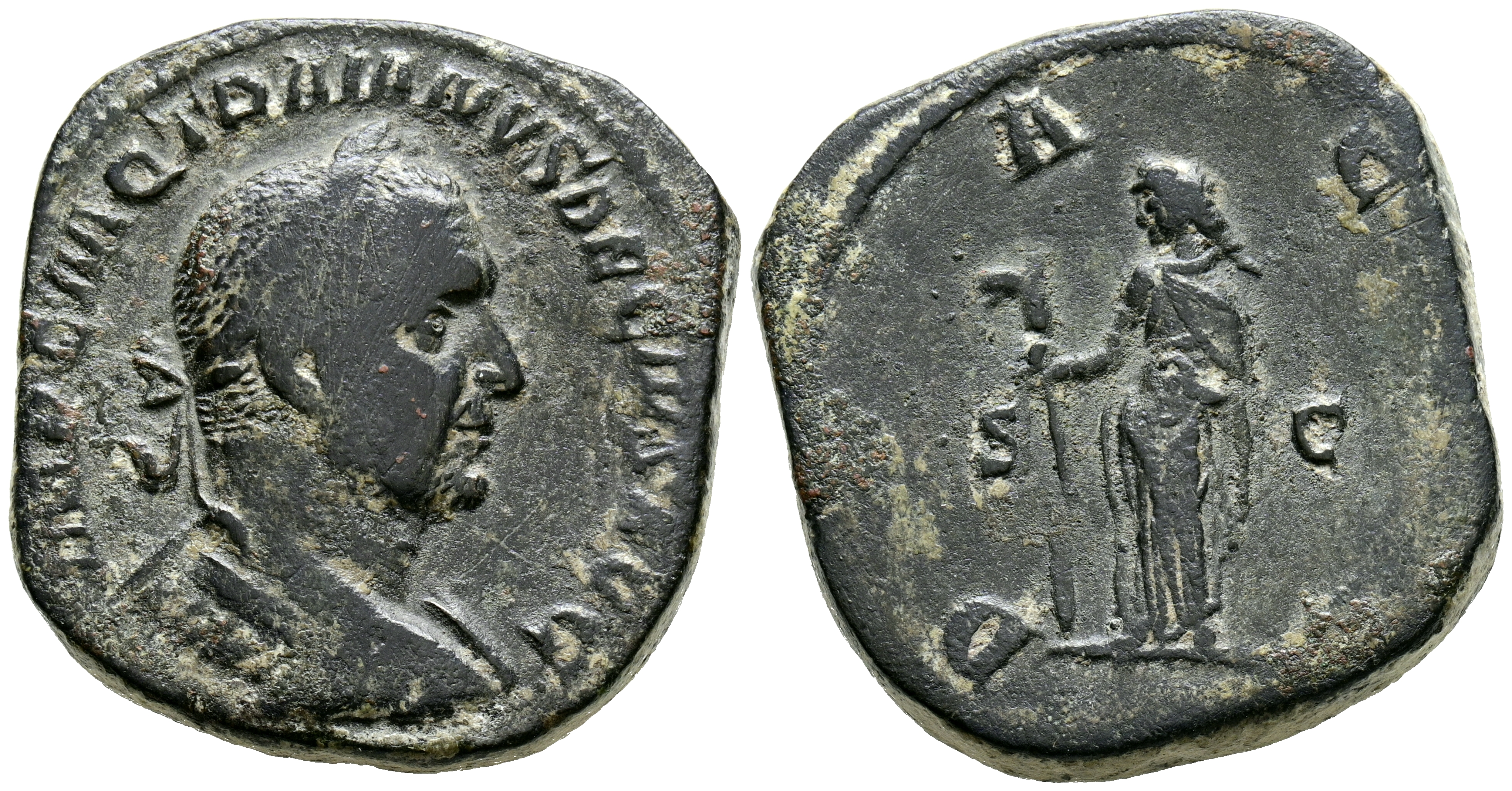 TRAJANO DECIO. Sestercio. (Ae. 23,22g/31mm). 249-251 d.C. Roma. (RIC 112a). Anv: Busto laureado, drapeado y con coraza de Trajano Decio a derecha, alrededor leyenda: IMP C M Q TRAINANVS DECIVS AVG. Rev: Dacia estante a izquierda portando cetro con cabeza de, entre: S-C, alrededor leyenda: DACIA. MBC-.