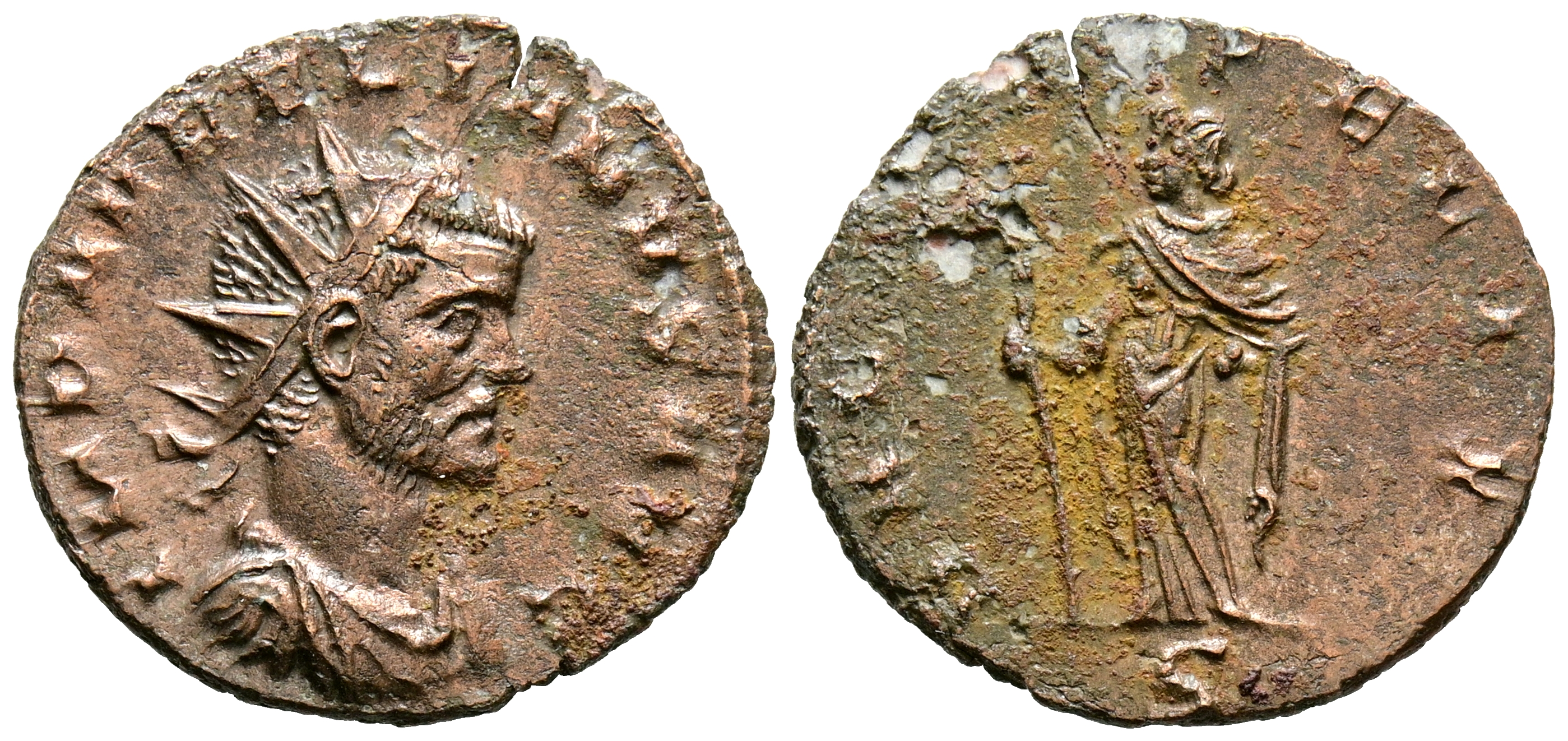 AURELIANO. Antoniniano. (Ae. 1,97g/19mm.) 270-275 d.C. Mediolanum. (RIC 1384). Anv: Busto radiado, drapeado y acorazado de Aureliano a derecha, alrededor leyenda: IMP AVRELIANVS AVG. Rev: Dacia estante a izuierda sosteniendo baston coronado por cabeza de asno, alrededor leyenda: DACIA FELIX. MBC-. Limpiada.