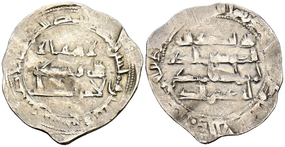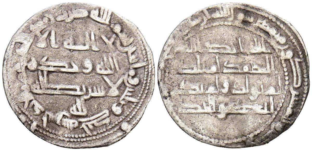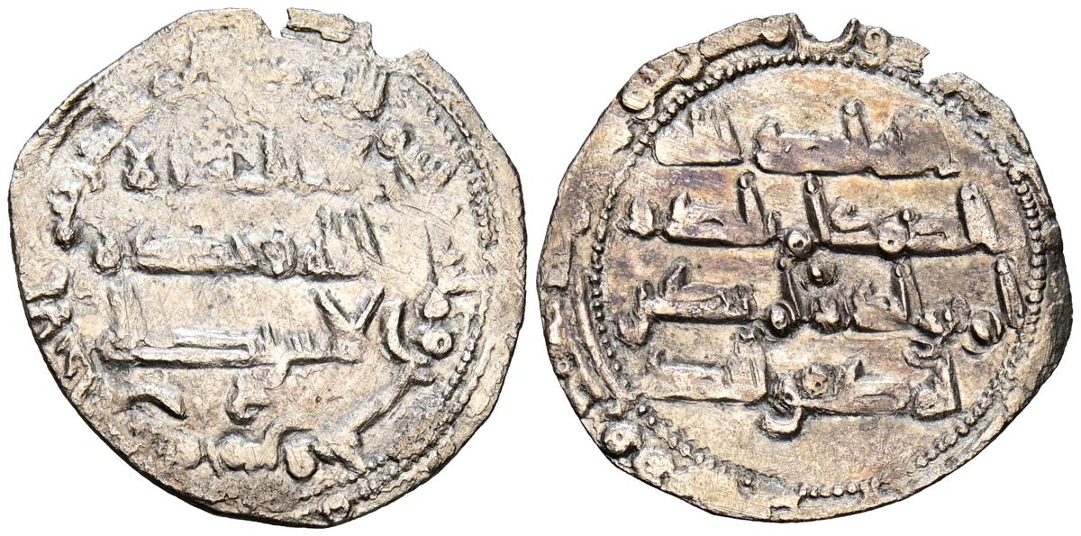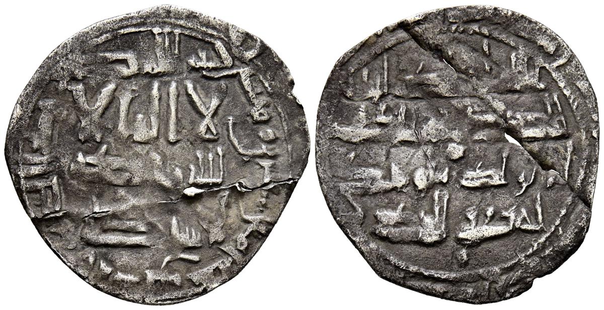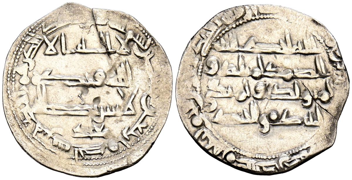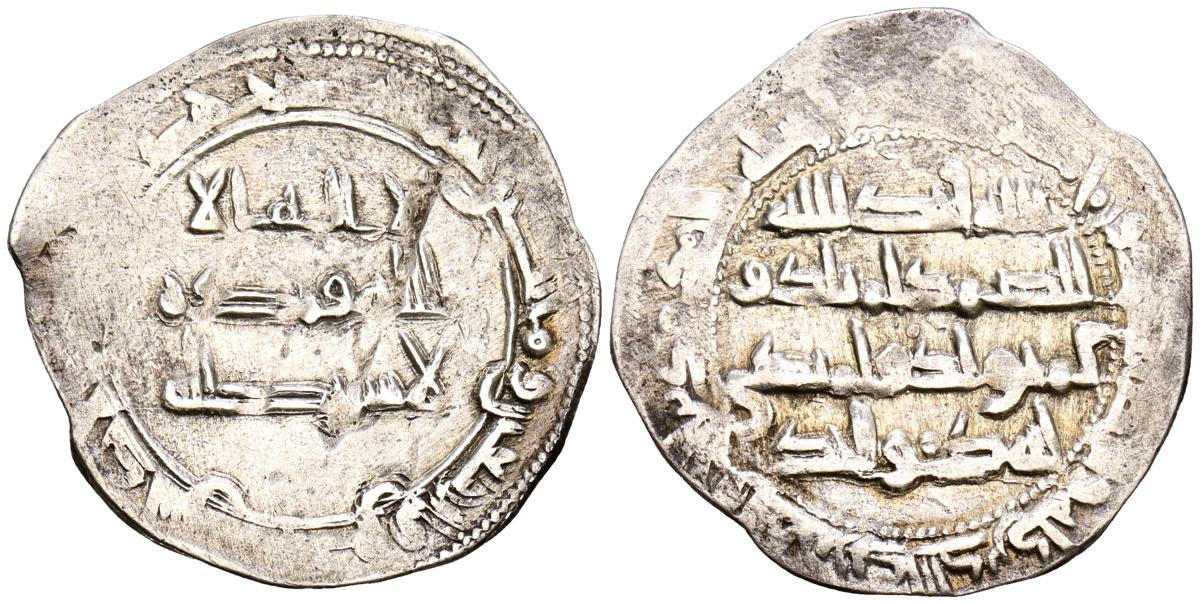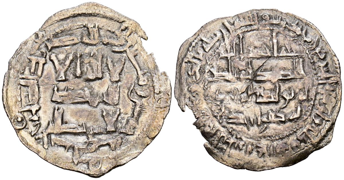 EMIRATO INDEPENDIENTE DE CÓRDOBA. ‘Abd al-Rahman II. Dirham. (Ar. 1,53g/22mm). 225H. al-Ándalus. (Vives 172; R. Frochoso2009-225.1). MBC-. Doblez con grietas en los extremos.