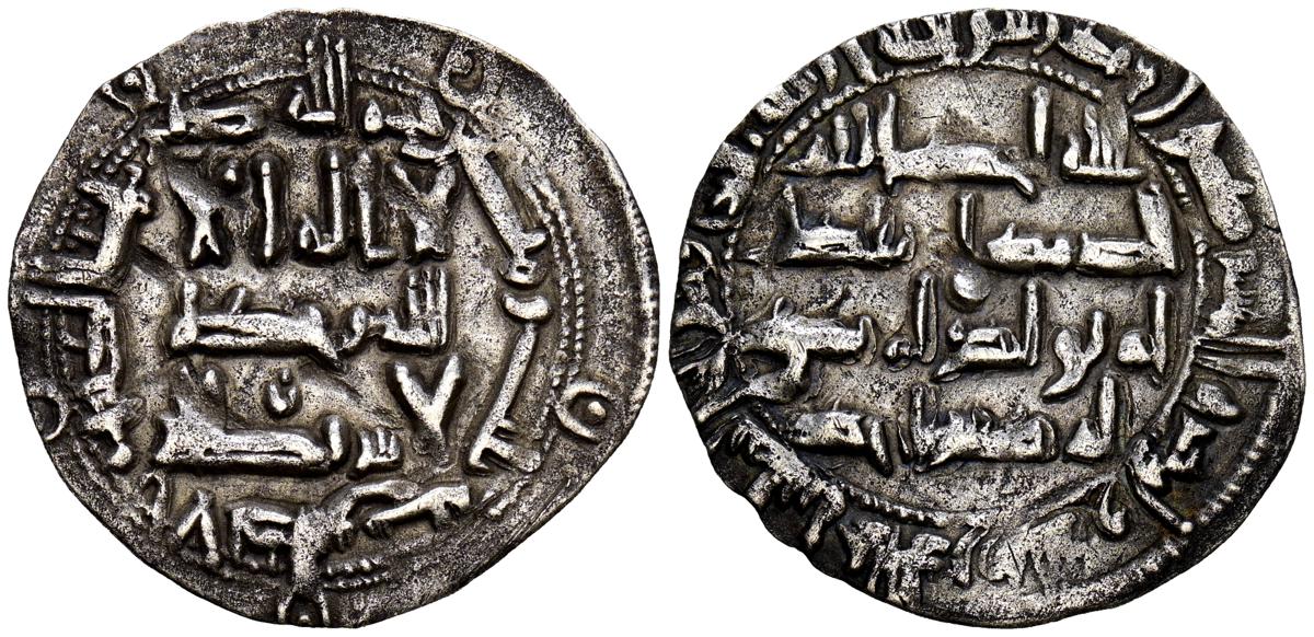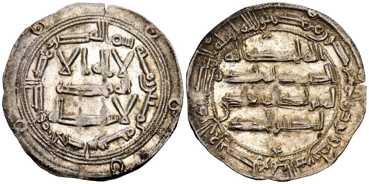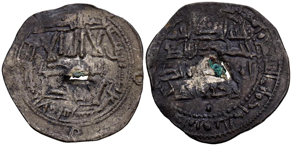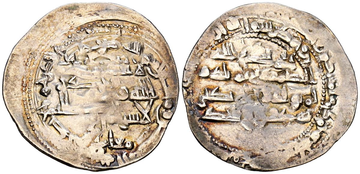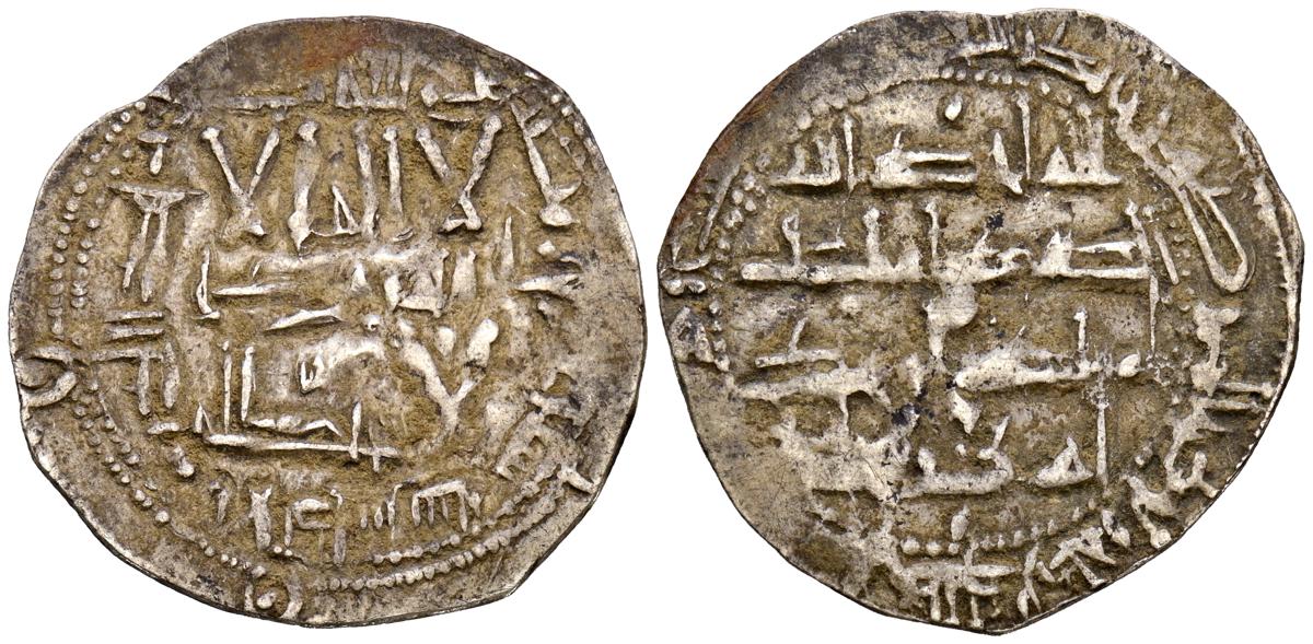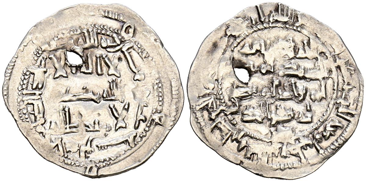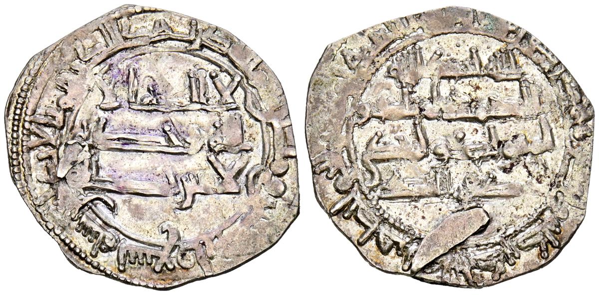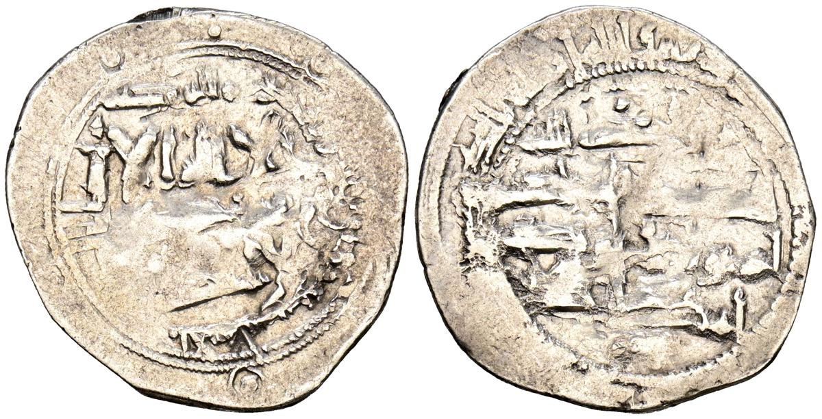 EMIRATO INDEPENDIENTE DE CÓRDOBA. ‘Abd al-Rahman II. Dirham. (Ar. 1,53g/22mm). 225H. al-Ándalus. (Vives 172; R. Frochoso2009-225.1). MBC-. Doblez con grietas en los extremos.