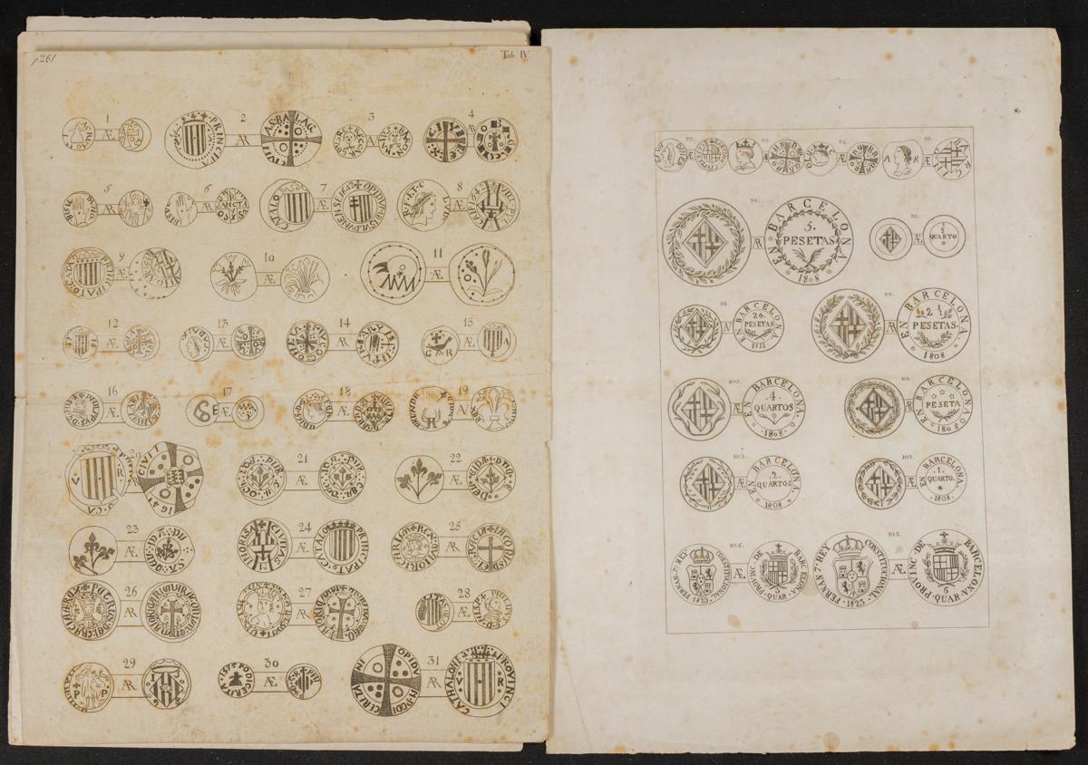 Interesante y valioso conjunto de láminas/grabados y otros documentos históricos de época, referentes tanto a monedas como a medallas, españolas y extranjeras. Diferentes estados de conservación. A EXAMINAR.