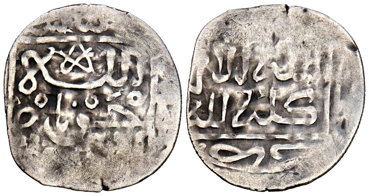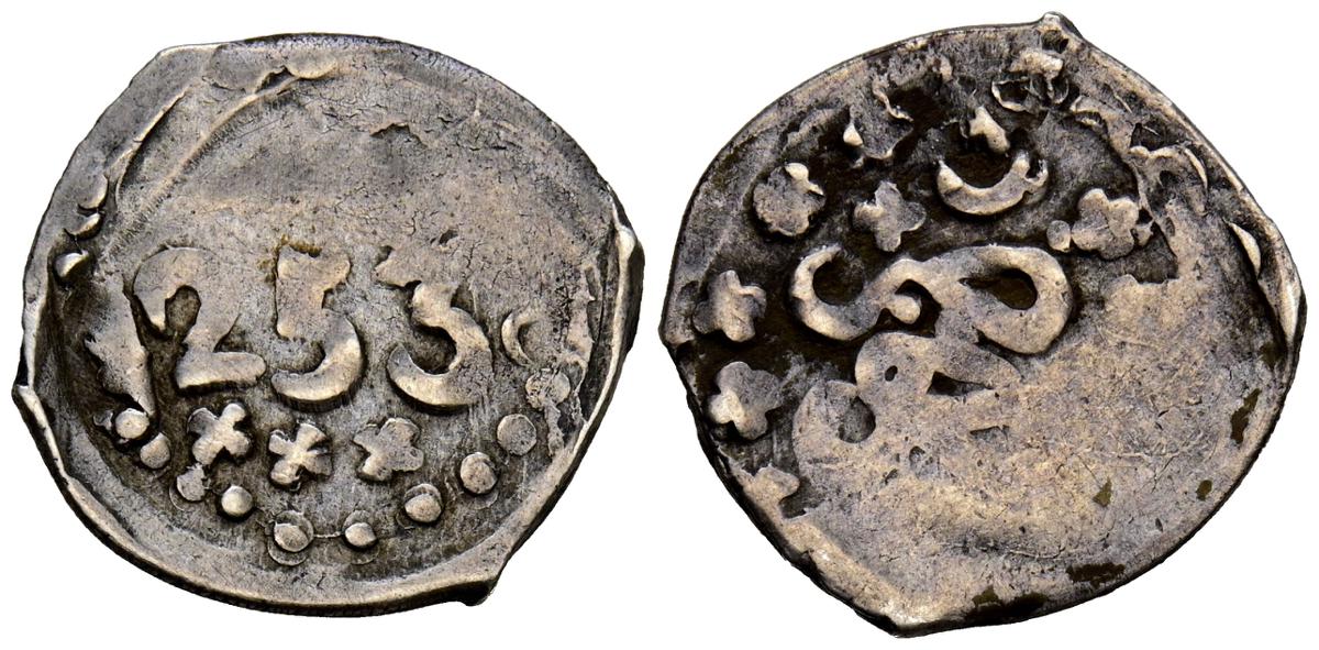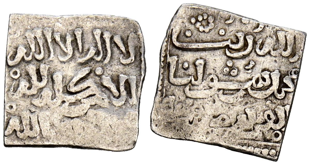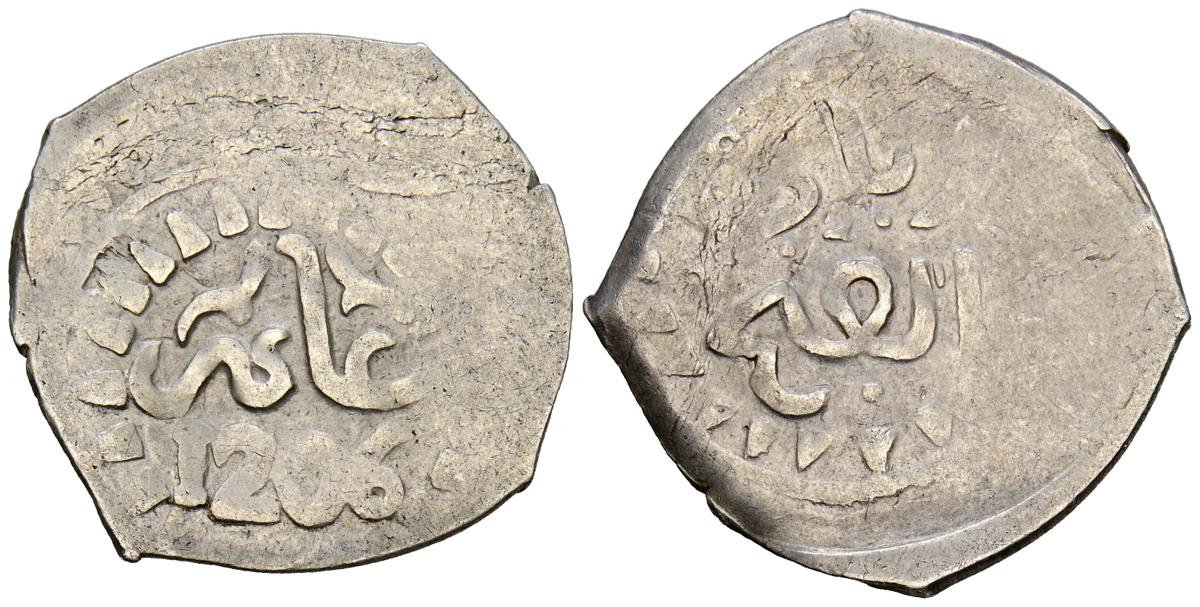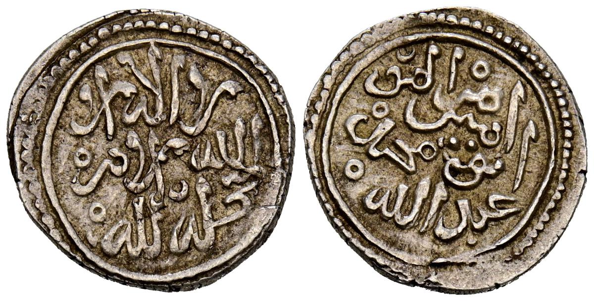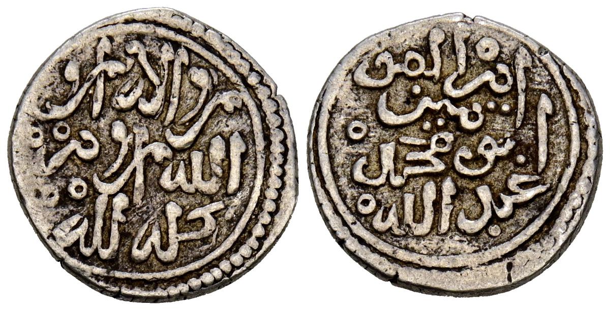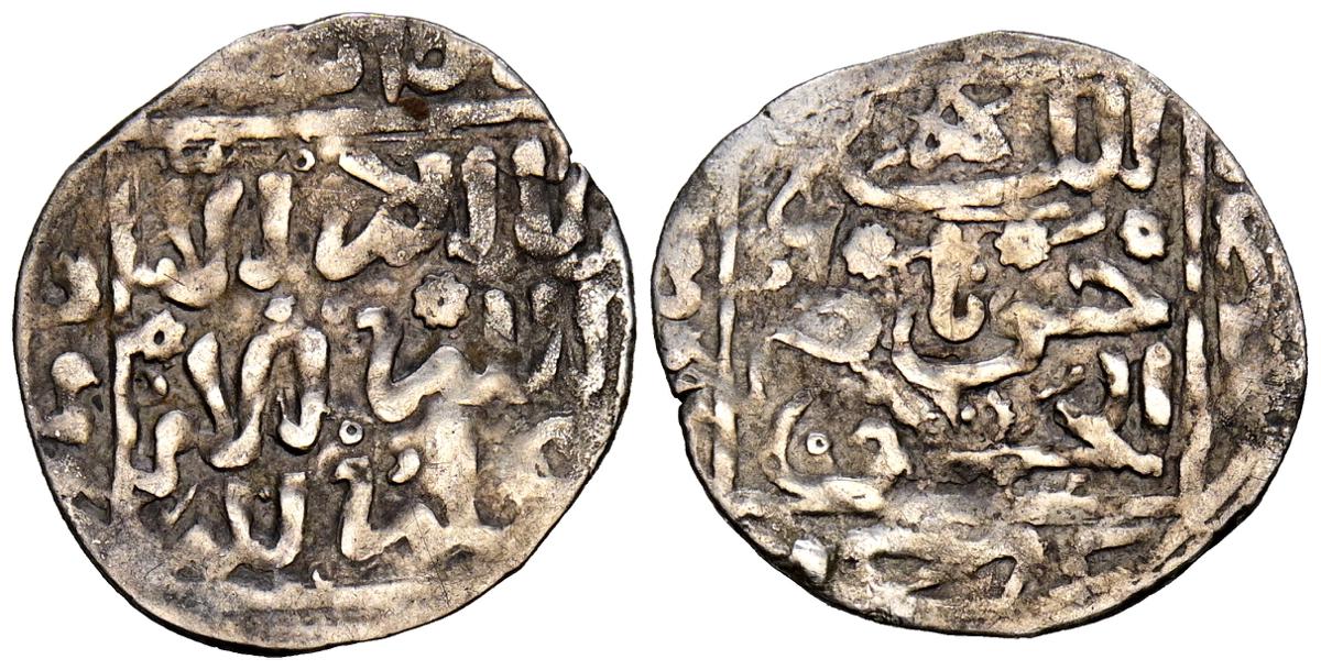 CALIFATO ABASIDA, Anónimo. Dirham Tabarí. (Ar. 1,96g/23mm). 128 PYE/163H/779 d.C. Tabaristán. (Álbum73). Anv: Busto con corona alada mirando a derecha de tipo sasánida, leyenda en palavhi: a la derecha, ABZUD (Crecimiento) y a la izquierda, GDH (Explendor). En el exterior, a las 2h, 6h y 10h, creciente y estrella. Abajo a la derecha la palabra palavhi: ADB (Excelente) y a izquierda NEK (Bueno). Rev: Altar de fuego flanqueado por dos sacerdotes, a la derecha: Tapurstan (Tabaristán), y a izquierda año de acuñación: 128 PYE (Post Yazgard Era) dentro de 3 orlas, en el exterior, a las 12h, 3h, 6h y 9h creciente y estrella, y en medio de estos adornos 3 puntos en forma de triángulo. MBC/MBC+.