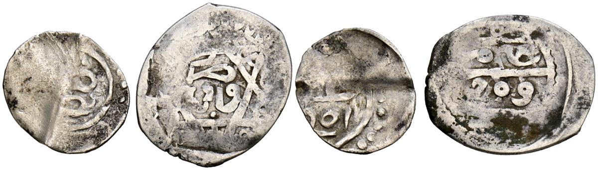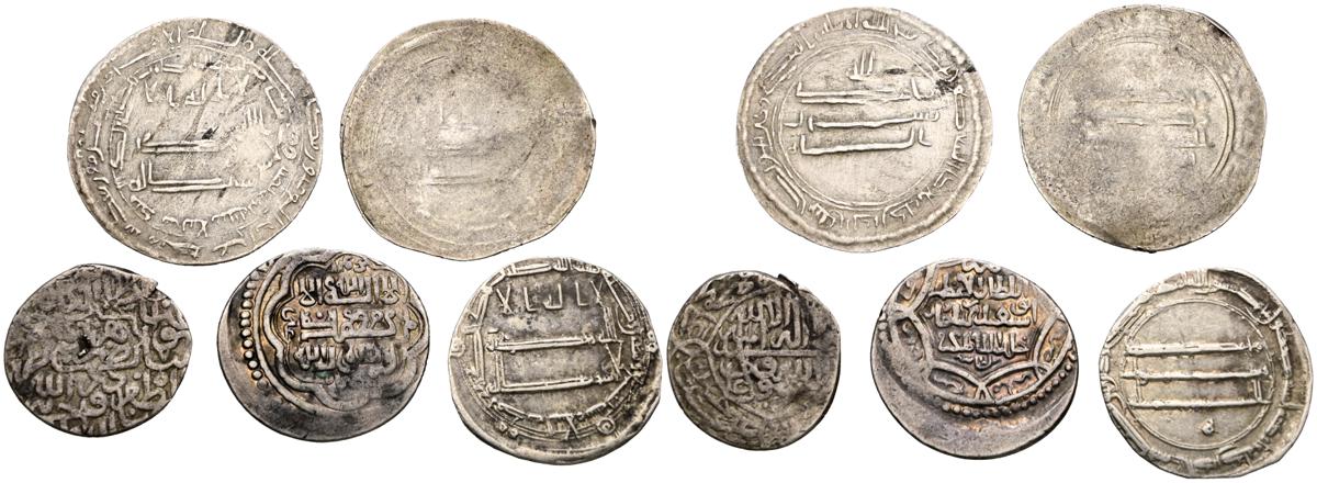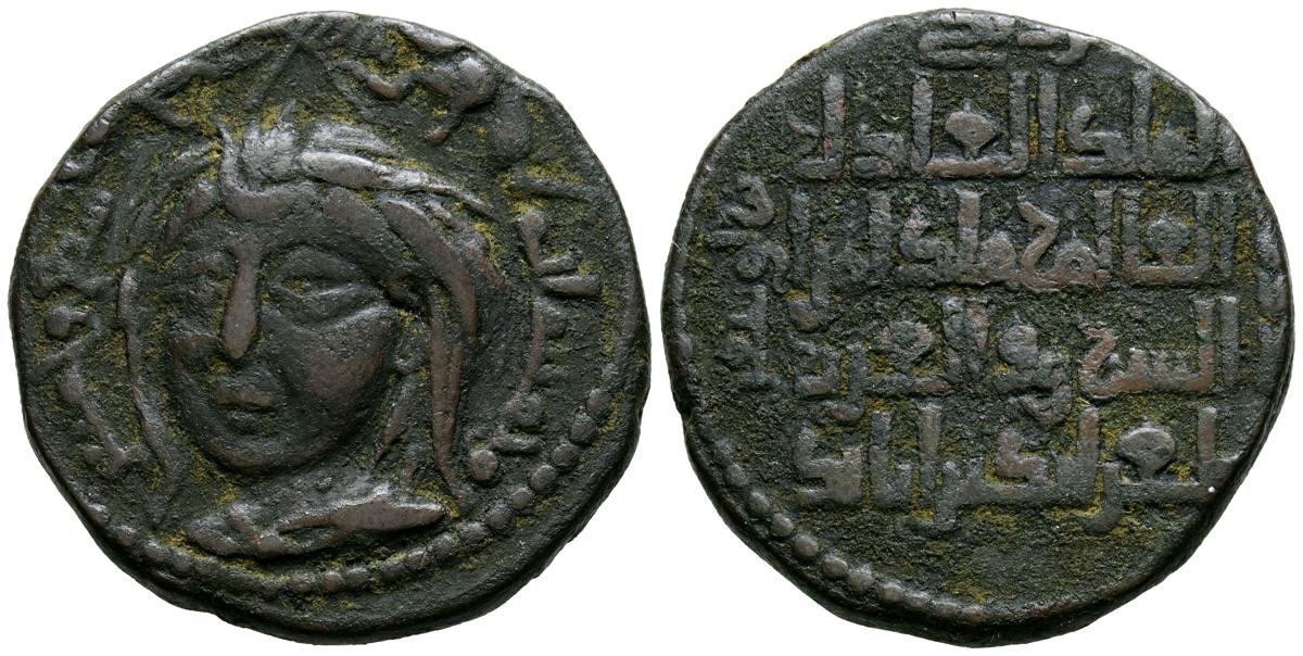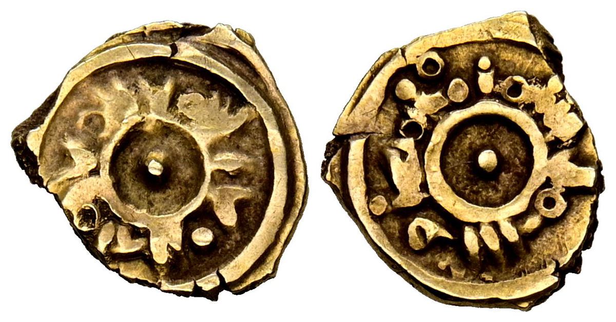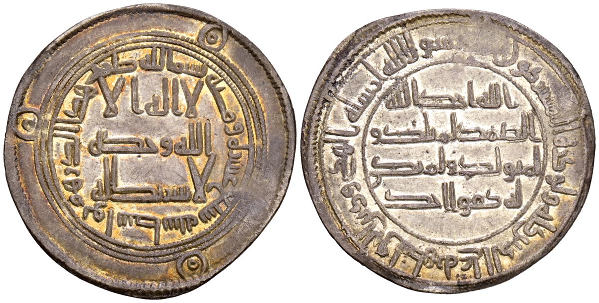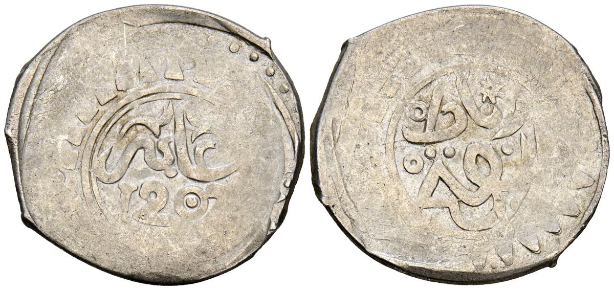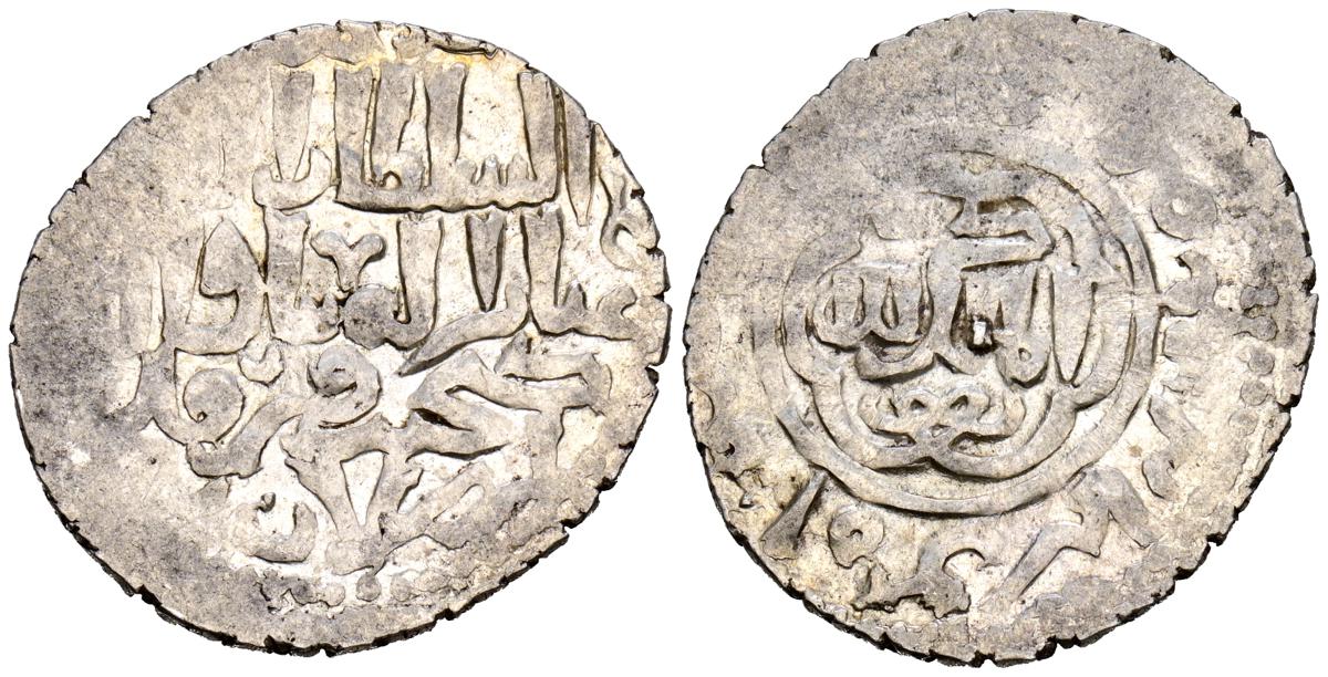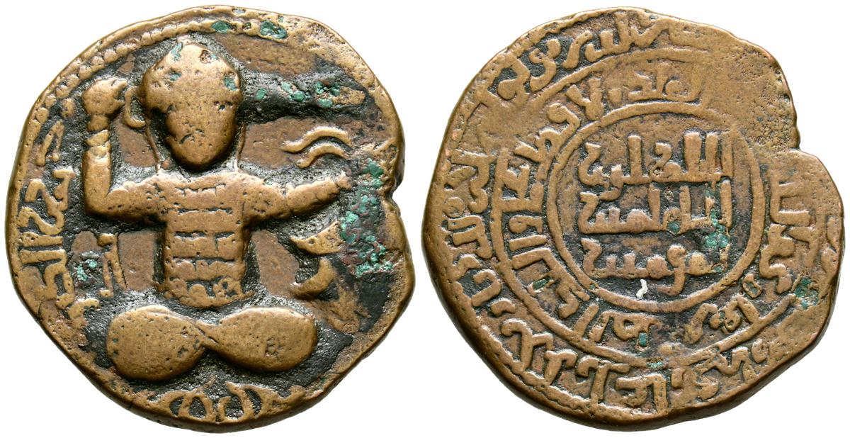 CALIFATO ABASIDA, Anónimo. Dirham Tabarí. (Ar. 1,96g/23mm). 128 PYE/163H/779 d.C. Tabaristán. (Álbum73). Anv: Busto con corona alada mirando a derecha de tipo sasánida, leyenda en palavhi: a la derecha, ABZUD (Crecimiento) y a la izquierda, GDH (Explendor). En el exterior, a las 2h, 6h y 10h, creciente y estrella. Abajo a la derecha la palabra palavhi: ADB (Excelente) y a izquierda NEK (Bueno). Rev: Altar de fuego flanqueado por dos sacerdotes, a la derecha: Tapurstan (Tabaristán), y a izquierda año de acuñación: 128 PYE (Post Yazgard Era) dentro de 3 orlas, en el exterior, a las 12h, 3h, 6h y 9h creciente y estrella, y en medio de estos adornos 3 puntos en forma de triángulo. MBC/MBC+.