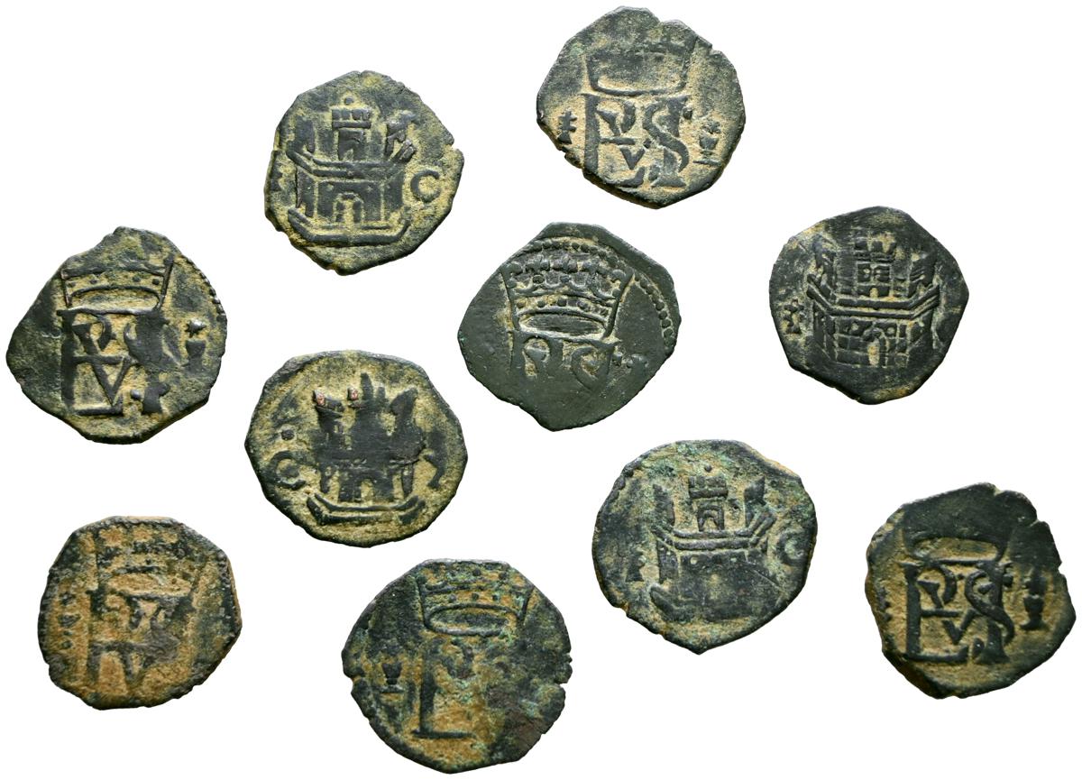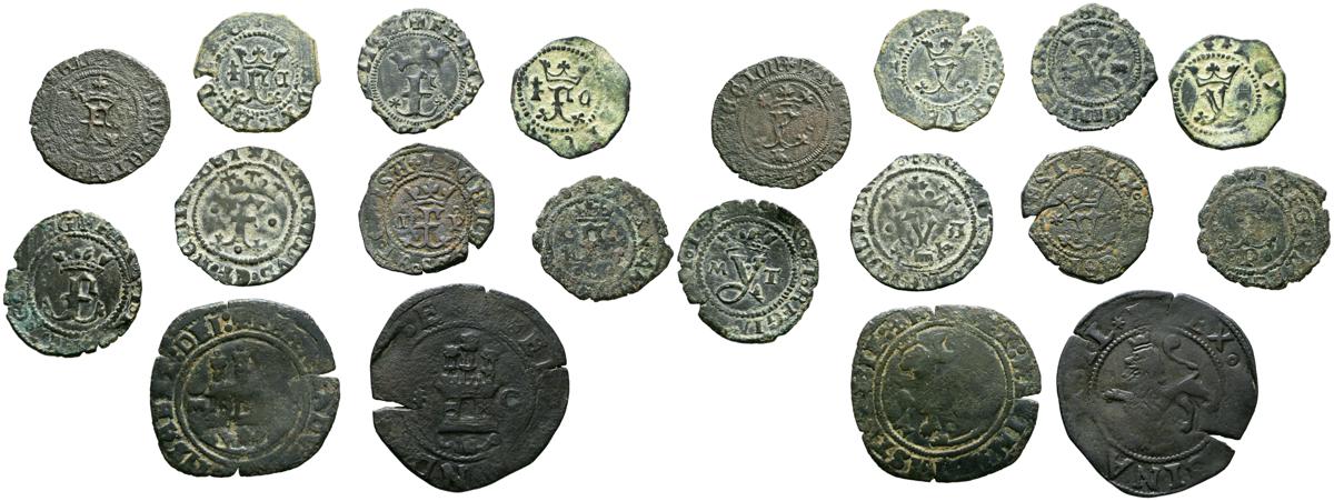 REYES CATÓLICOS (1474-1504). Interesante conjunto de 10 vellones entre los que destacan 8 blancas con gran variedad de cecas: Coruña, Cuenca, Segovia y Toledo. El conjunto se completa con 2 piezas de 2 maravedís. Diferentes estados de conservación. A EXAMINAR.