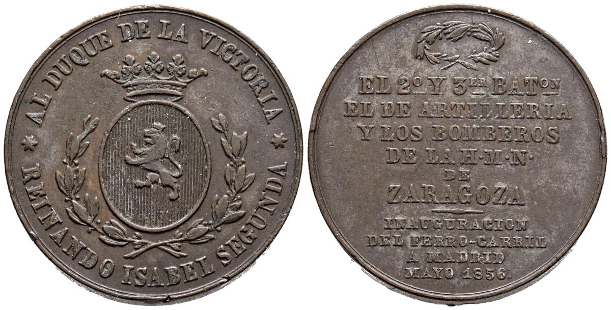 ISABEL II (1833-1868). Al Duque de la Victoria (Ae. 9,61/27mm). 1856. Inauguración del Ferrocarril a Madrid a Zaragoza. (VQ-14327). MBC.