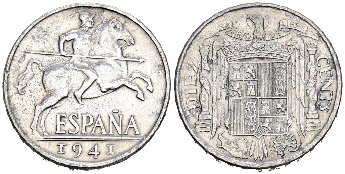 ESTADO ESPAÑOL (1936-1975). 10 Céntimos. (Al. 1,85g/23mm). 1941. Madrid. (Cal-2019-9). Leyenda: PLVS. MBC+.