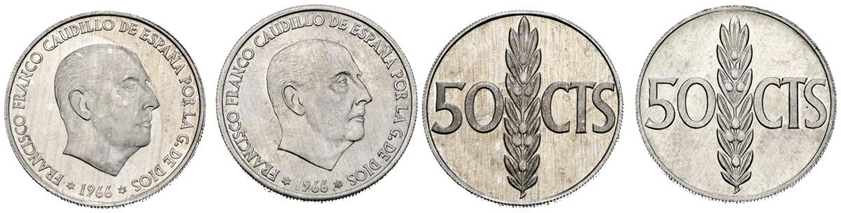 ESTADO ESPAÑOL. Pareja de 50 Céntimos de 1966 *19-73 y *19-74. (Cal-2019-37/38). Excelente conservación de ambas piezas. A EXAMINAR.