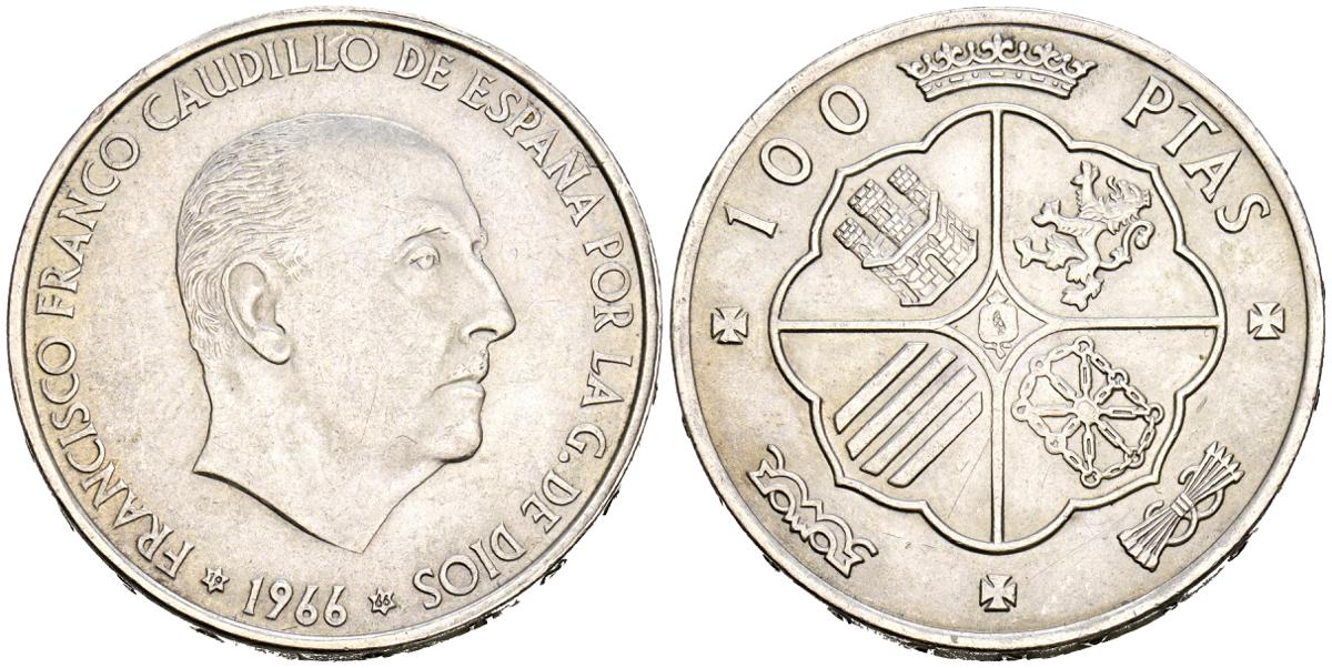 ESTADO ESPAÑOL (1936-1975). 100 Pesetas. (Ar. 19,12g/34mm). 1966 *19-70. Madrid. (Cal-2019-150). SC. Extraída de tira.