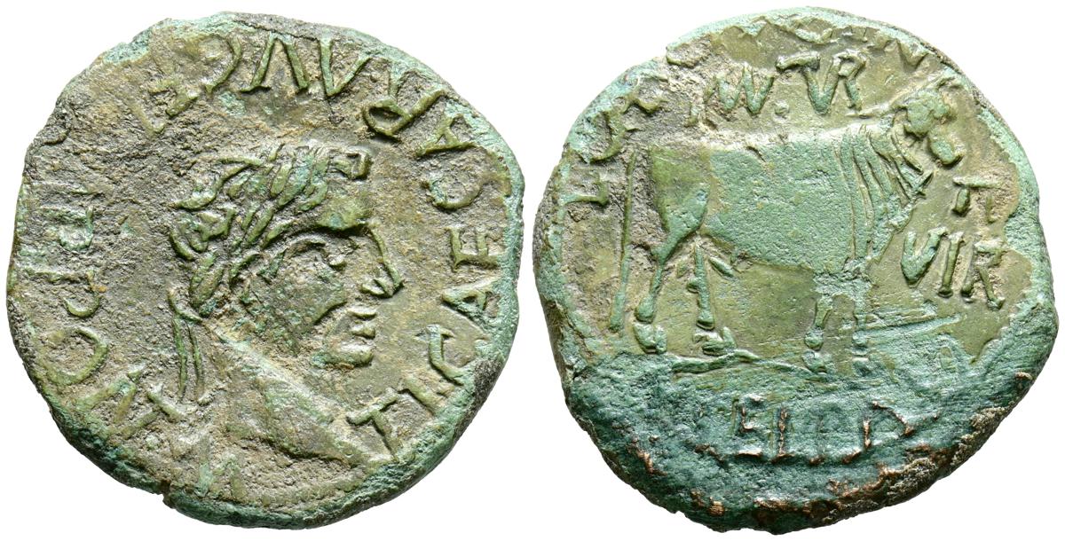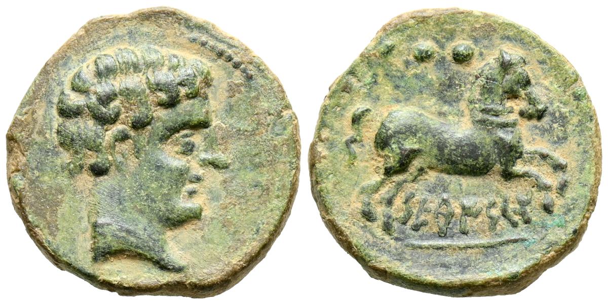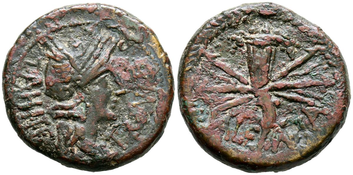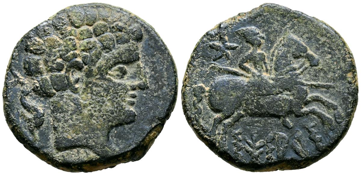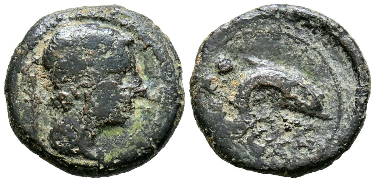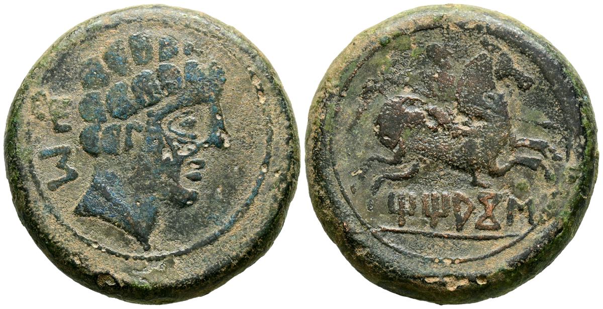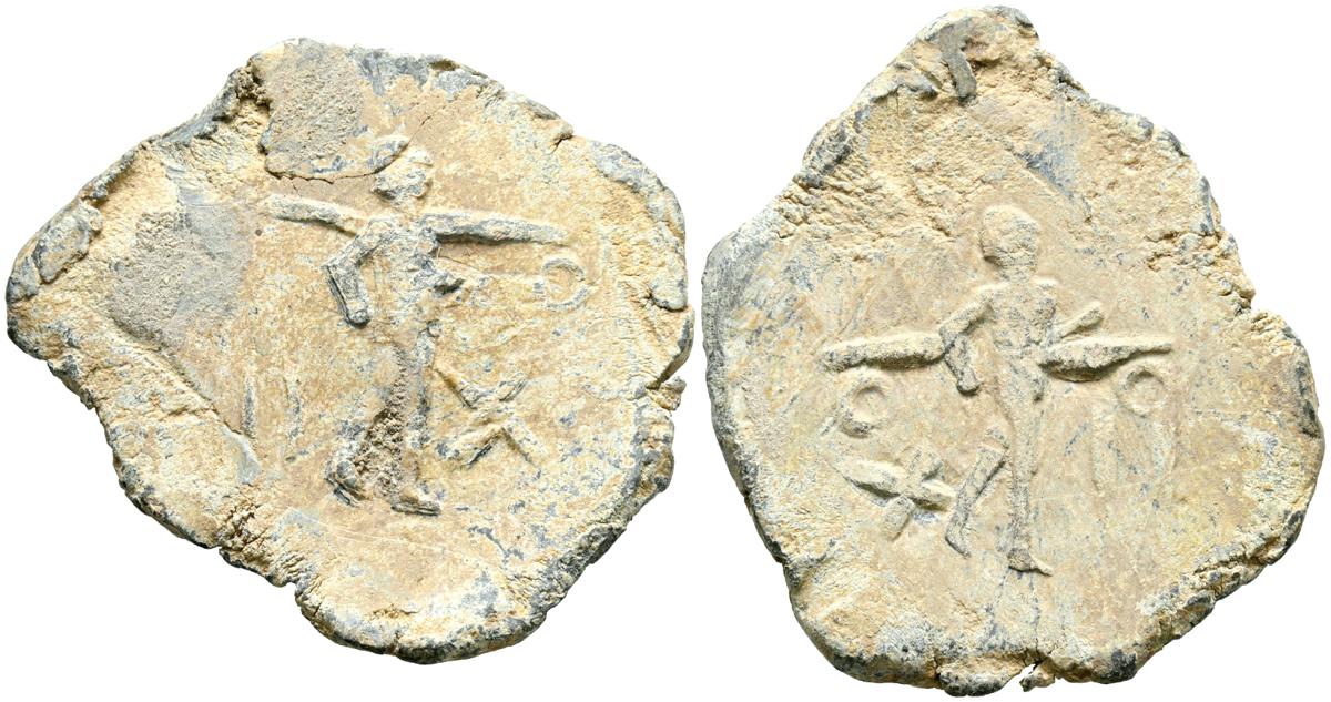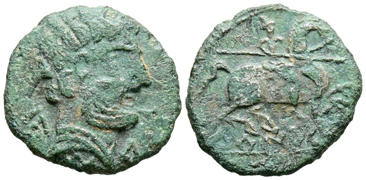 PLOMOS DEIVERSOS DE MEDIANO MODULO. Plomo monetiforme. (Pb. 5,43g/19mm). (CCP pág. 39, nº 2', catalogado como RRR). Anv: Cabeza masculina a derecha, detrás letras ibéricas: SI, delante: RBaISER. Rev: Letra ibérica: S, entre estrella y creciente. MBC-. Muy raro ejemplar. Ex Soler y Llach & Martí Hervera, Subasta 1059 (20/04/2010), Nº Lote 2209.