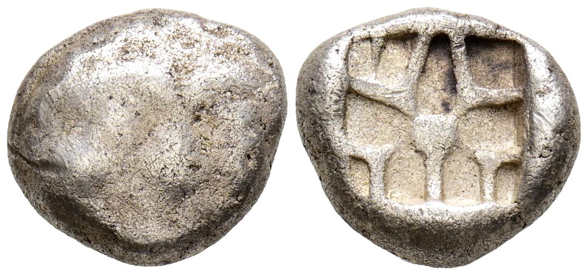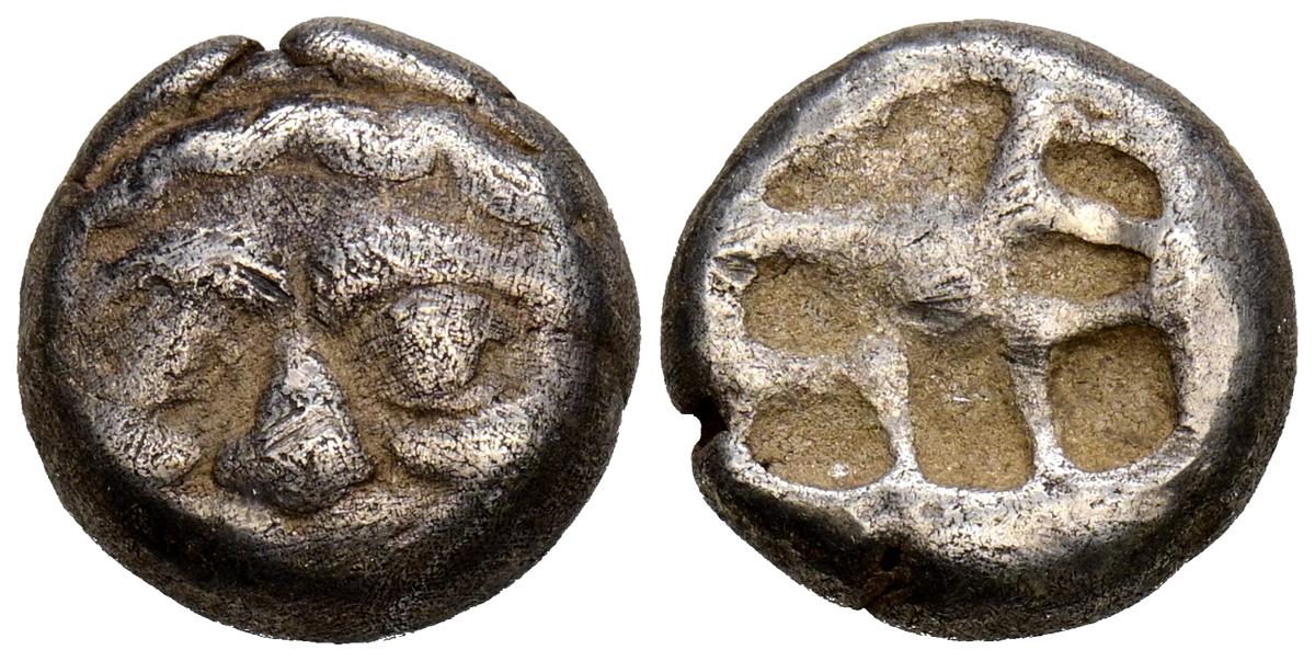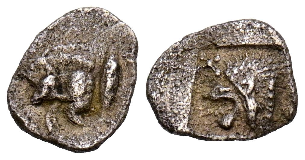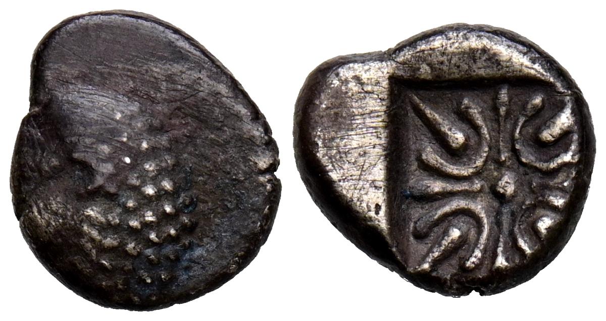 JUDAEA, 1º Guerra Judía (66-70 d.C.). Shekel. (Ar. 13,17g/22mm). Año 2 (67-68 d.C.). Jerusalén. (Hendin 1358; Meshorer 193). Anv: Copa Omer con decoración perlada, encima año 2 en hebreo, alrededor leyenda en hebreo. Rev: Tallo con tres granadas, alrededor leyenda en hebreo. MBC+. Muy raro ejemplar. Limpiada mecánicamente.
