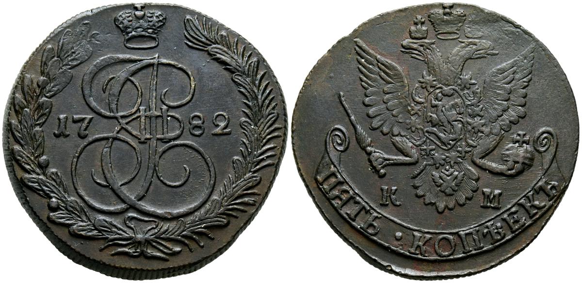 RUSIA, Catalina II. 5 Kopeks. (Ae. 47,43g/43mm). 1782. Suzun KM. (Km#59.5). EBC-. Escasa.