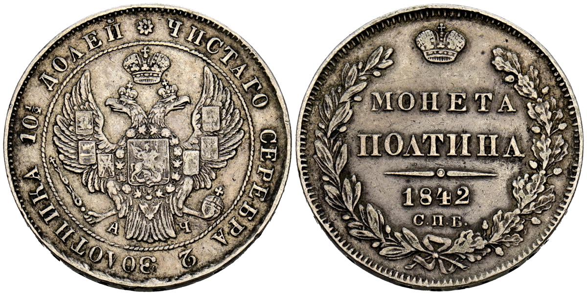 RUSIA, Nicolás I. 1 Rublo. (Ar. 10,60g/29mm). 1842. San Petersburgo. (Km#168.1). MBC.
