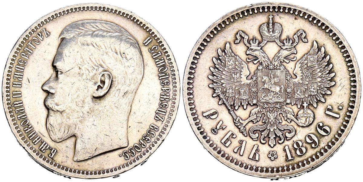 RUSIA, Nicolás II. 1 Rublo. (Ar. 20,04g/34mm). 1896. San Petesburgo. (Km#59). MBC/MBC+. Limpiada.