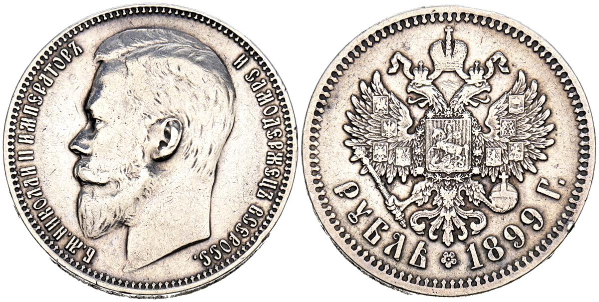 RUSIA, Nicolás II. 1 Rublo. (Ar. 19,81g/34mm). 1899. San Petesburgo. (Km#59.). MBC.