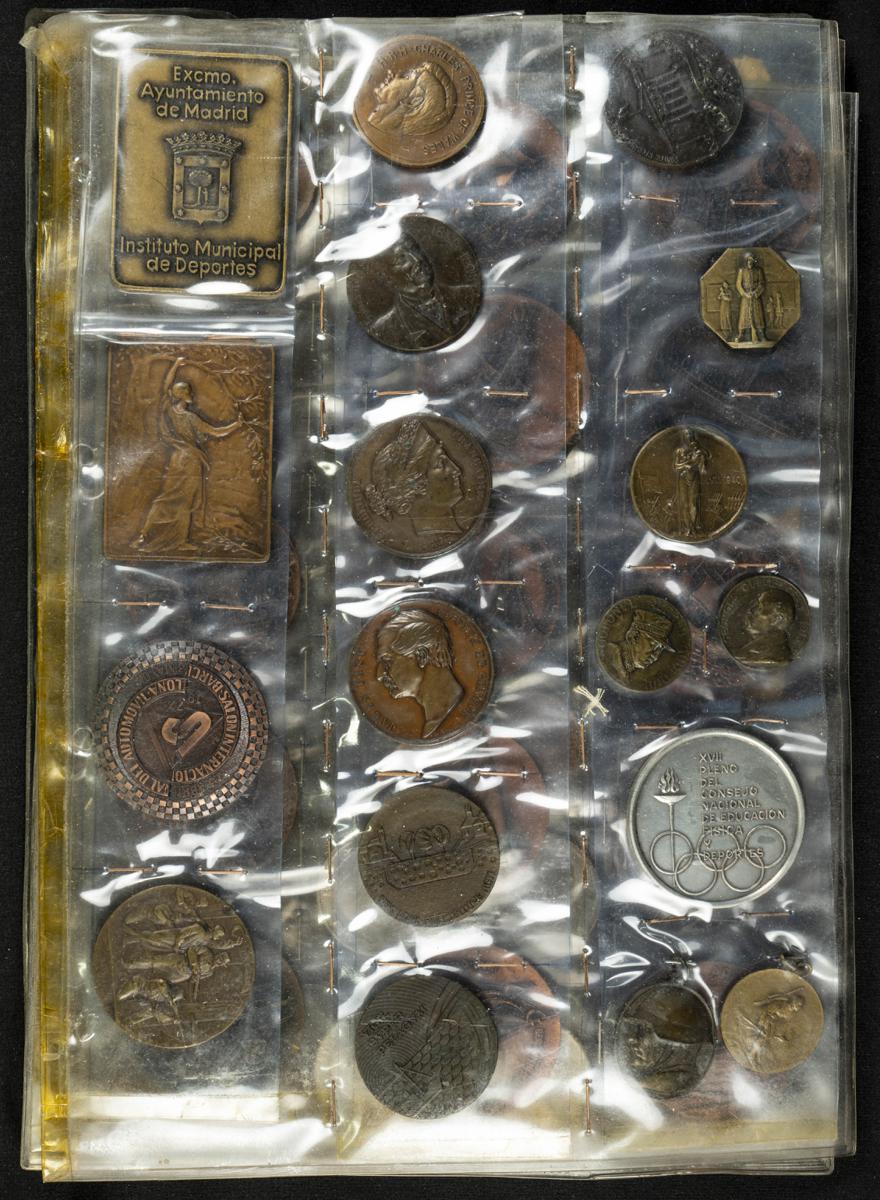 MEDALLAS. Interesante y variado conjunto de medallas, más de 70, tanto españolas como extranjeras y acuñadas en los siglos XIX y XX. Variedad temática incluyendo algunos ejemplos también de insignias militares. Diferentes estados de conservación. A EXAMINAR
