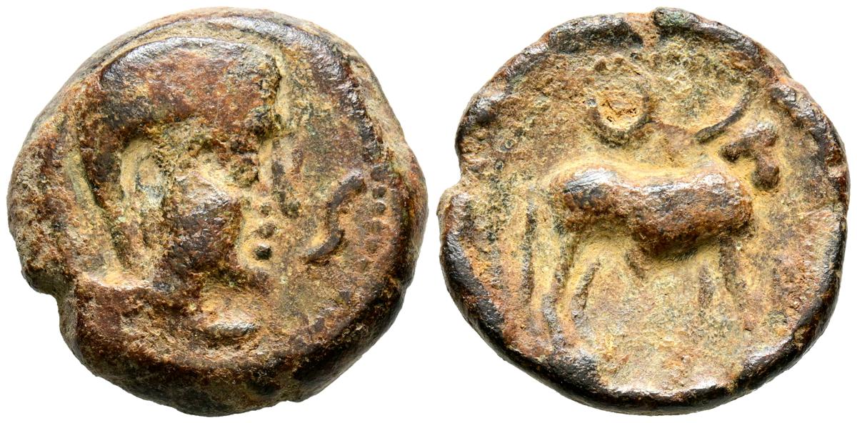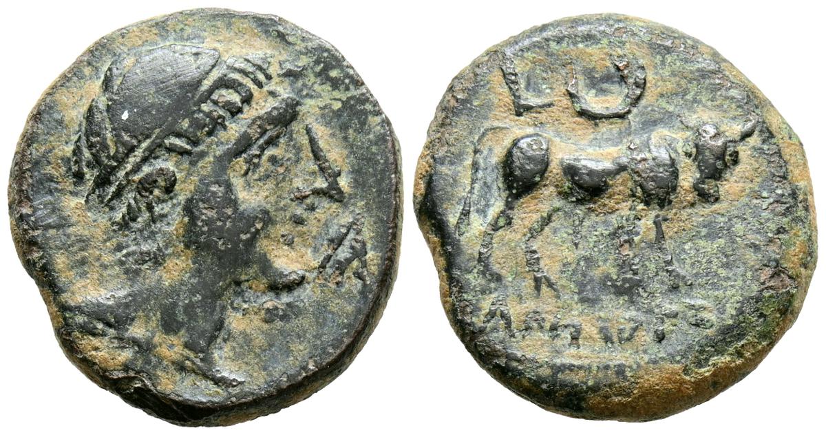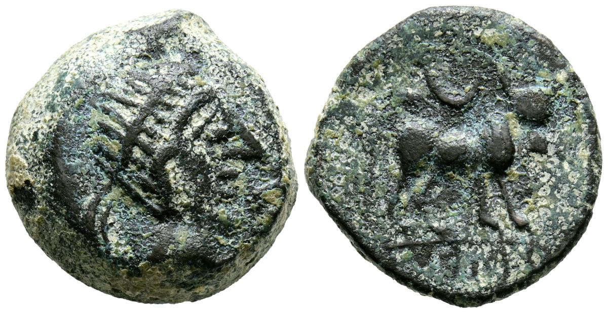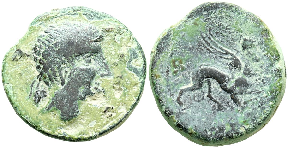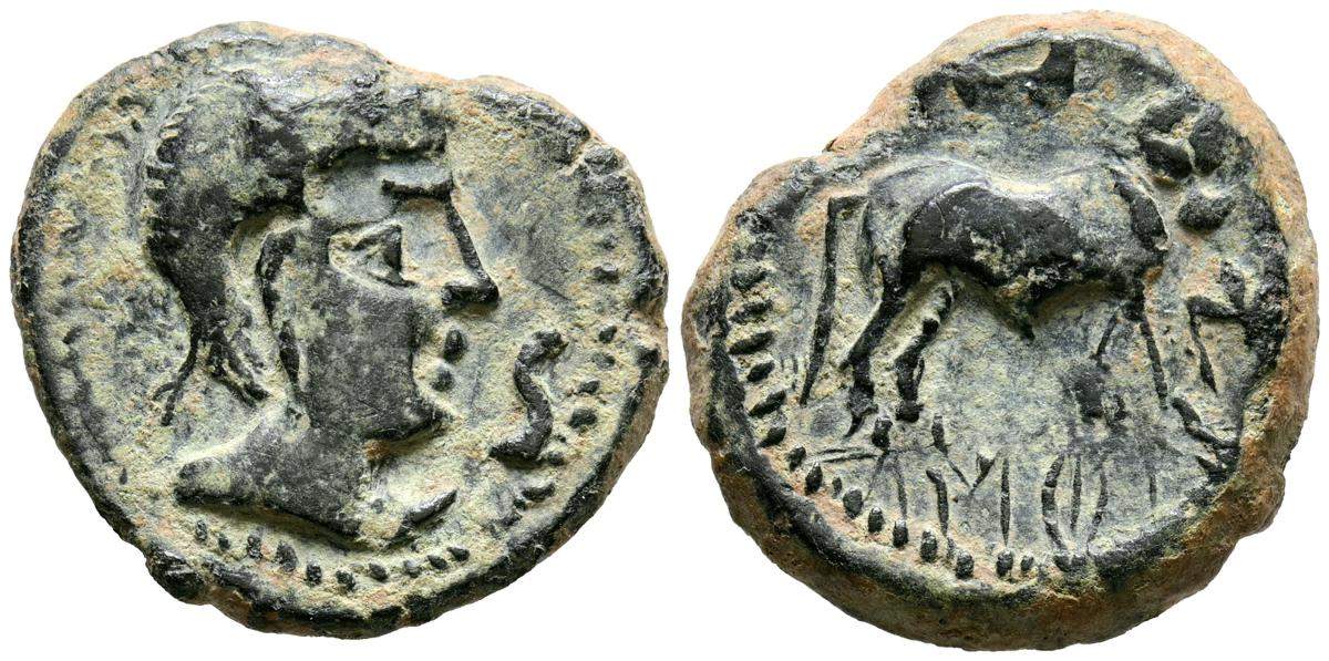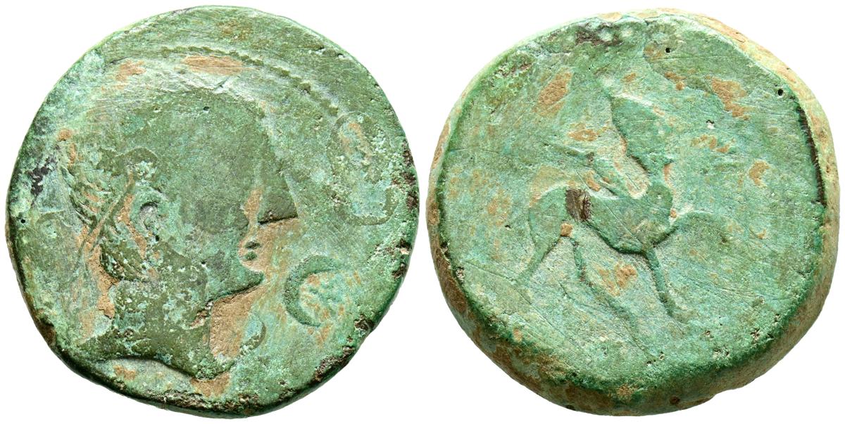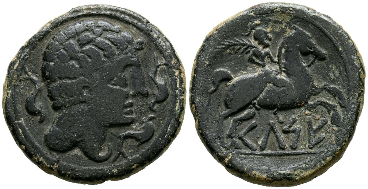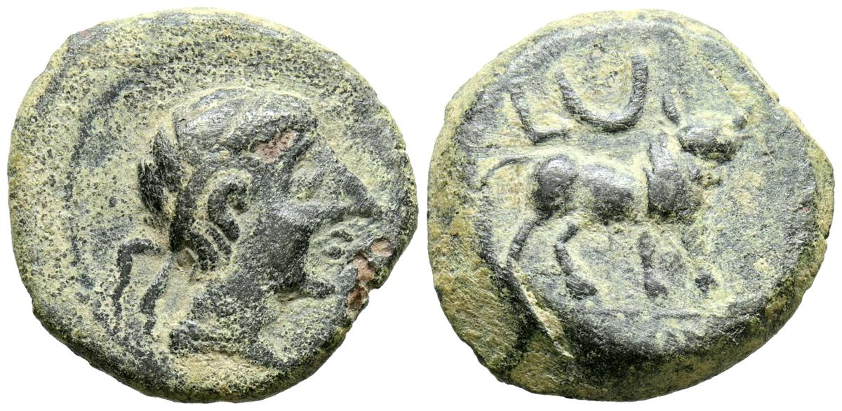 CARTAGONOVA (Cartagena, Murcia). As. (Ae. 10,10g/29mm). 27 a.C.-14 d.C. (FAB-577). Anv: Cabeza de Augusto laureado a derecha, alrededor leyenda: AVGVSTVS DIVI F. Rev: Aspérgilo, símpulo, segur y apex, alrededor leyenda: C VAR RVF SEX IVL POL II VOR Q. MBC-/MBC.