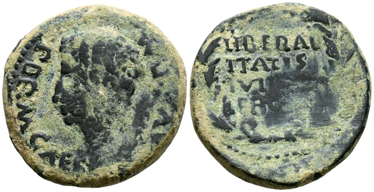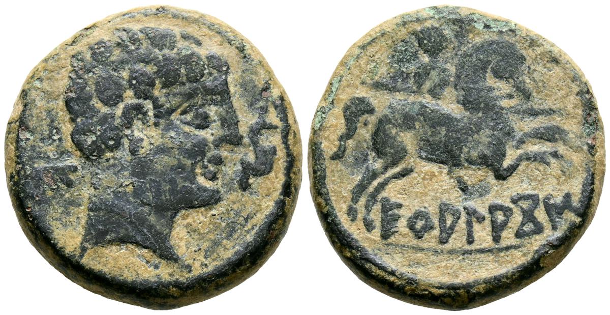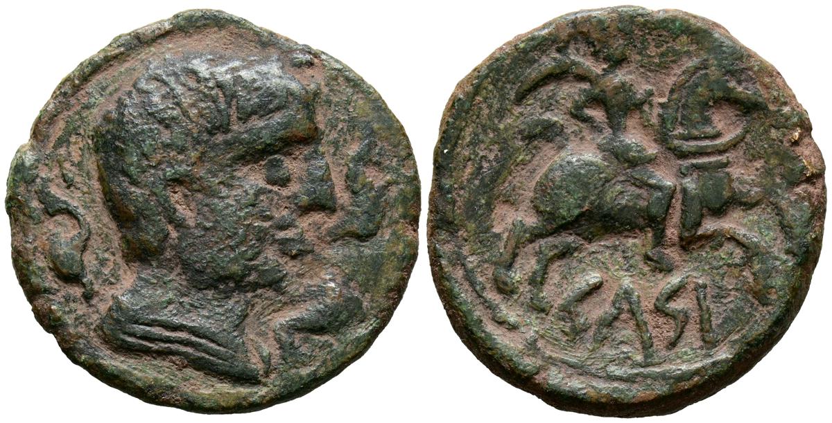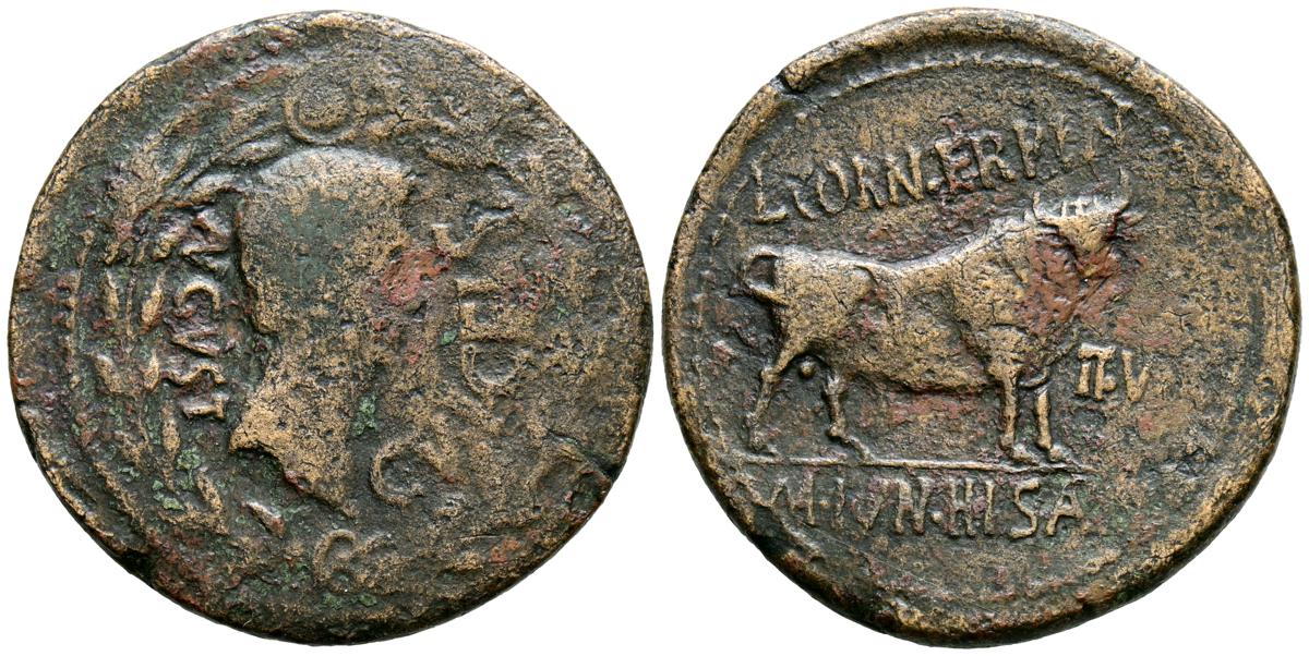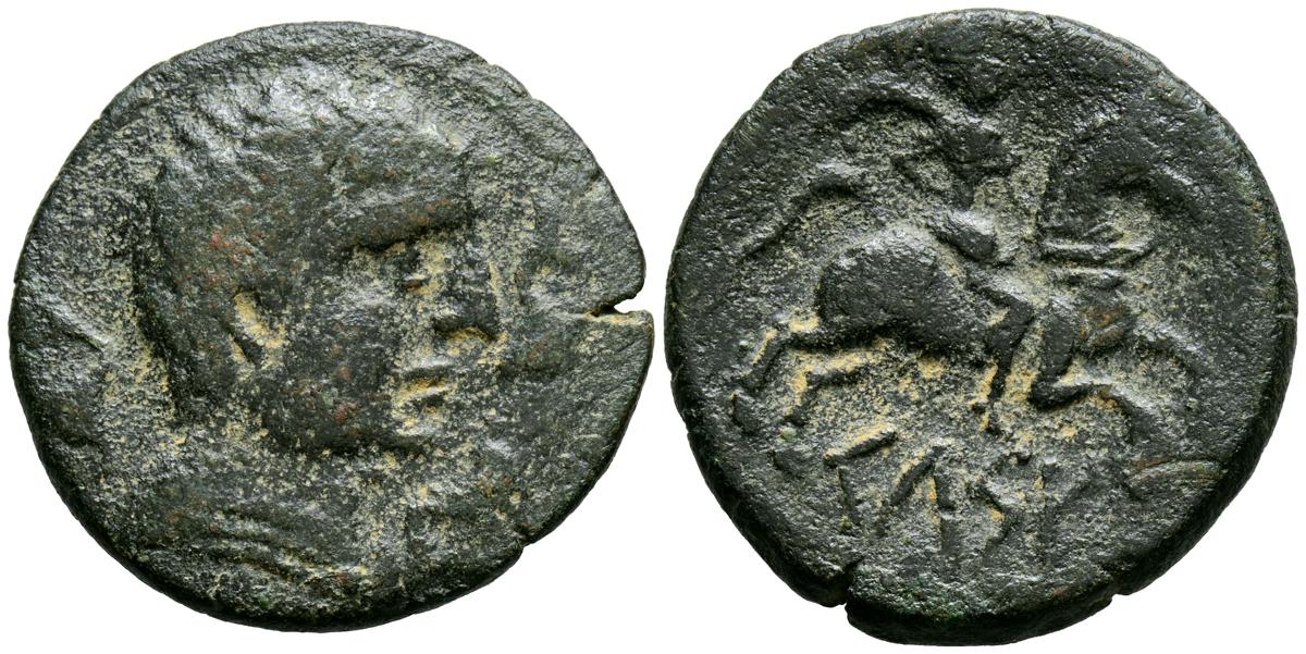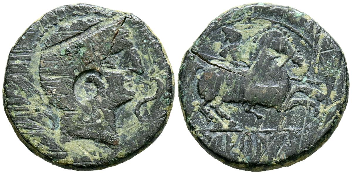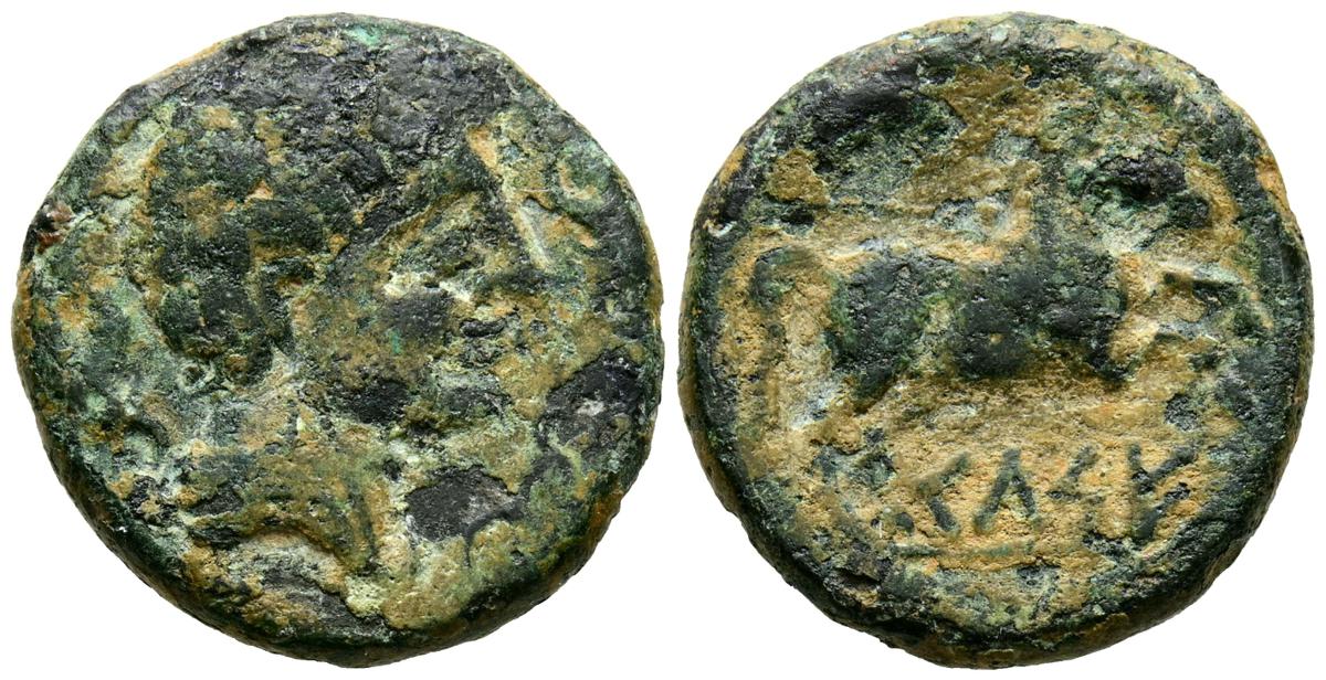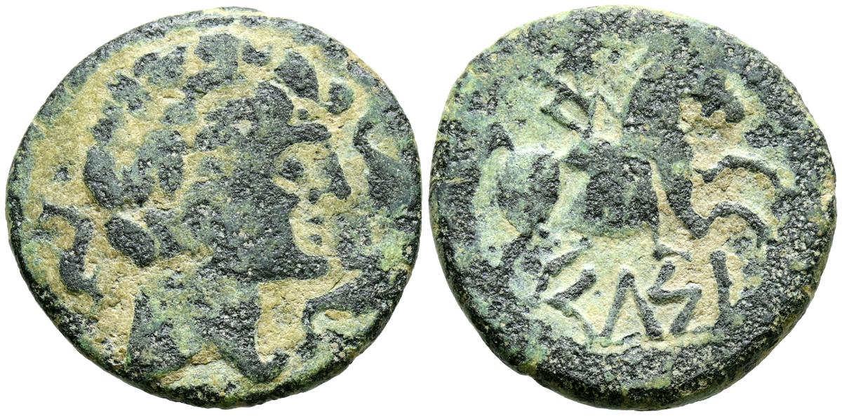 CELSE (Velilla del Ebro, Zaragoza). As. (Ae. 13,08g/29mm). 14-36 d.C. (FAB-819). Anv: Cabeza laureada de Tiberio a derecha, alrededor leyenda: TI CAESAR AVGVSTVS. Rev: Toro a derecha, encima leyenda: BACC FRONT, debajo: CN BVCCO, a la izquierda: D V I CEL, a la derecha: II VIR II. MBC-. Repatinado.
