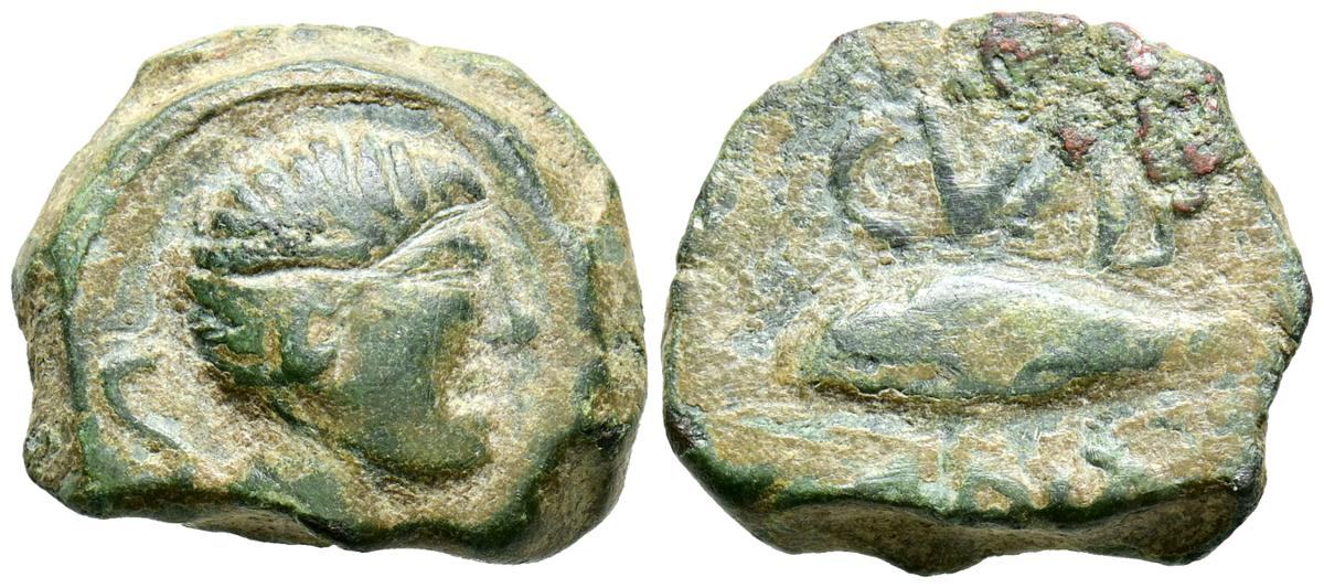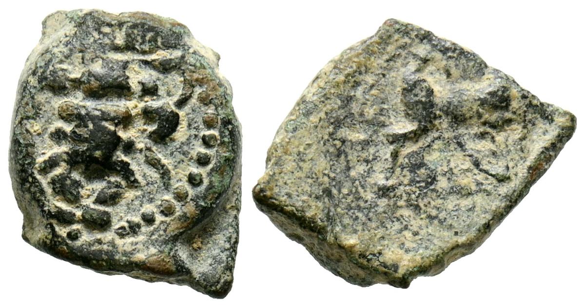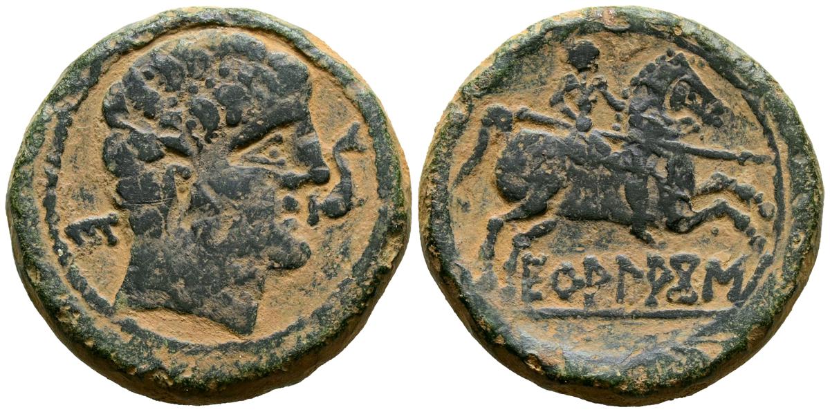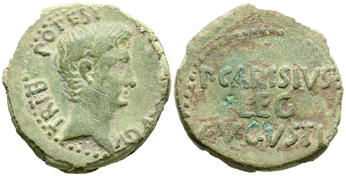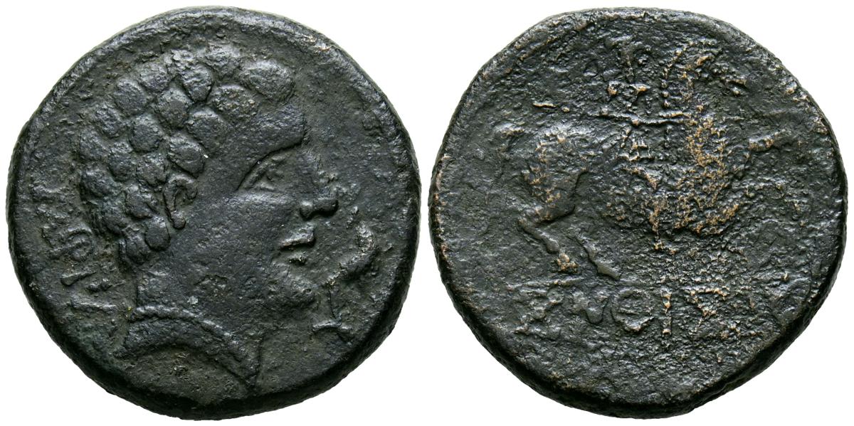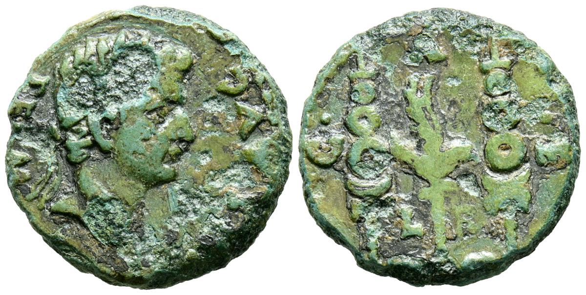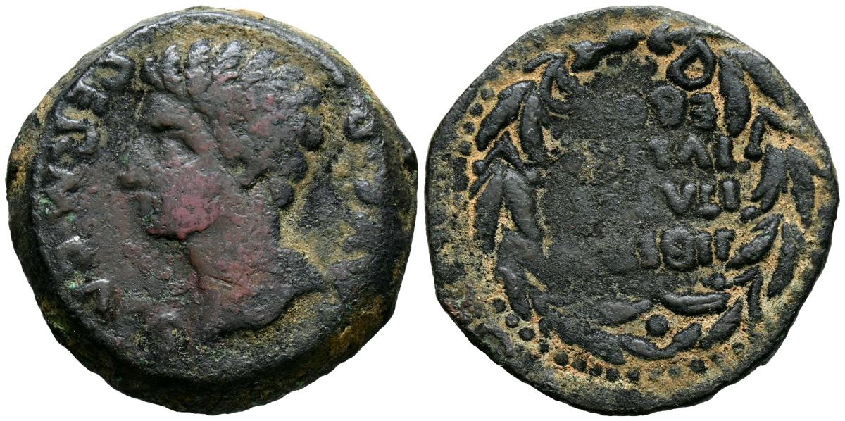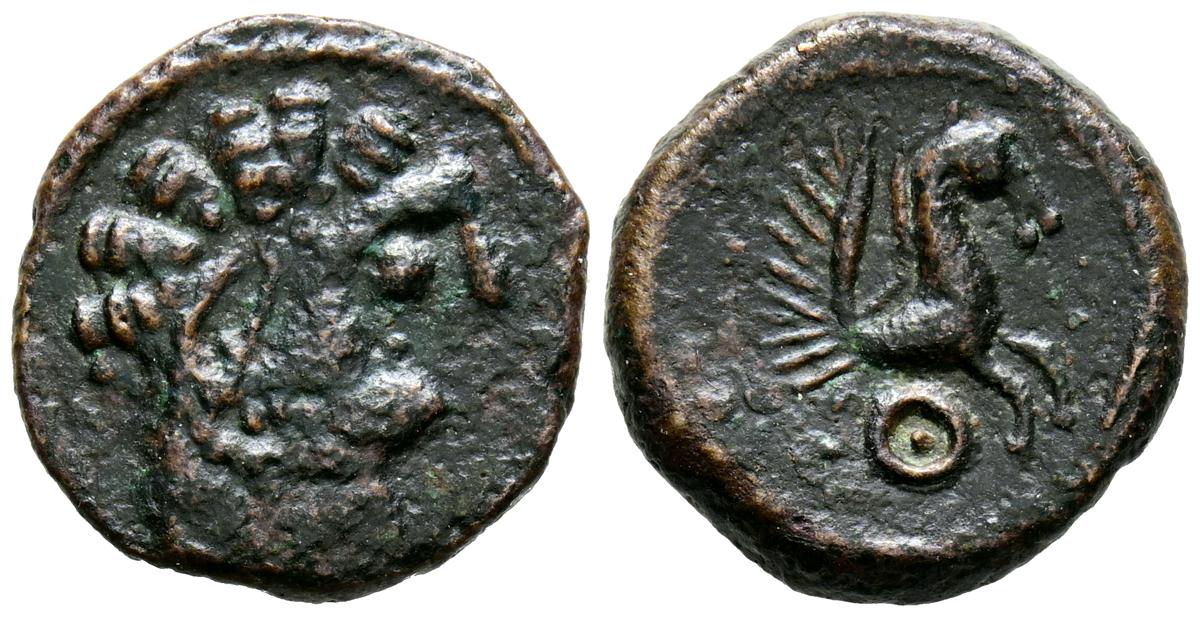 CELSE (Velilla del Ebro, Zaragoza). As. (Ae. 13,08g/29mm). 14-36 d.C. (FAB-819). Anv: Cabeza laureada de Tiberio a derecha, alrededor leyenda: TI CAESAR AVGVSTVS. Rev: Toro a derecha, encima leyenda: BACC FRONT, debajo: CN BVCCO, a la izquierda: D V I CEL, a la derecha: II VIR II. MBC-. Repatinado.